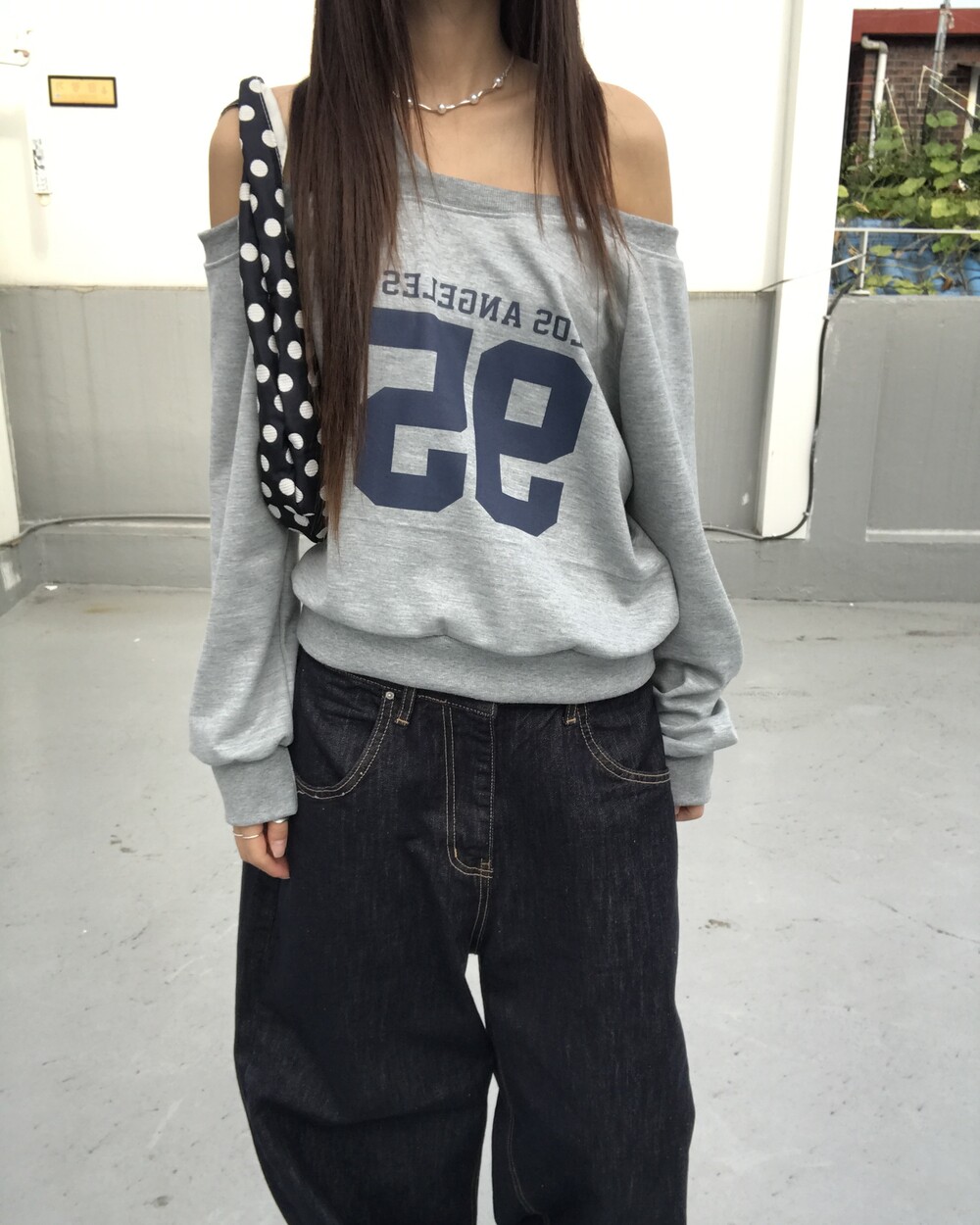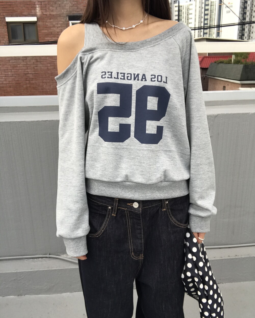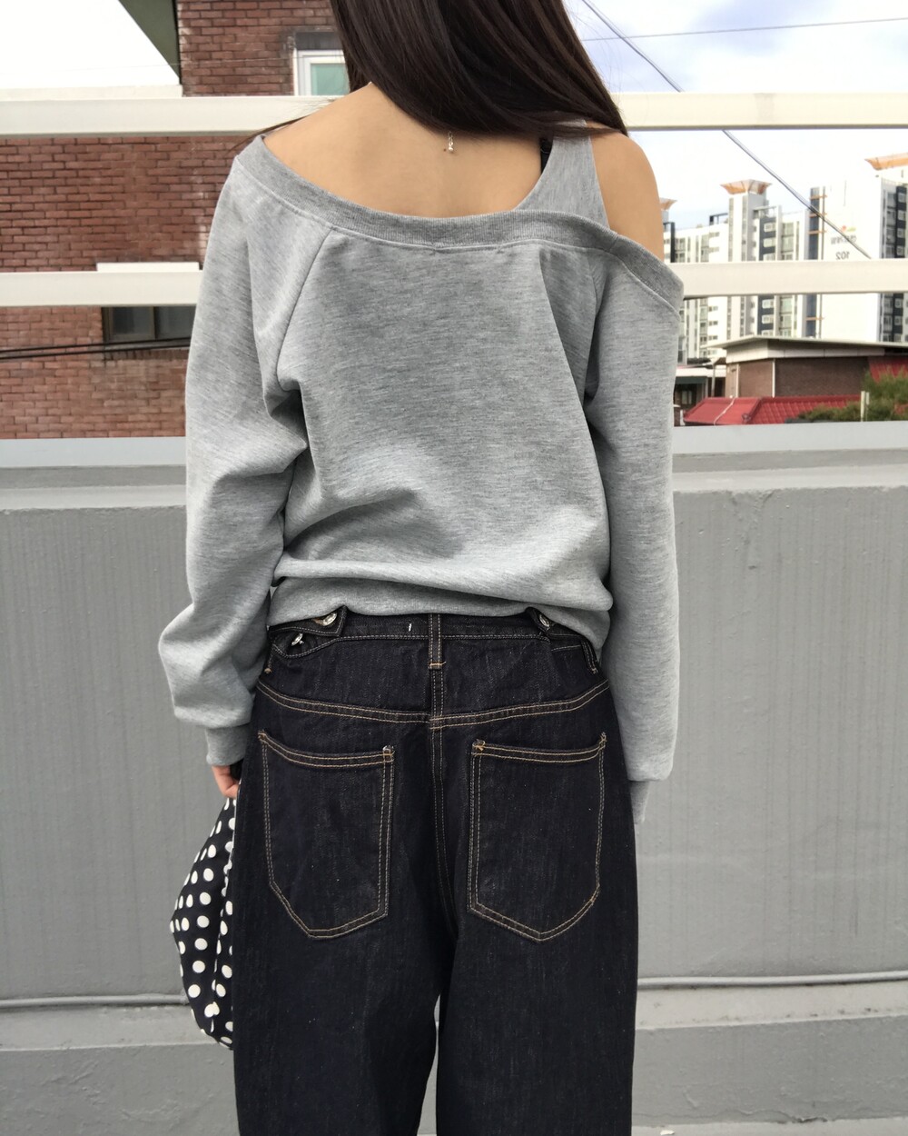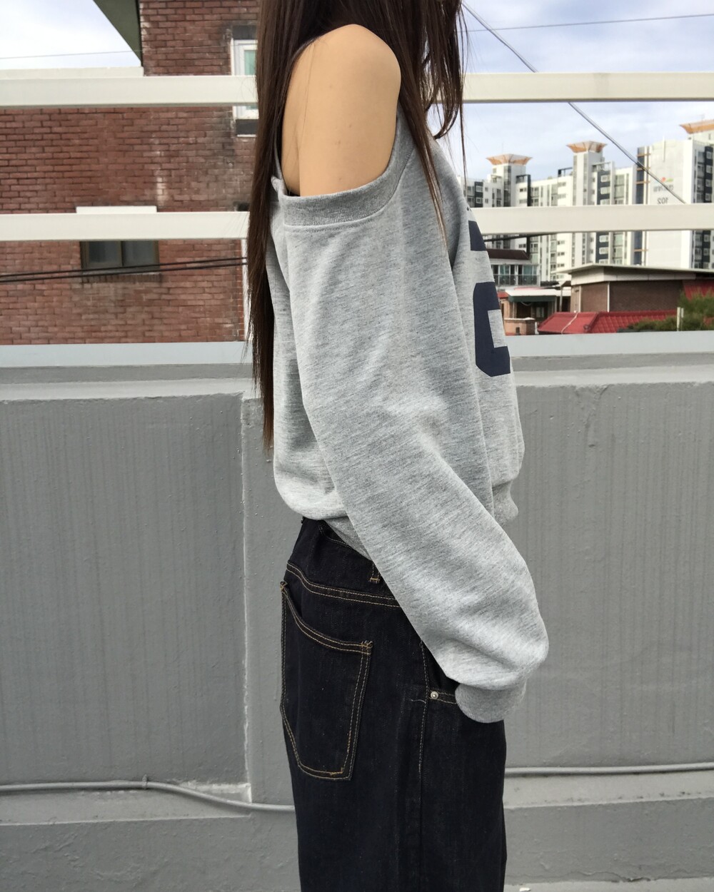 -캐주얼하면서도 스포티한 분위기의 오프숄더 맨투맨