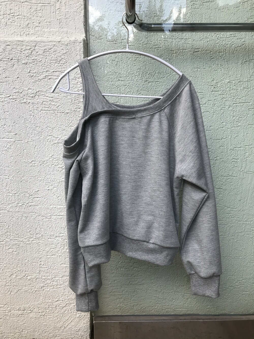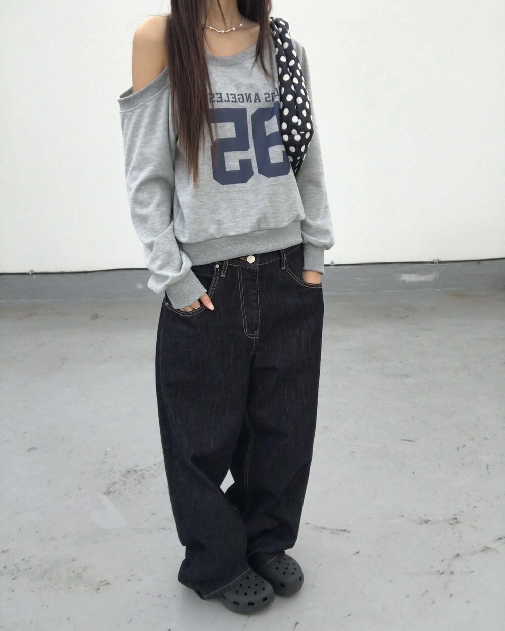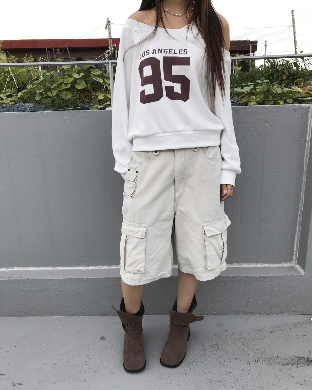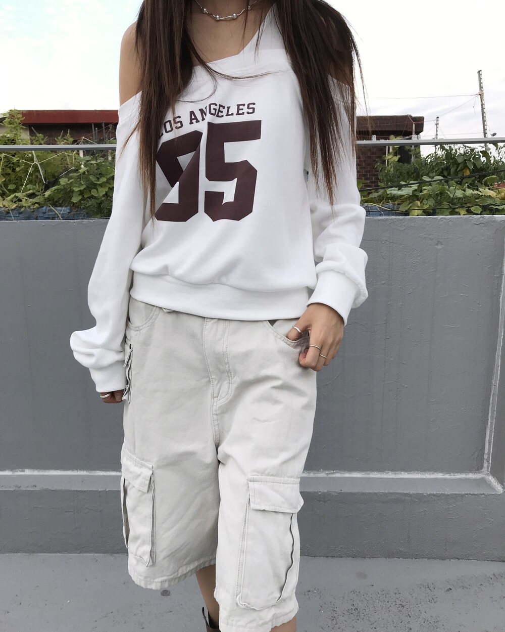 -캐주얼하면서도 스포티한 분위기의 오프숄더 맨투맨