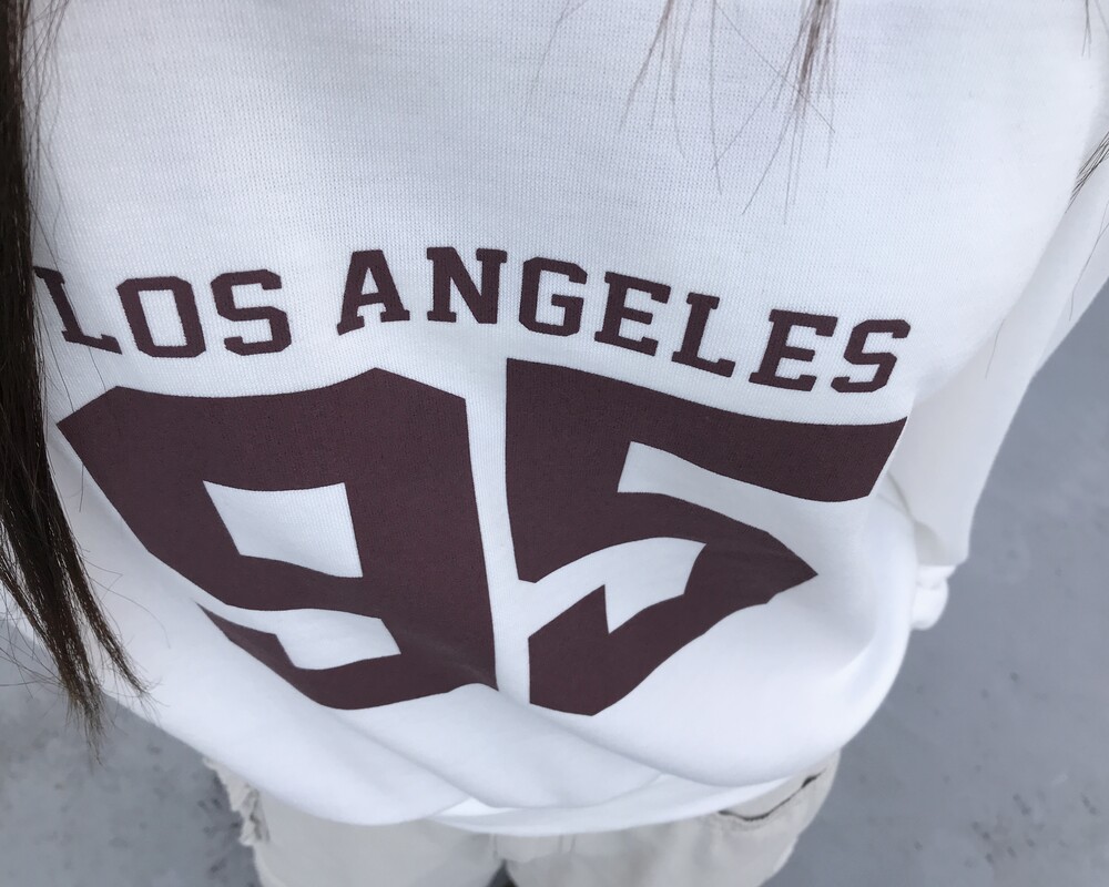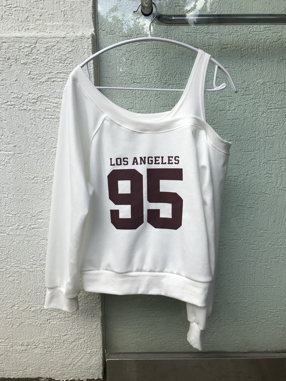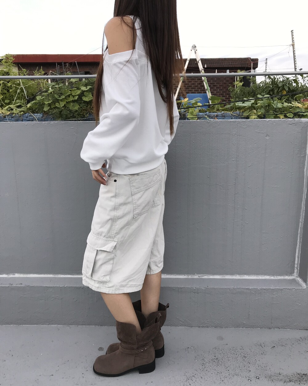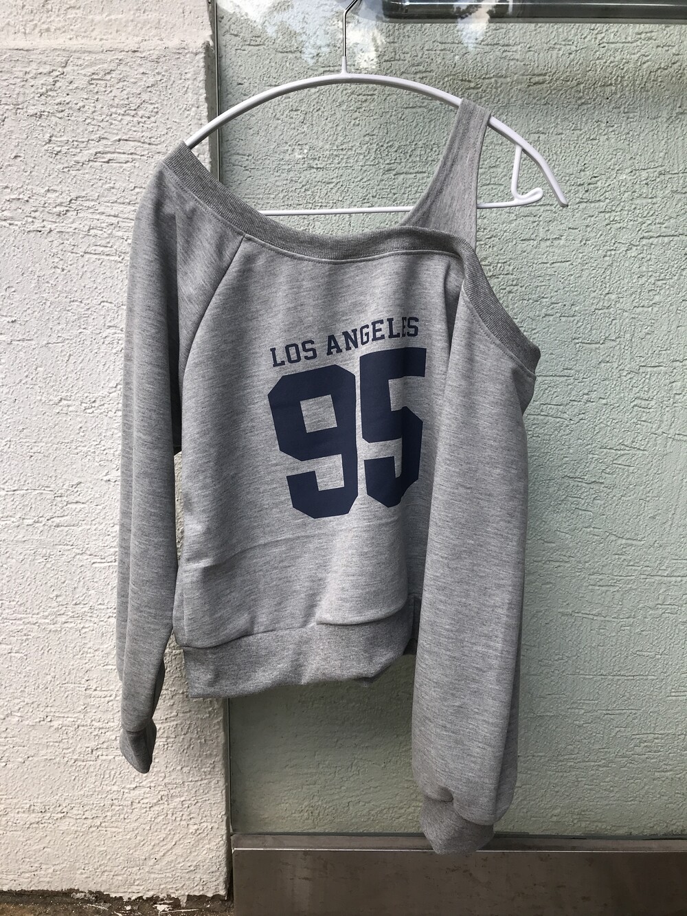 -캐주얼하면서도 스포티한 분위기의 오프숄더 맨투맨