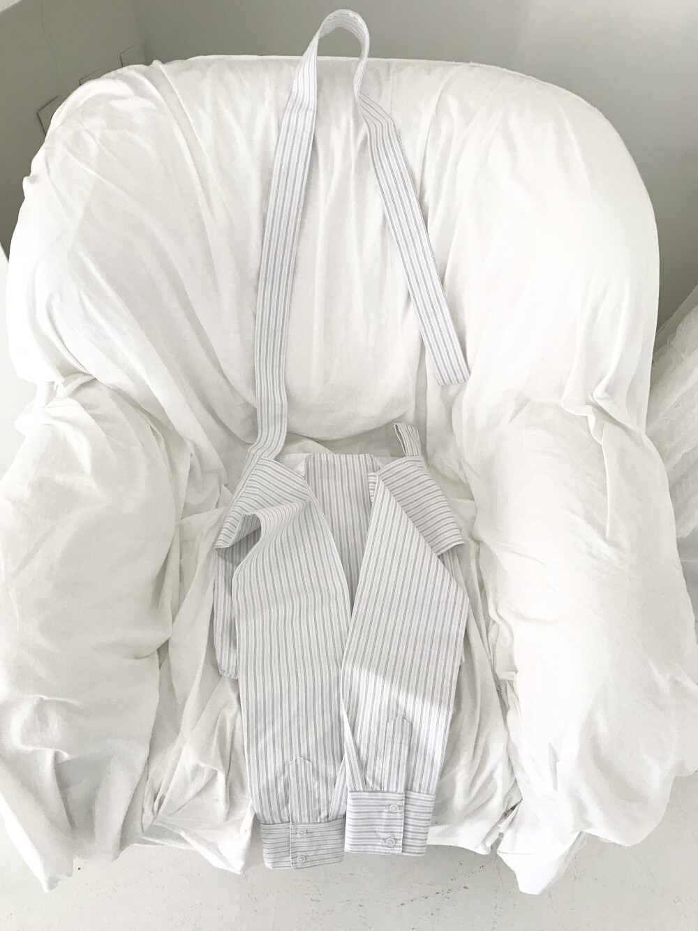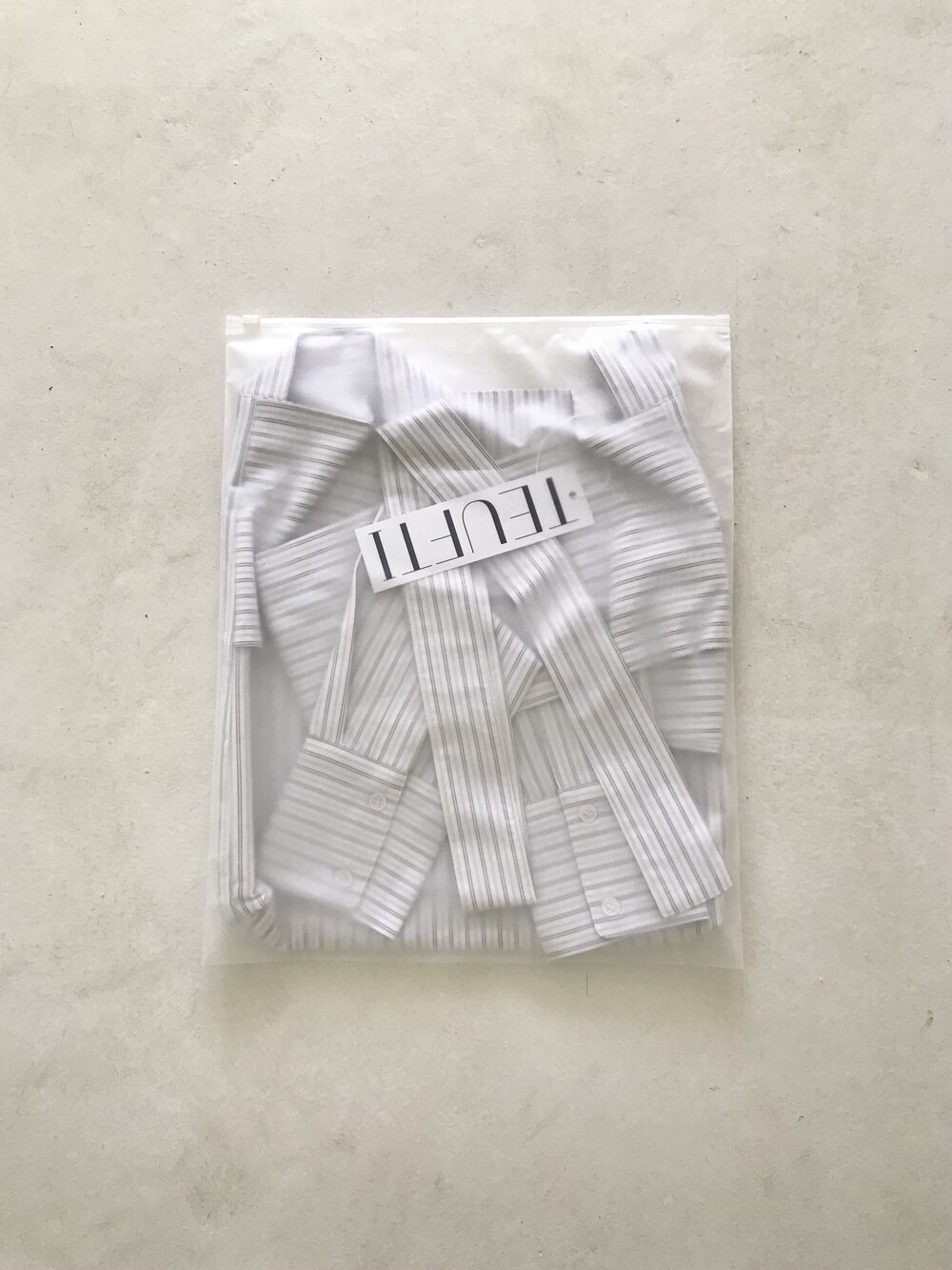 전체적으로 가볍게 형태를 잡아주는 원단감이며, 스트라이프는 상대적으로 더 탄탄한 터치감이 느껴집니다.