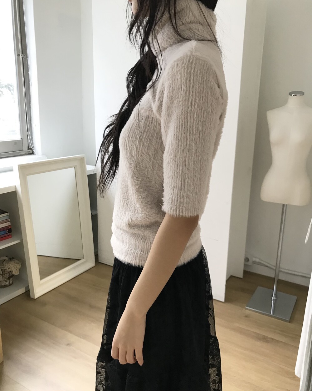 -5부 기장의 소프트한 퍼 터틀넥 니트