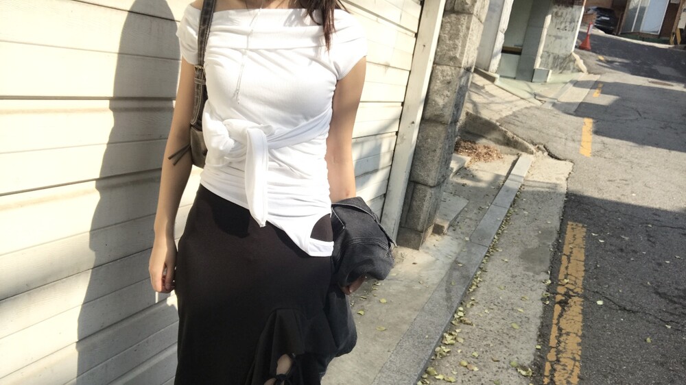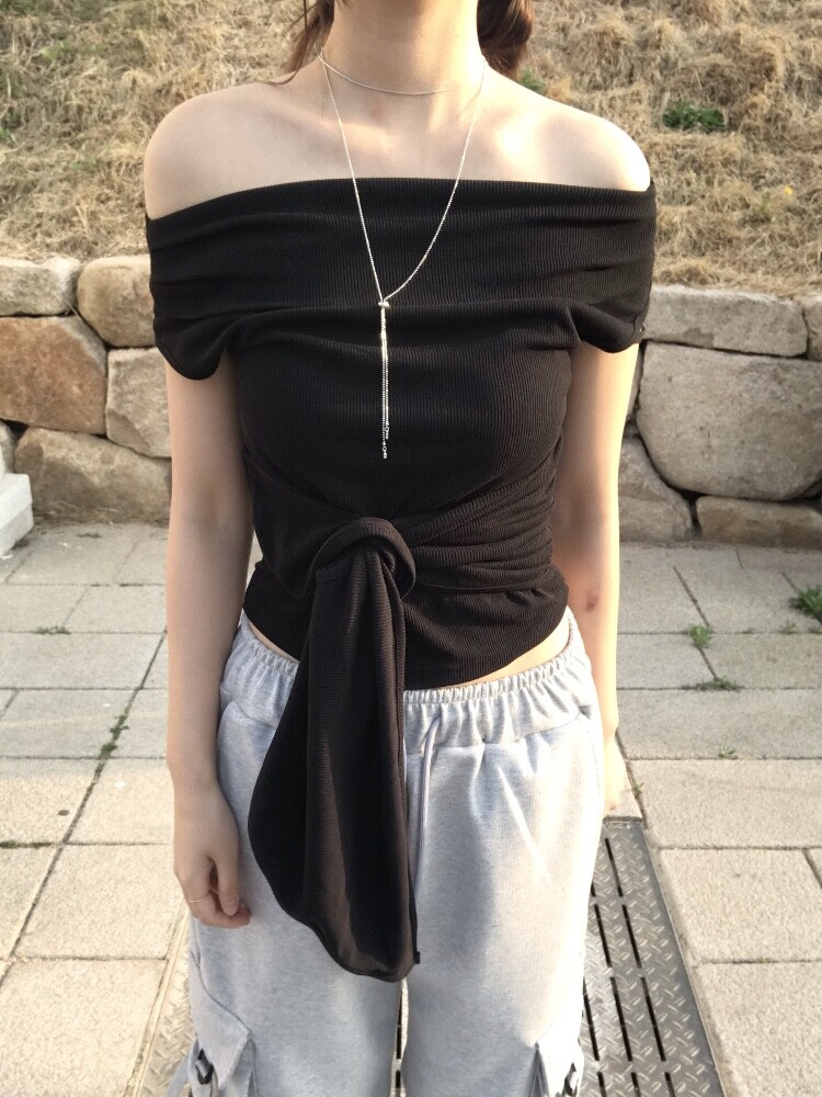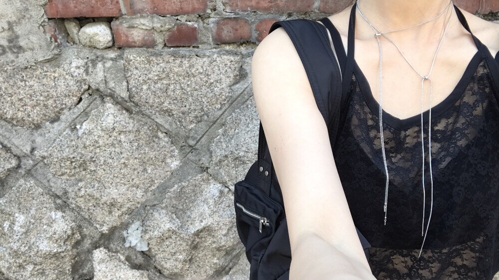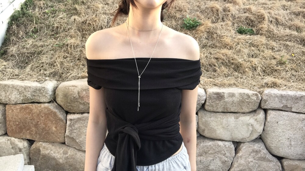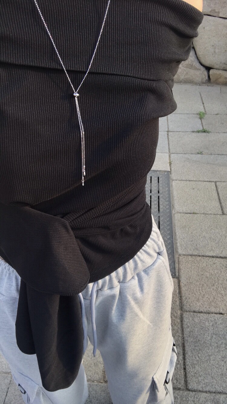 [drop ball necklace] 제품과 함께 착용한 사진입니다.
