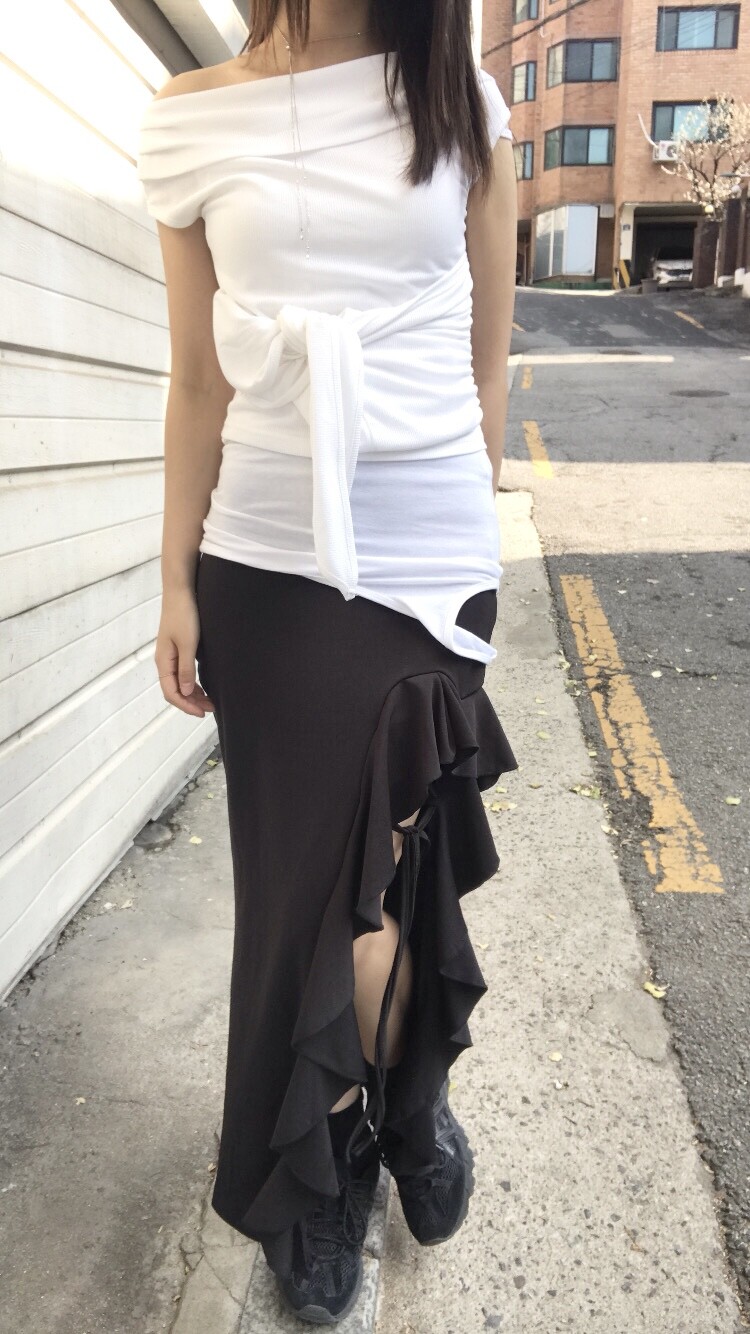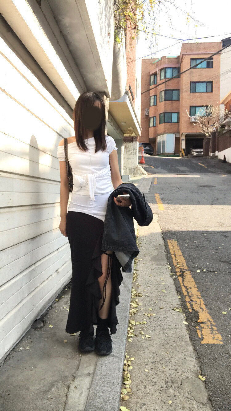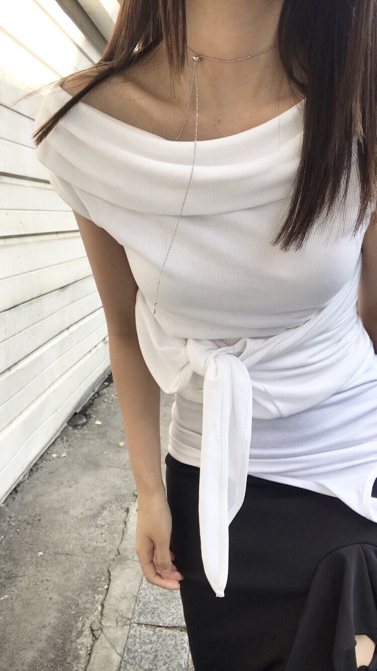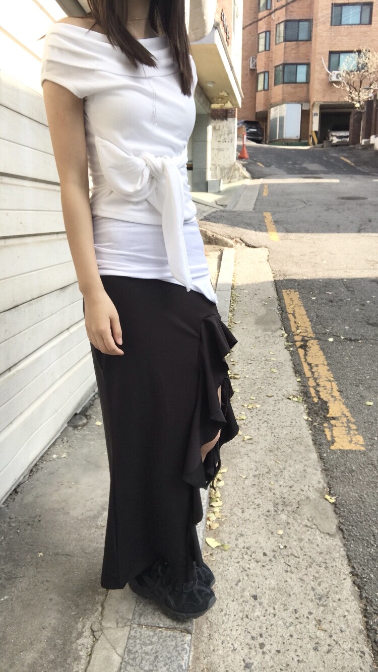 [drop ball necklace] 제품과 함께 착용한 사진입니다.