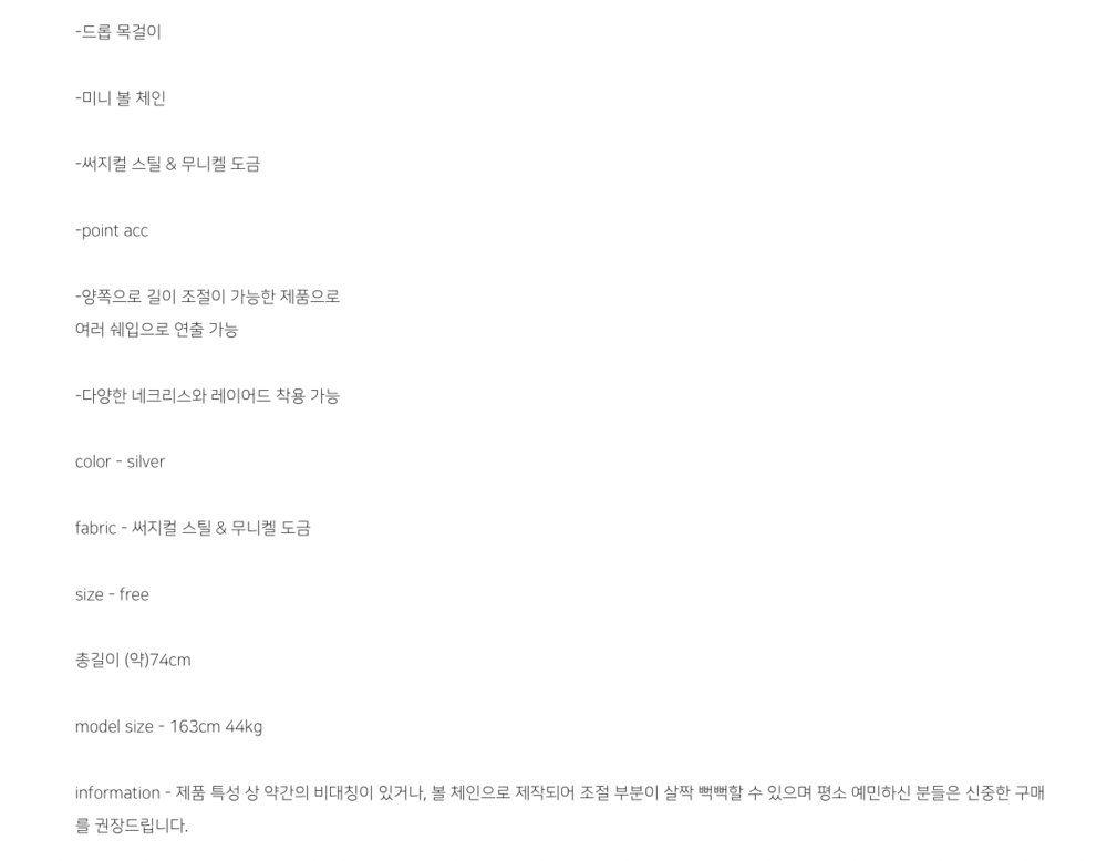 *악세사리 제품은 워터나 공기 중에 장시간 노출 시 변색이 진행될 수 있습니다.