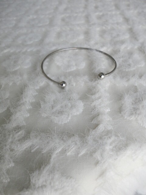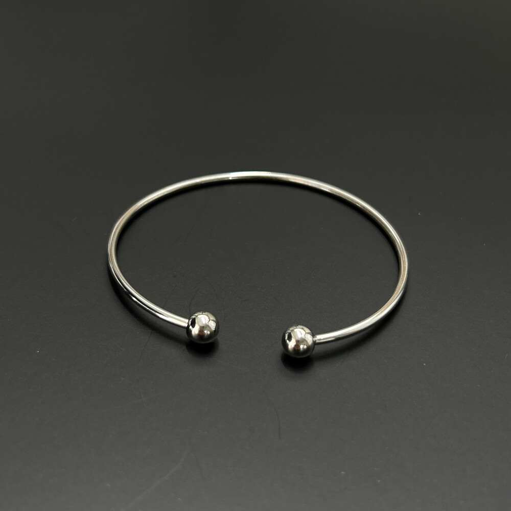 끝단에 볼 디테일이 더해진 심플한 디자인의 오픈 뱅글입니다.
