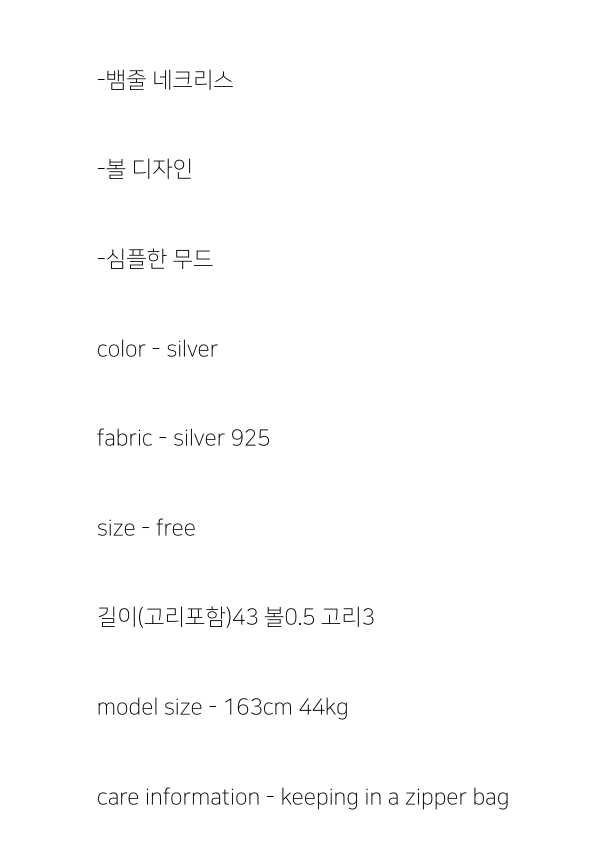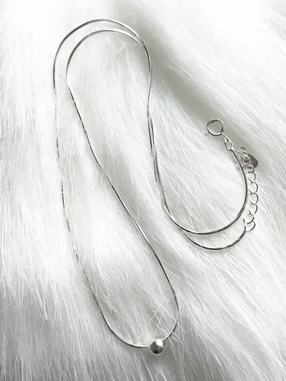 얇은 뱀줄에 작은 실버 볼이 포인트가 되는 주얼리입니다.