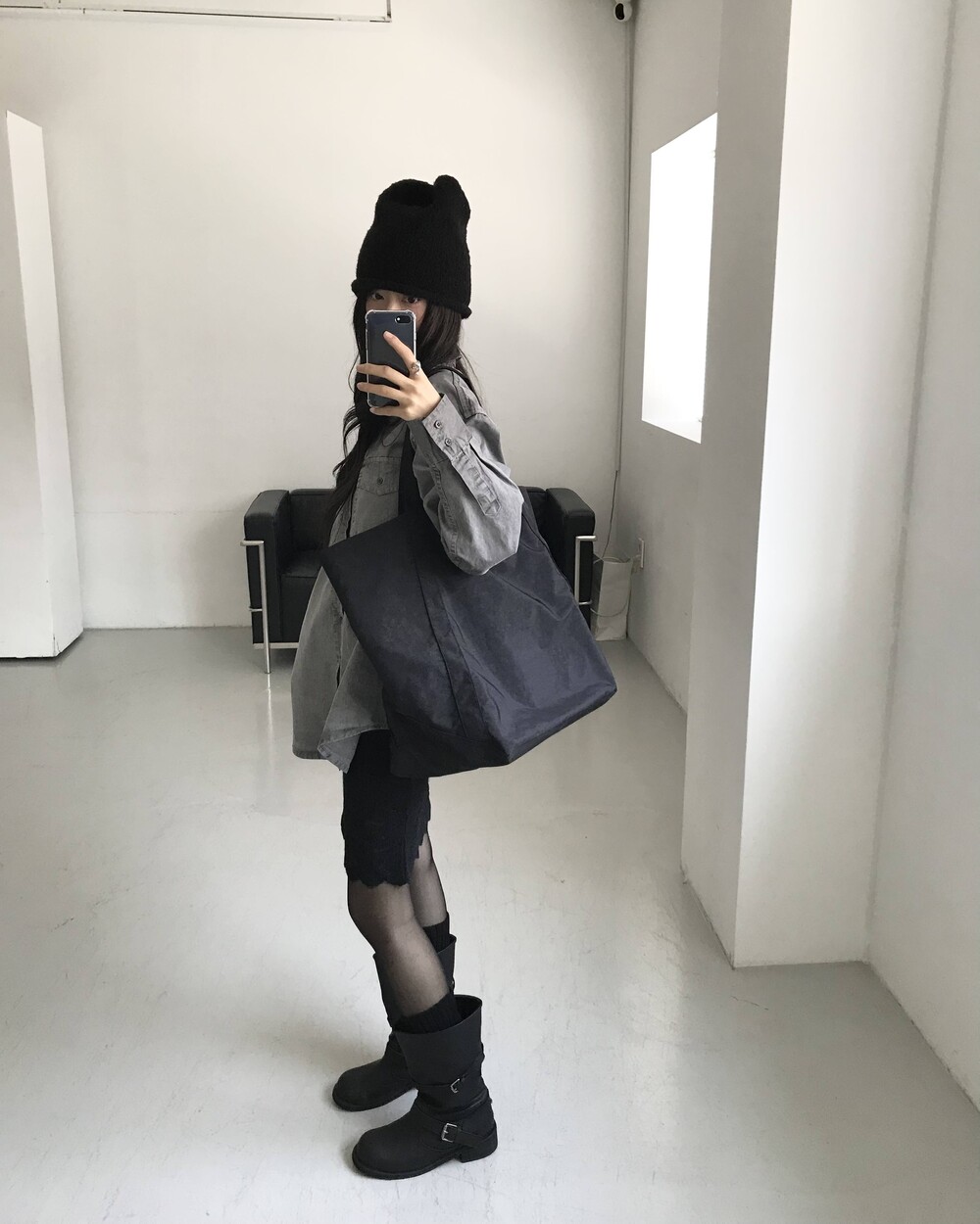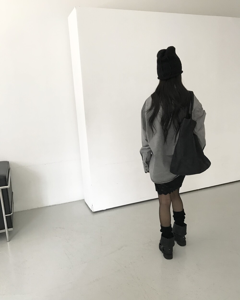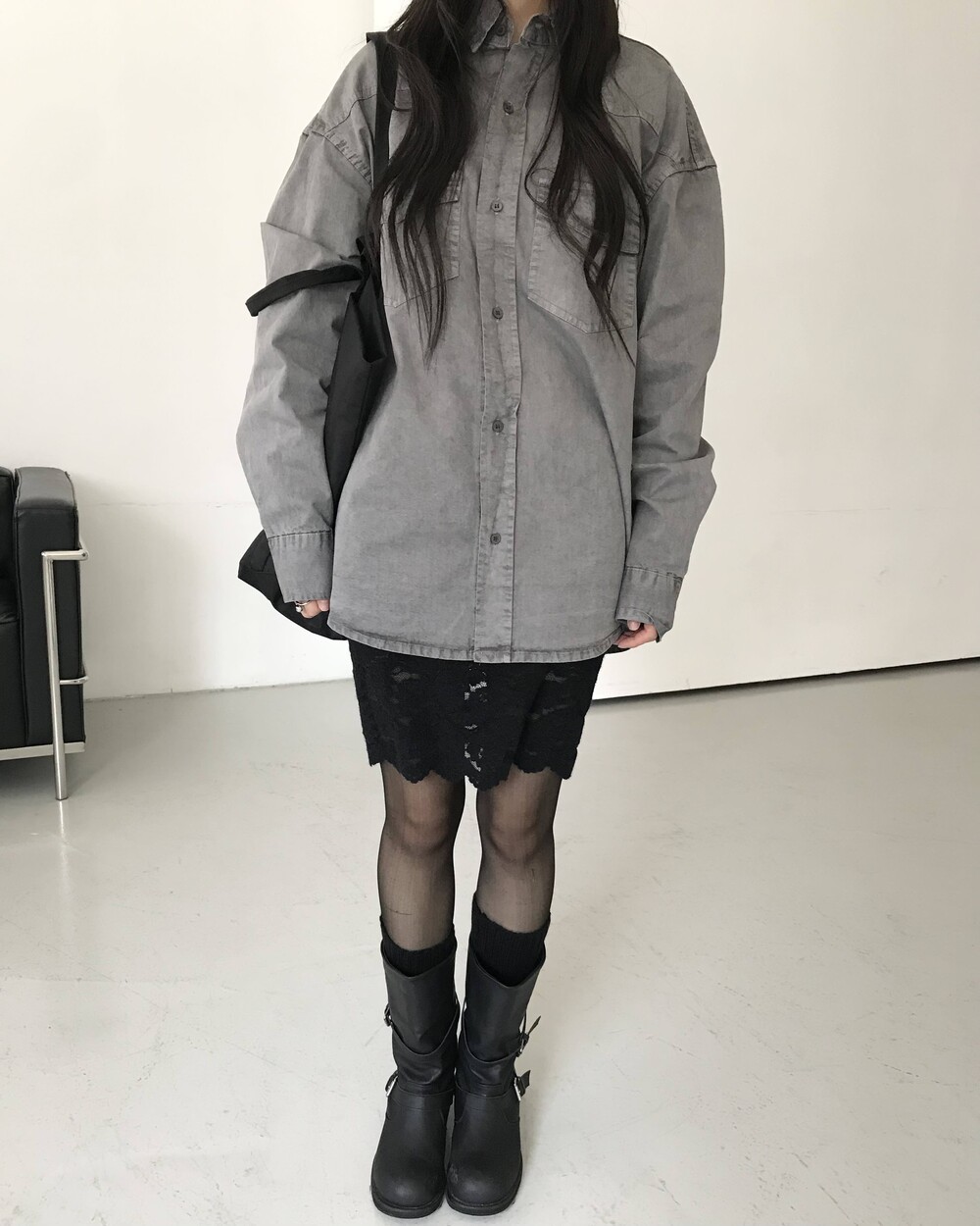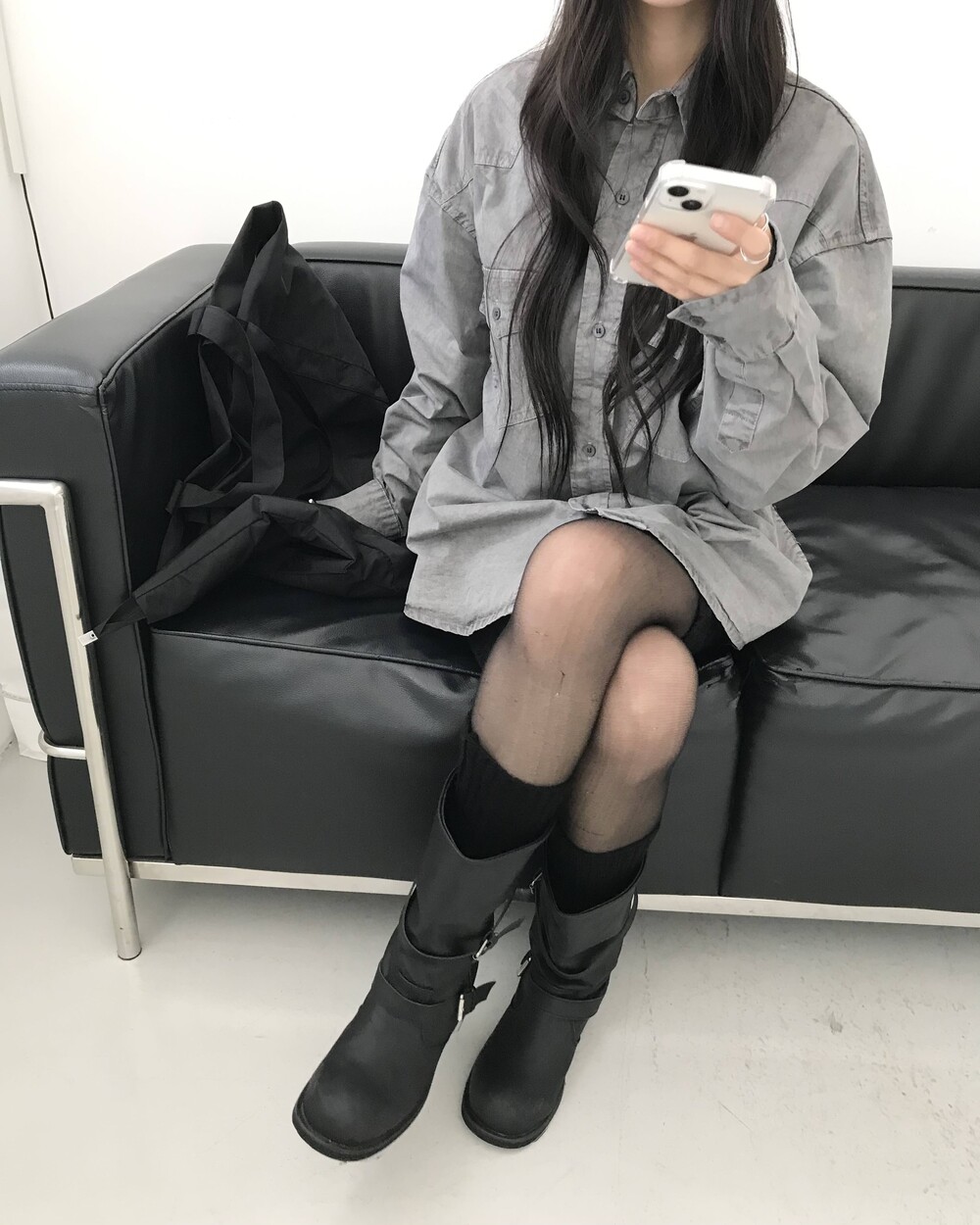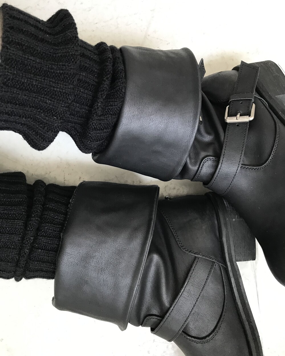 -유연한 소재감으로 부츠 통을 자연스럽게 주름지게 내려 연출할 수 있어