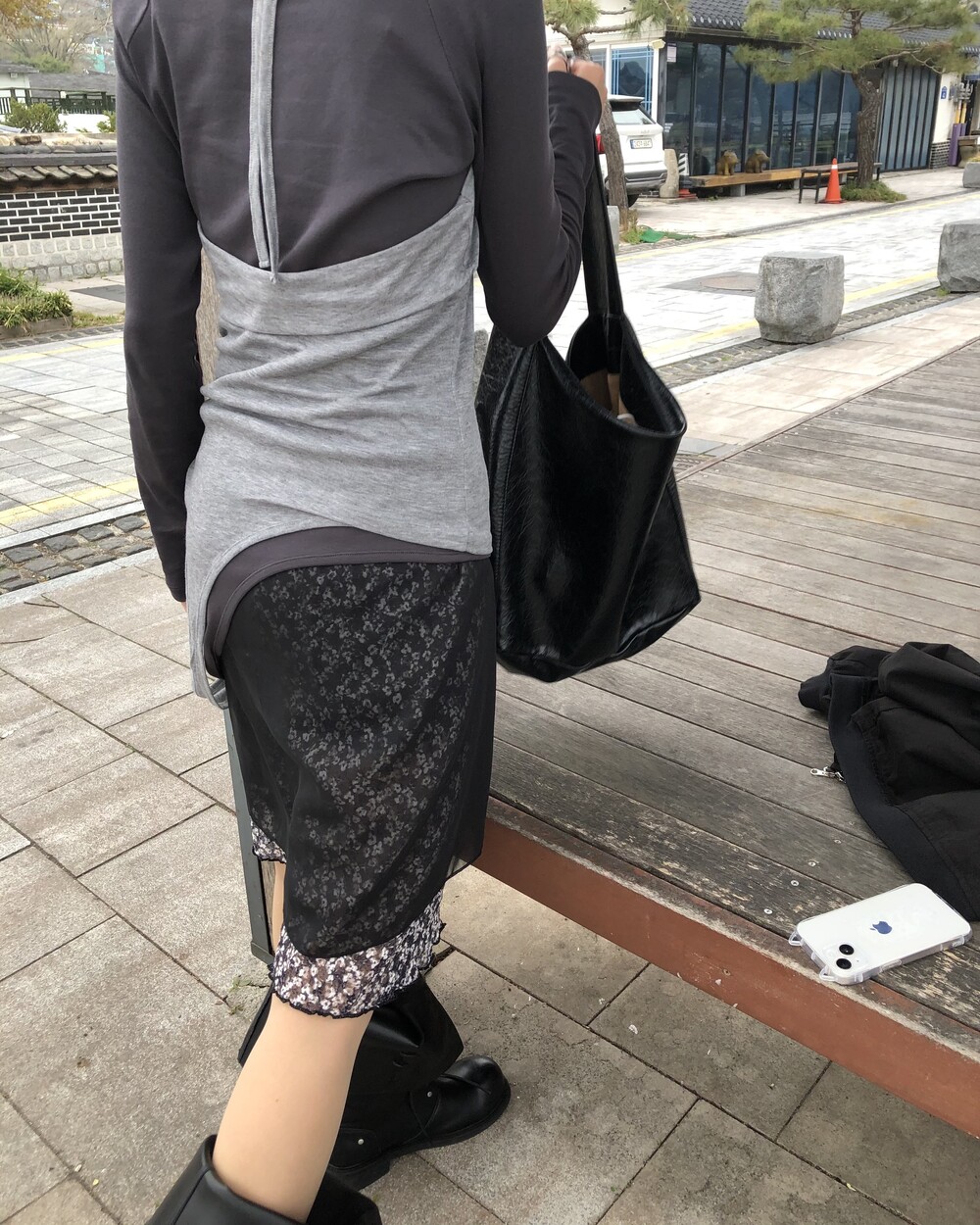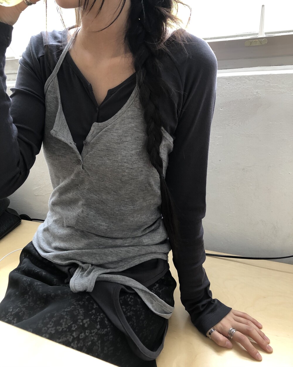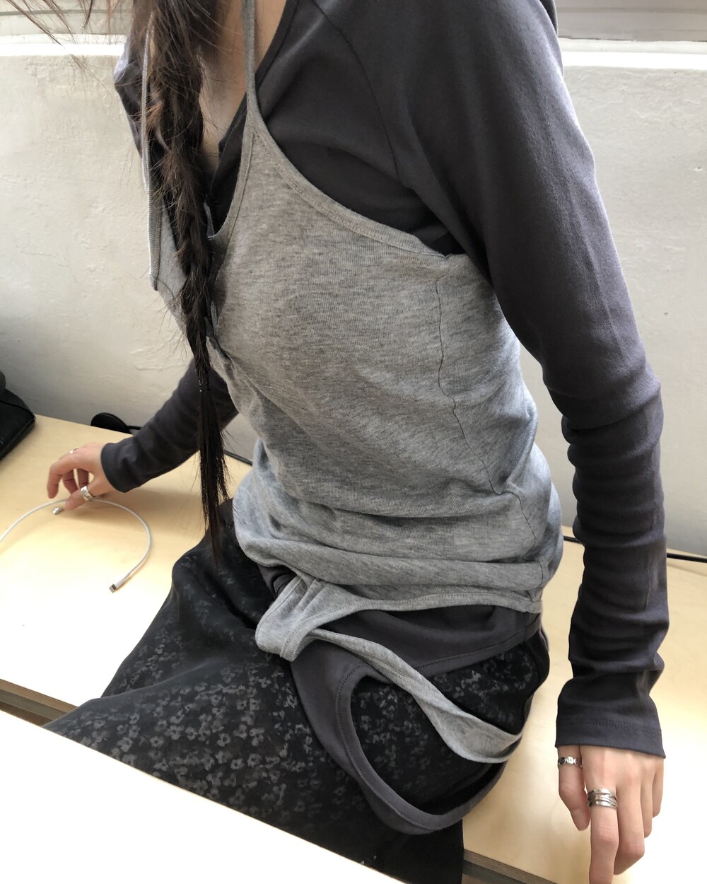 *트임은 따로 없는 제품입니다. (겉에 레이어드 된 블랙 스커트 제외)