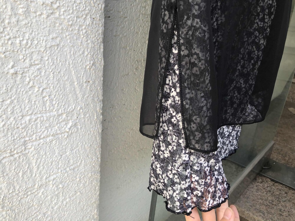-시어한 블랙 시스루 소재와 플로럴 레이스가