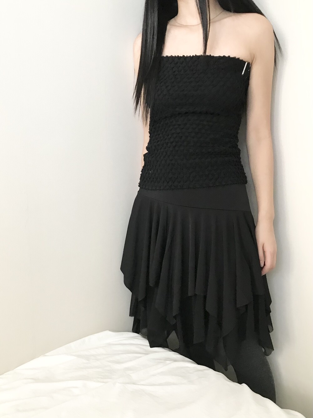 살랑거리면서 겹겹으로 쌓여있는 언발한 러플 디테일이