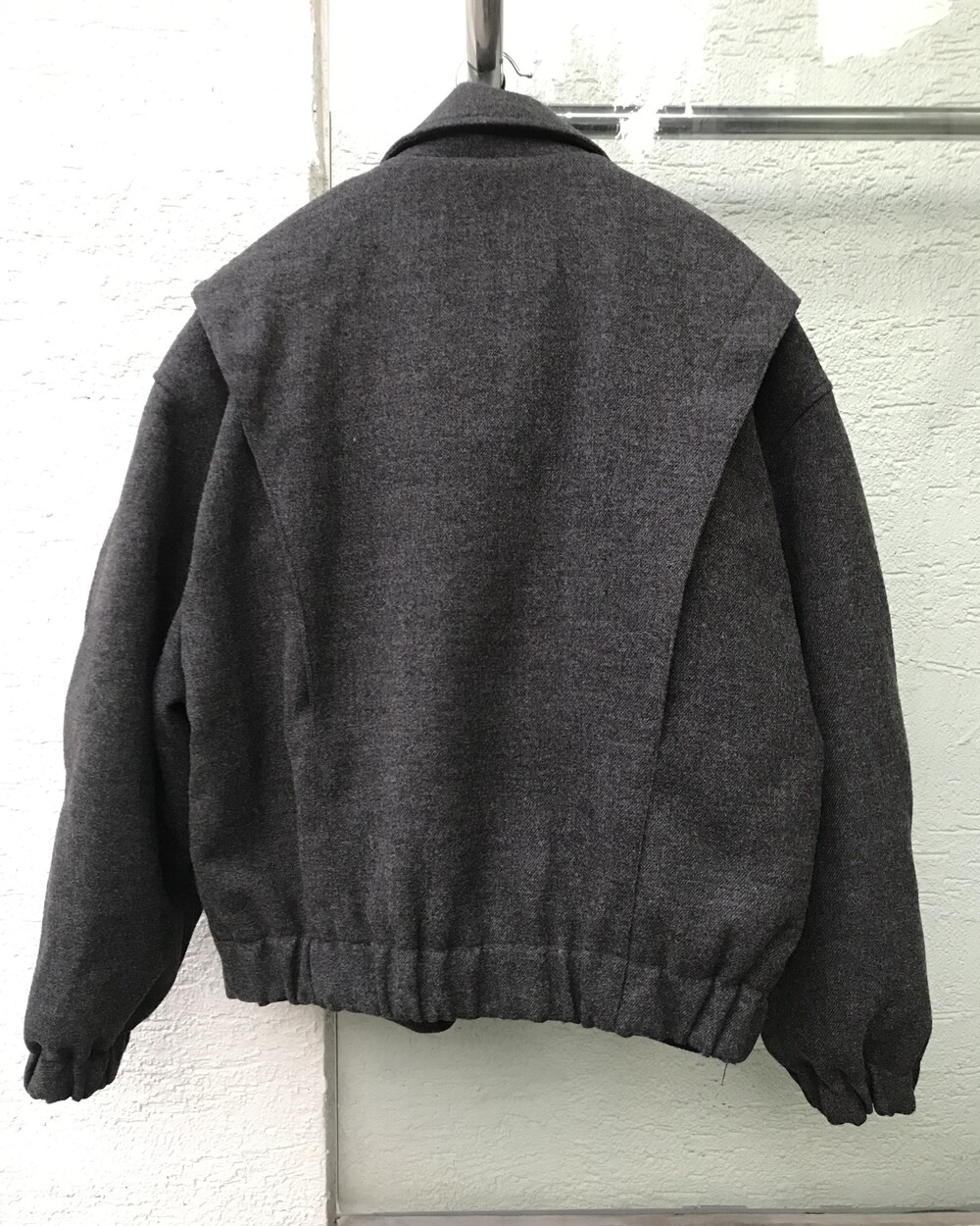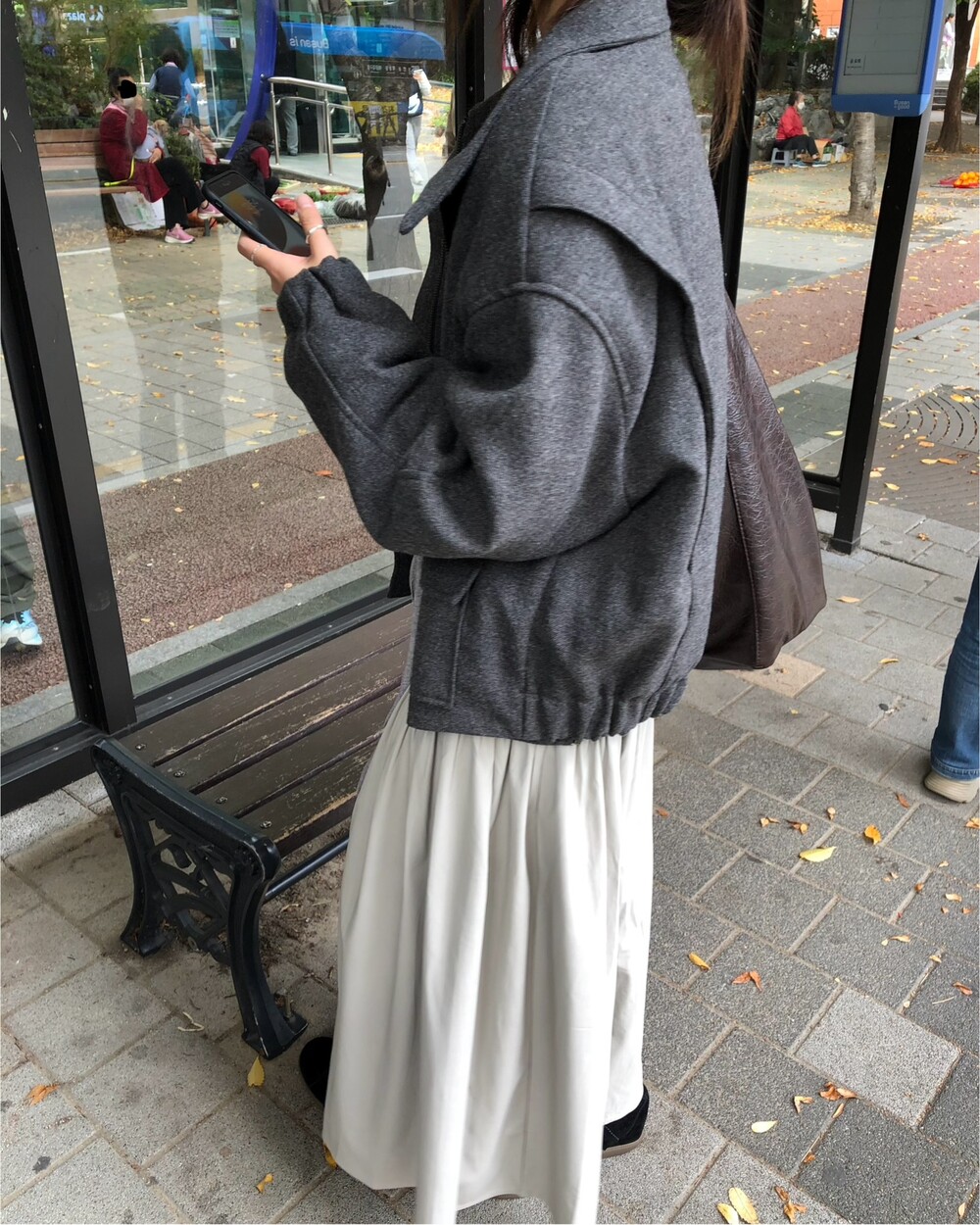 -클래식한 카라 디자인에 볼륨감 있는 소매와, 크롭 기장의 울 블루종 코트