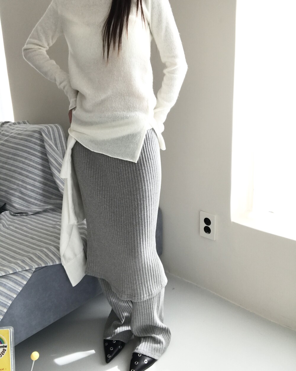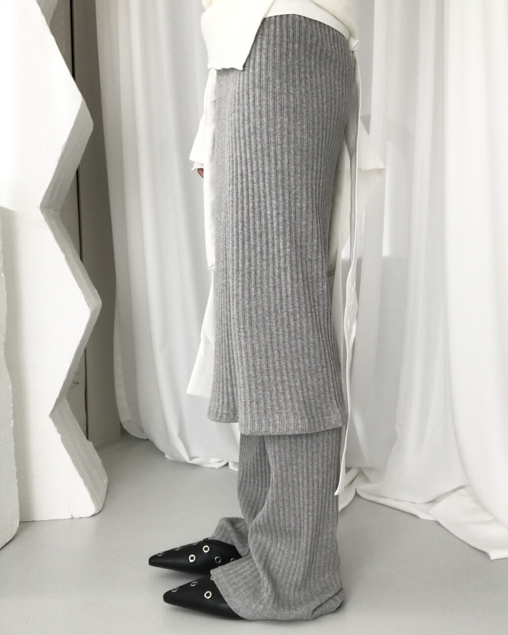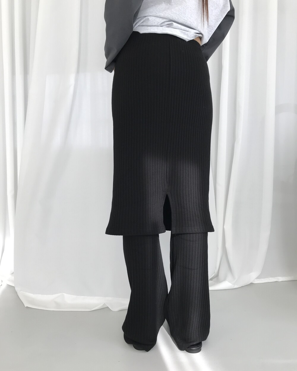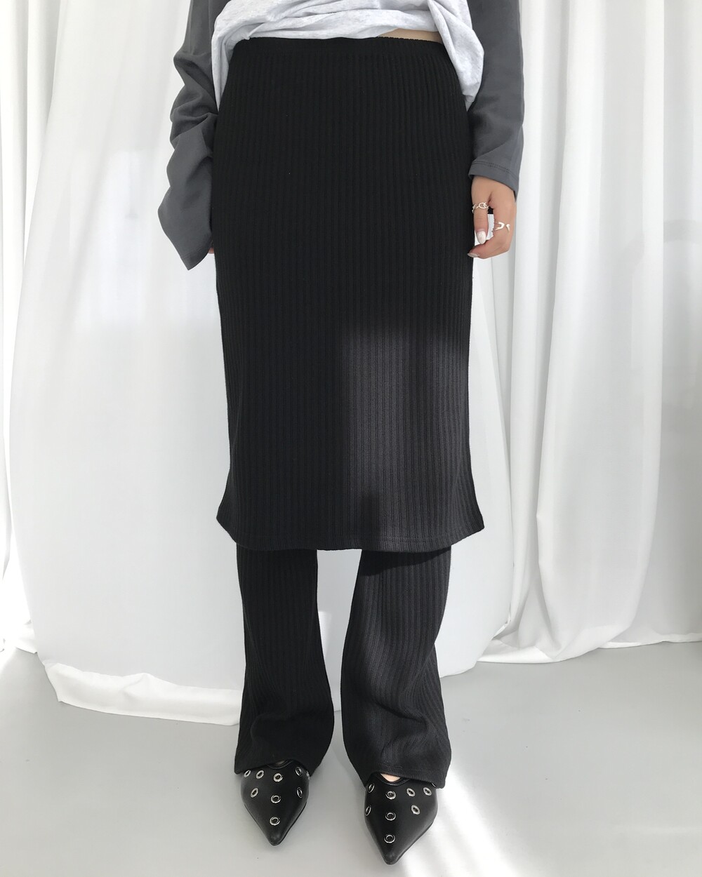 -니트 골지 스커트와 부츠컷 팬츠로 구성된 세트 아이템
