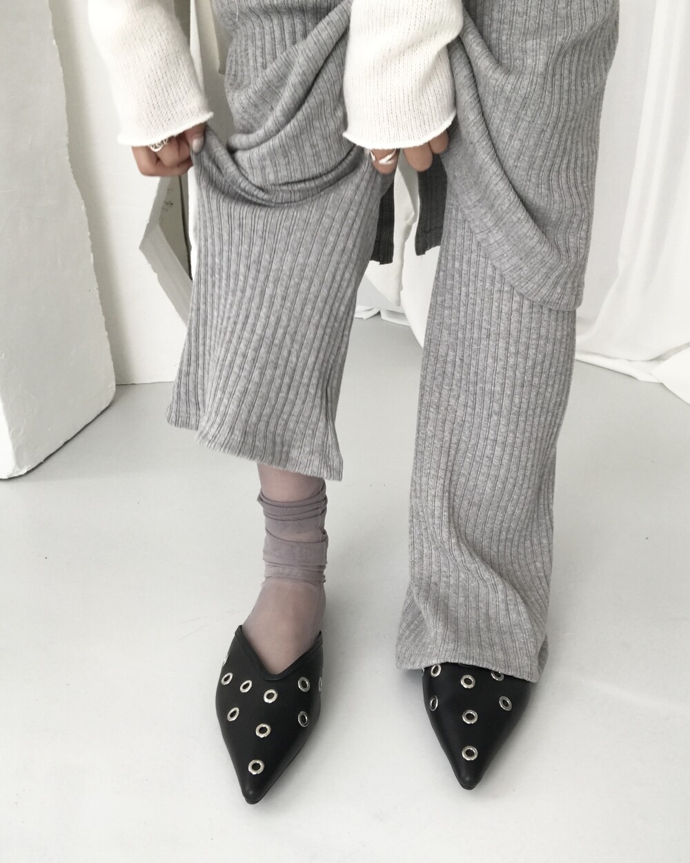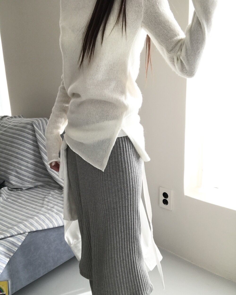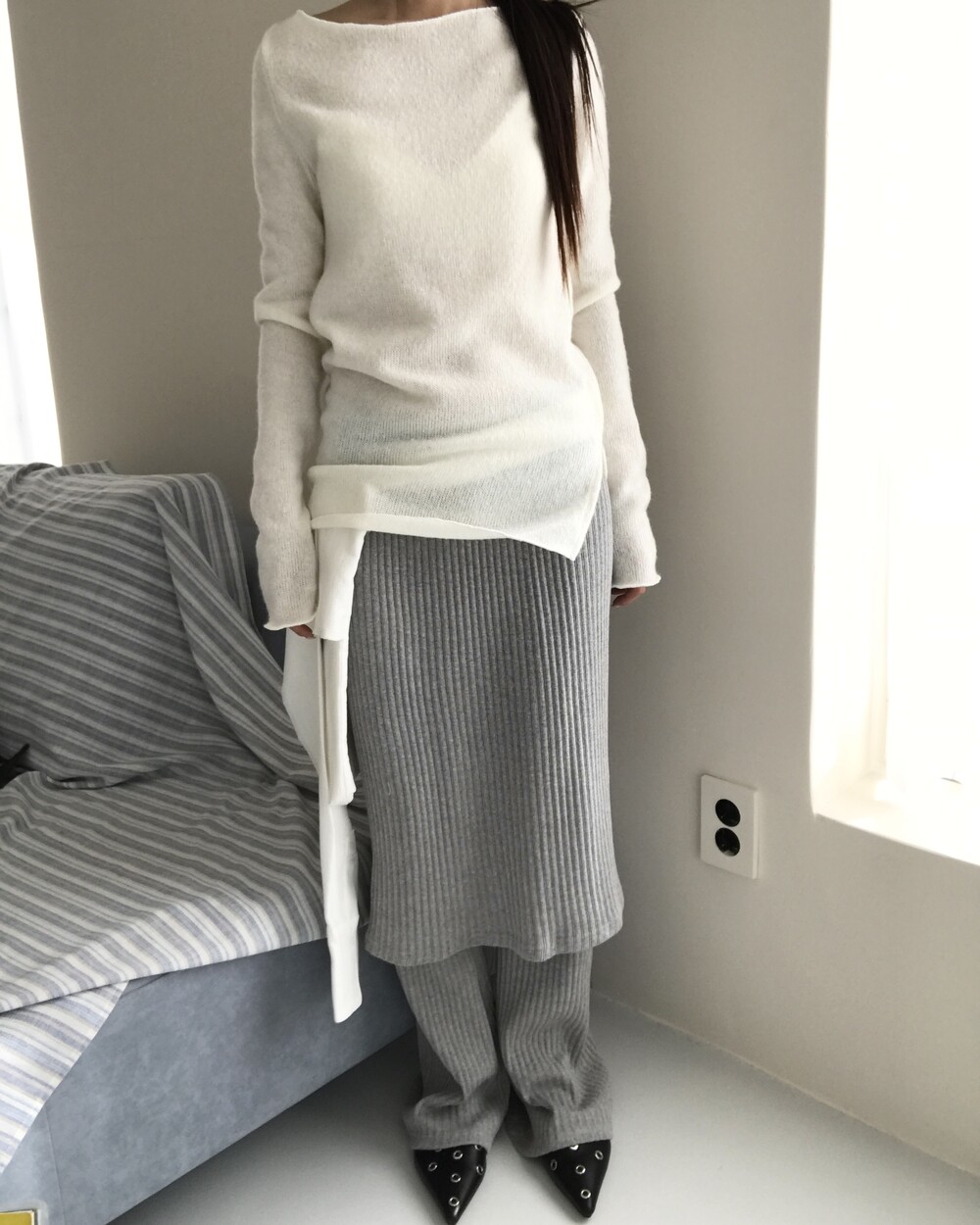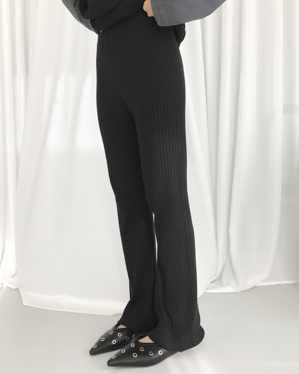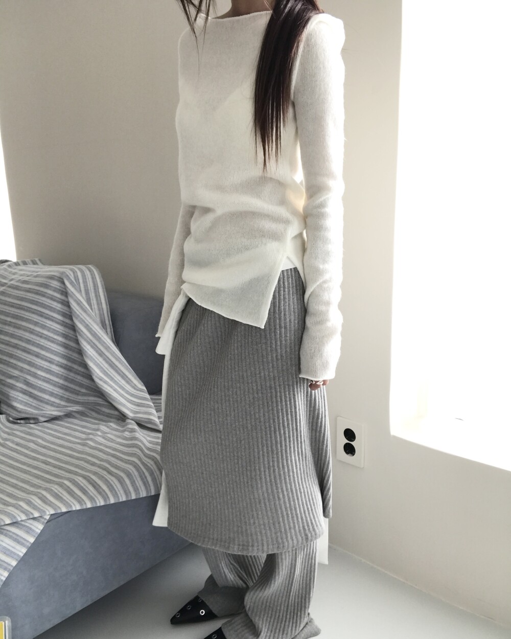 -니트 골지 스커트와 부츠컷 팬츠로 구성된 세트 아이템