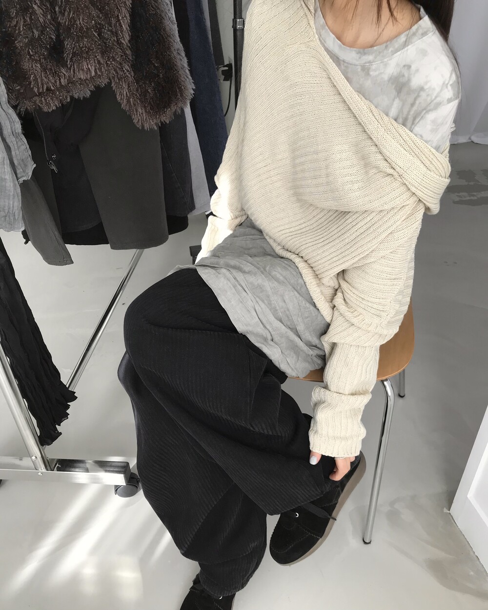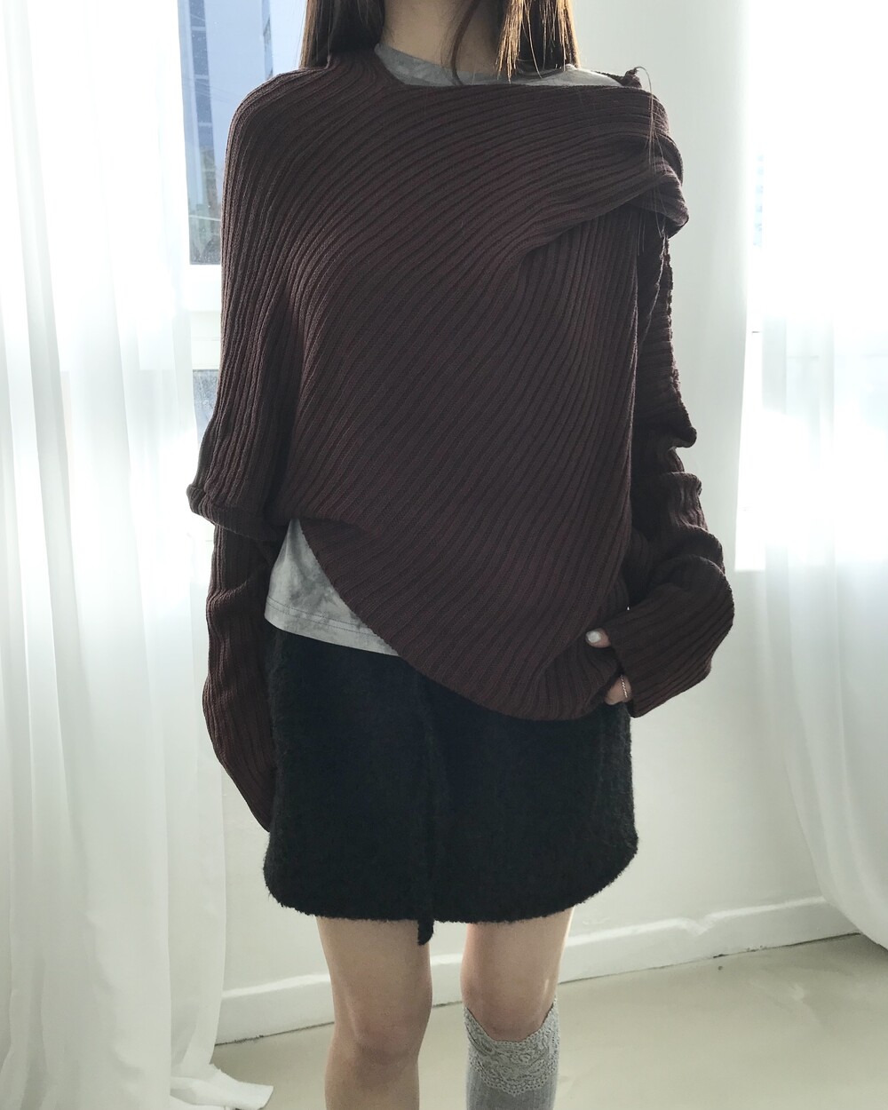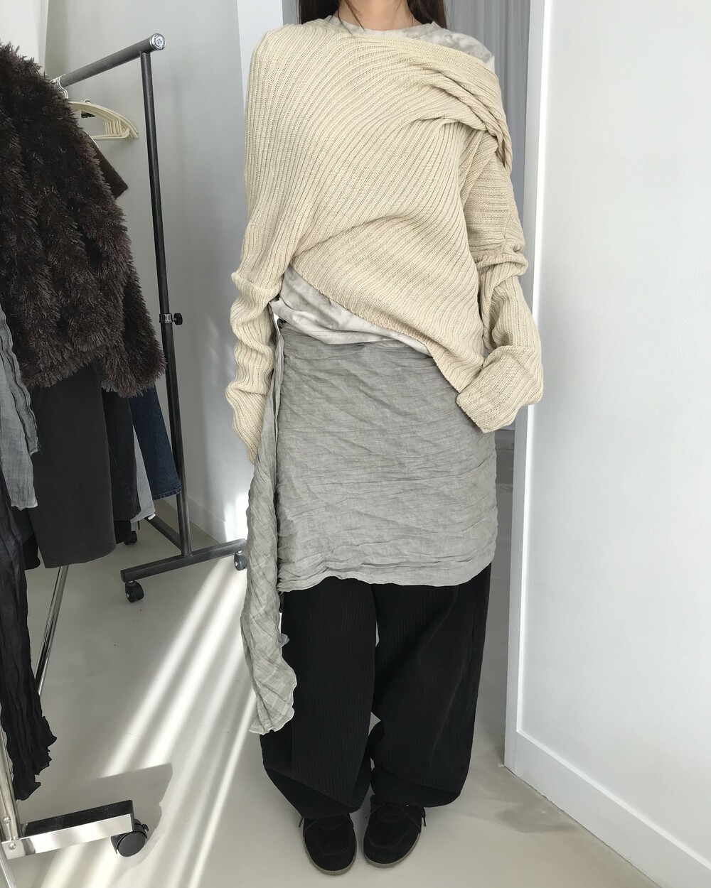 -숄을 두른 듯한 드레이퍼리한 실루엣