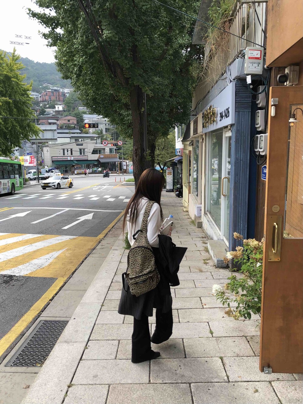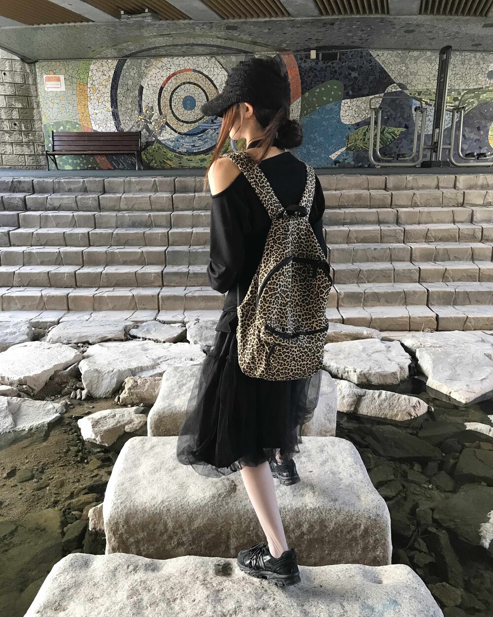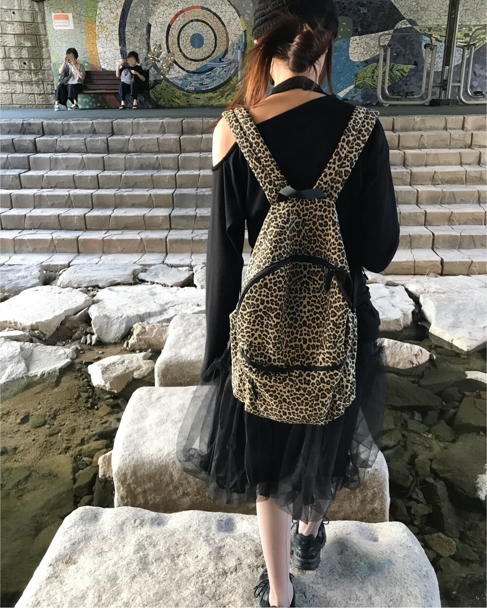 -레오파드 패턴의 백팩