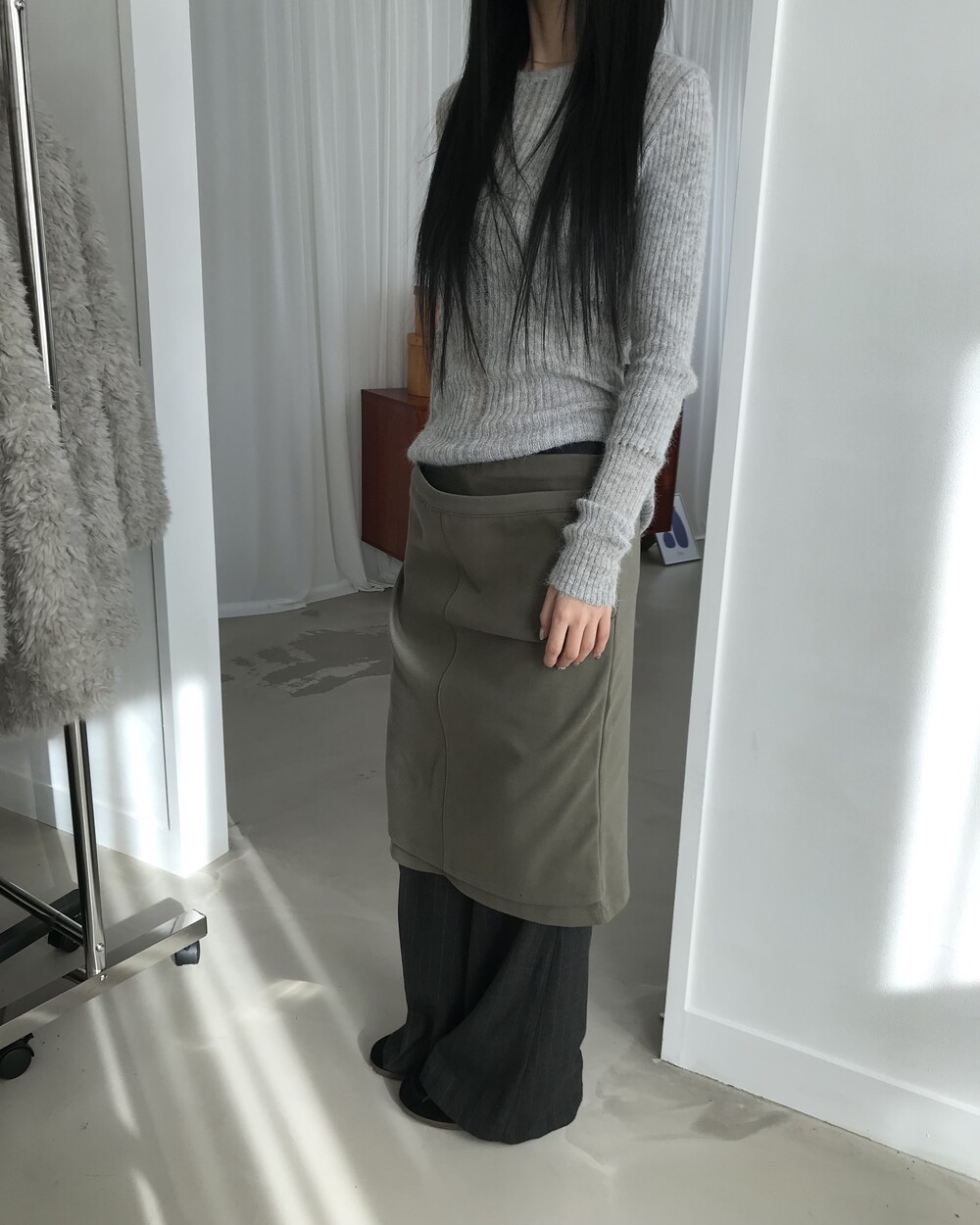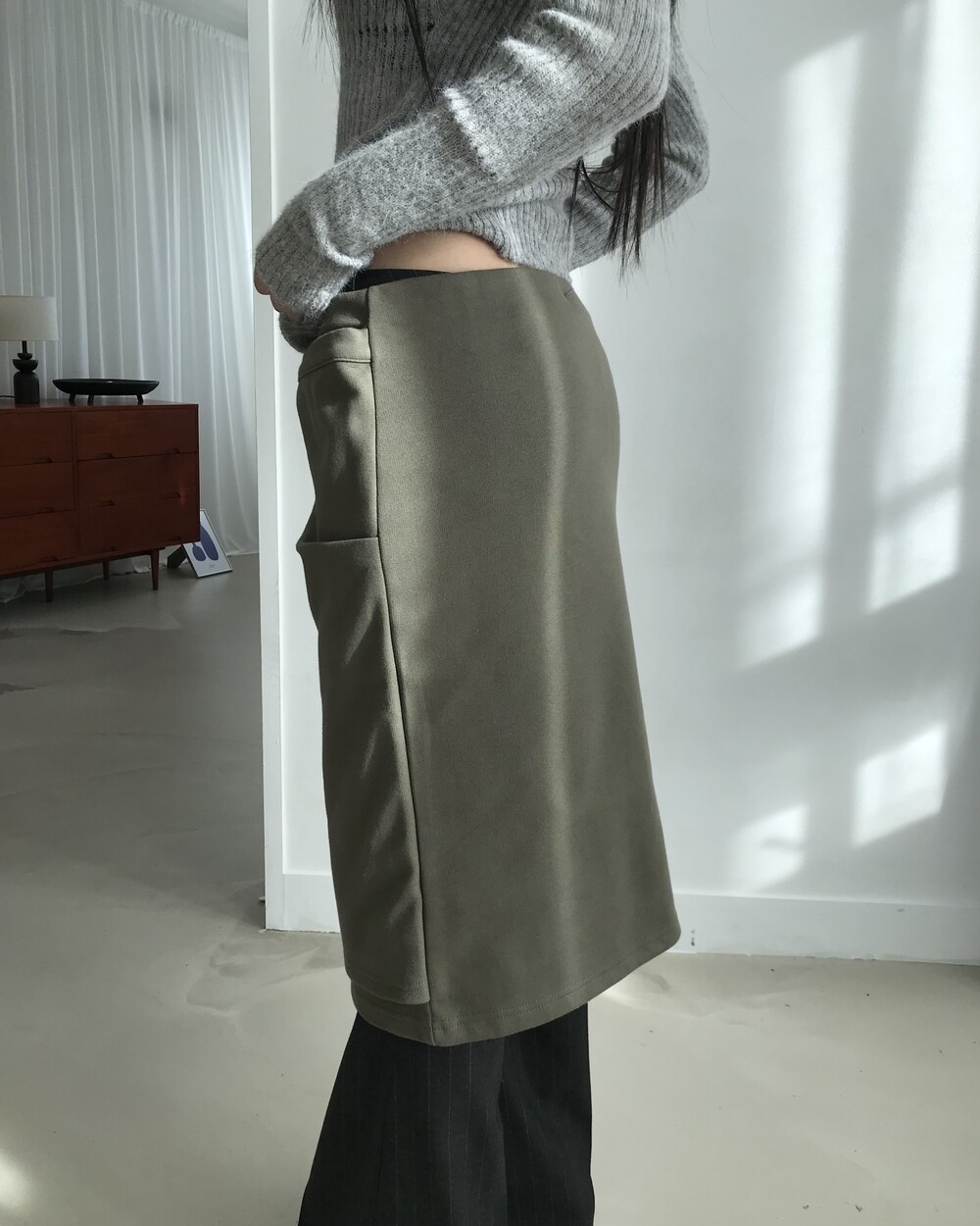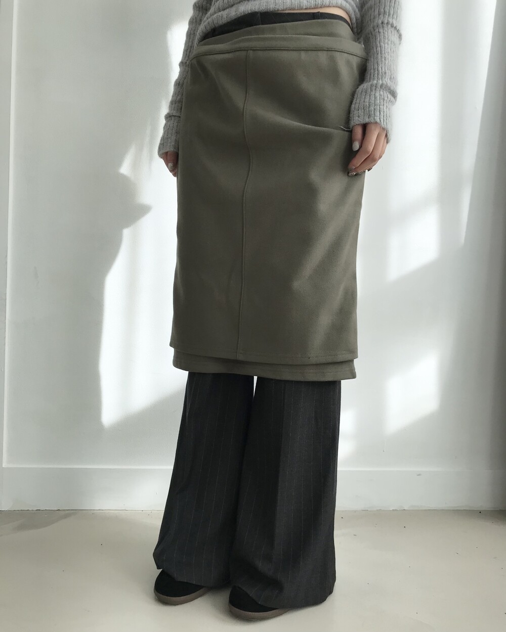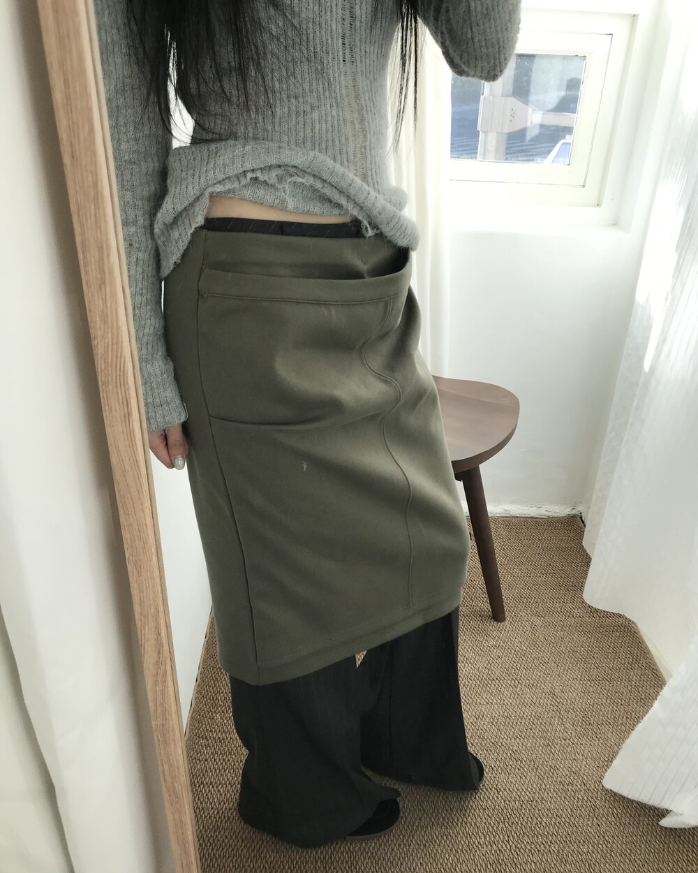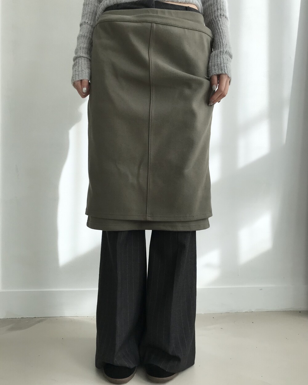 -프론트 입체적인 레이어드 디테일의 미디 스커트
