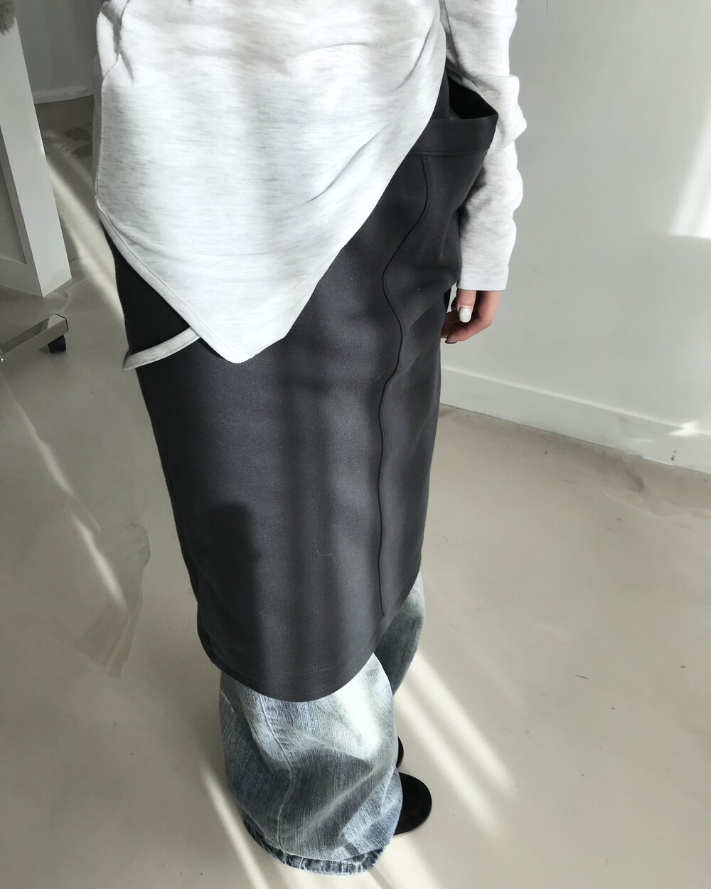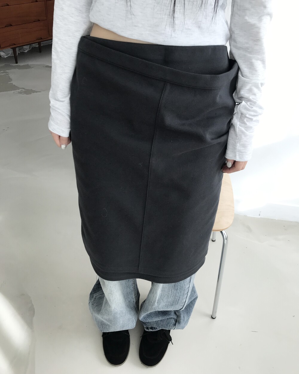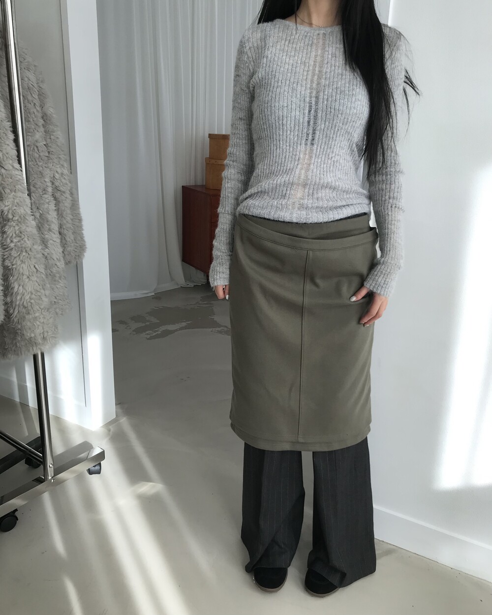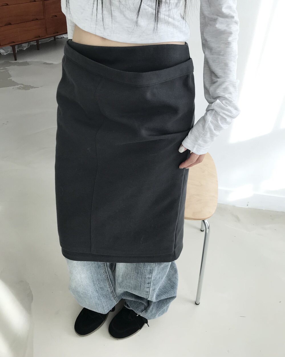 -프론트 입체적인 레이어드 디테일의 미디 스커트