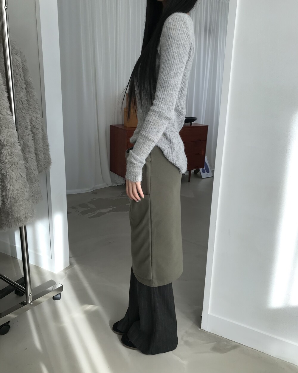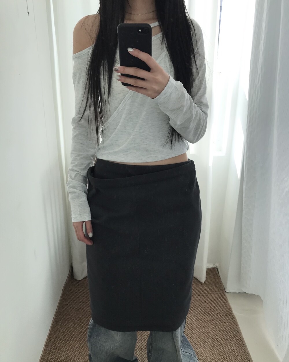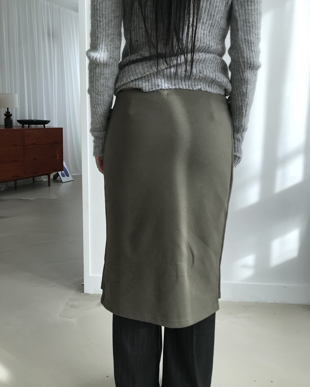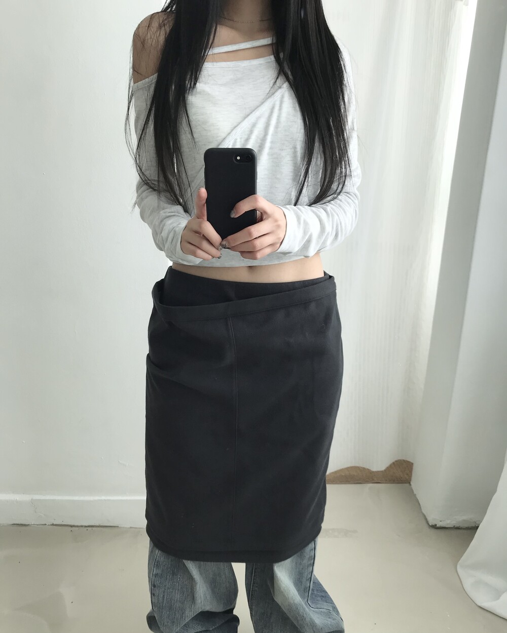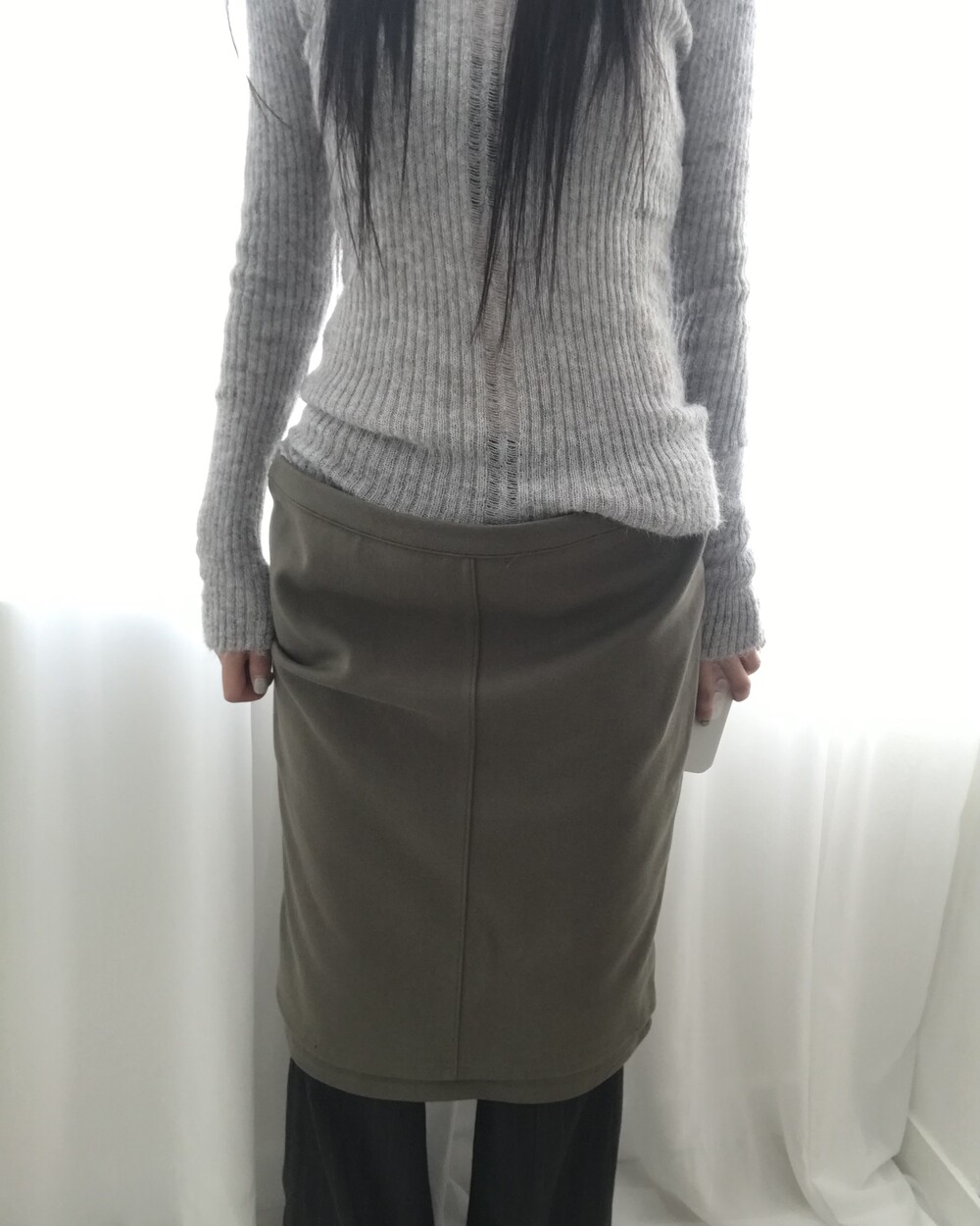 -프론트 입체적인 레이어드 디테일의 미디 스커트