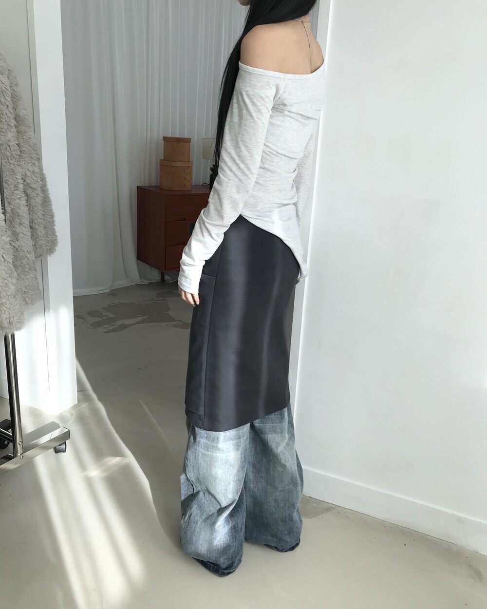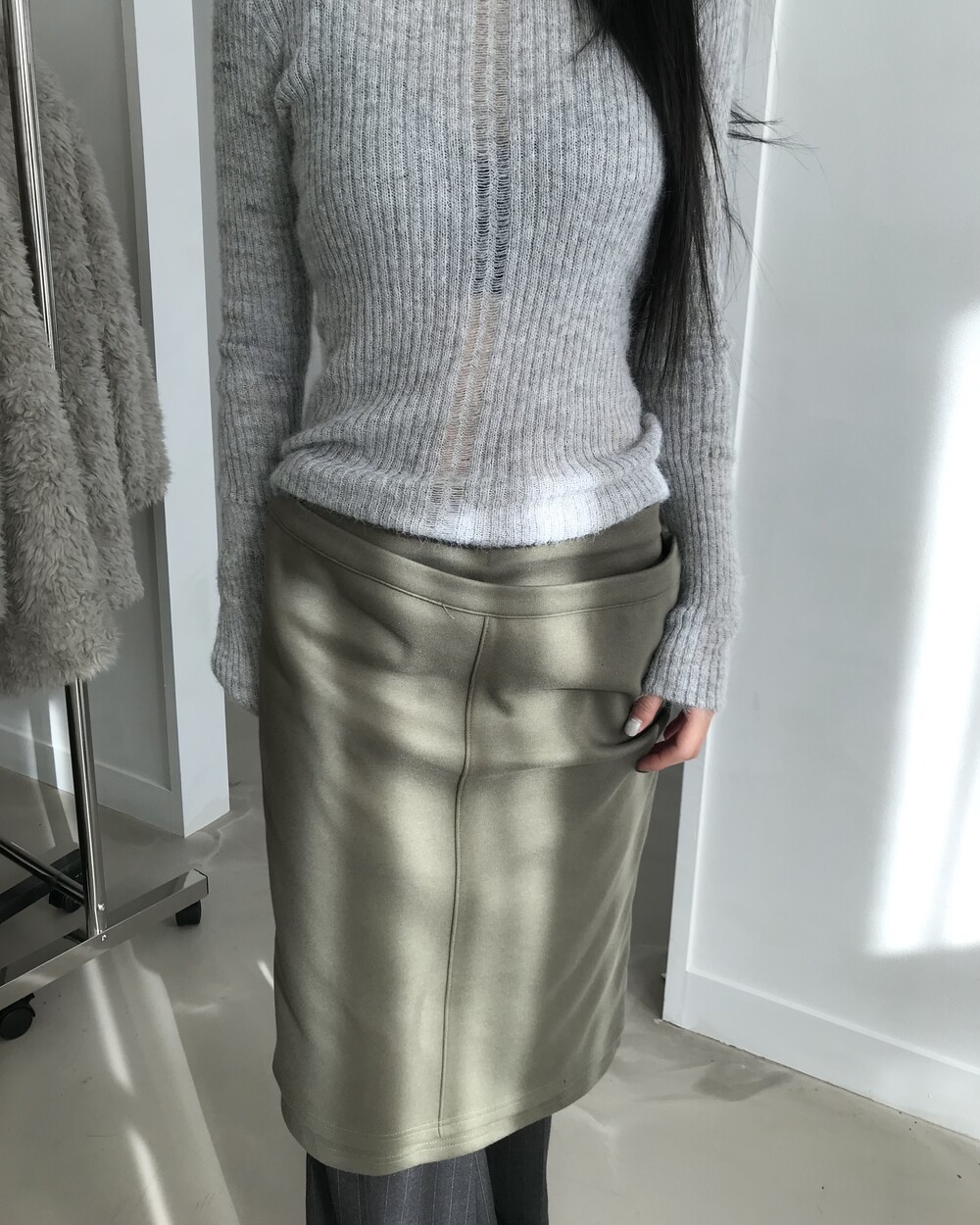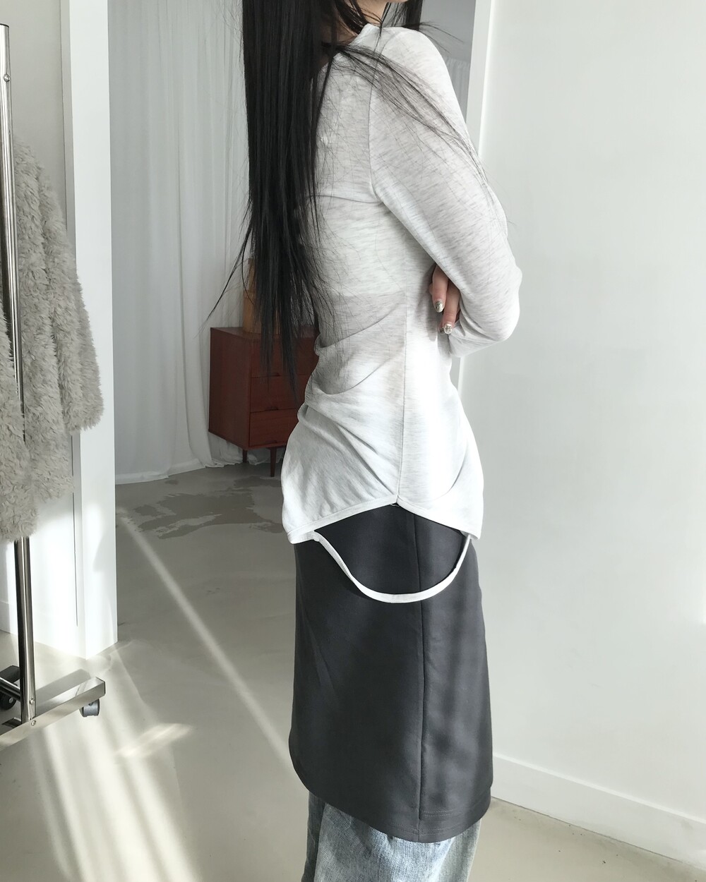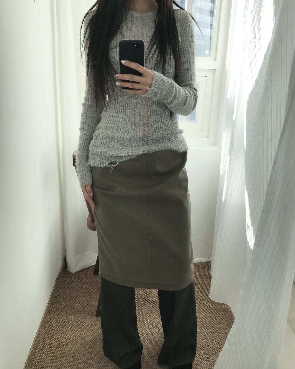 -프론트 입체적인 레이어드 디테일의 미디 스커트