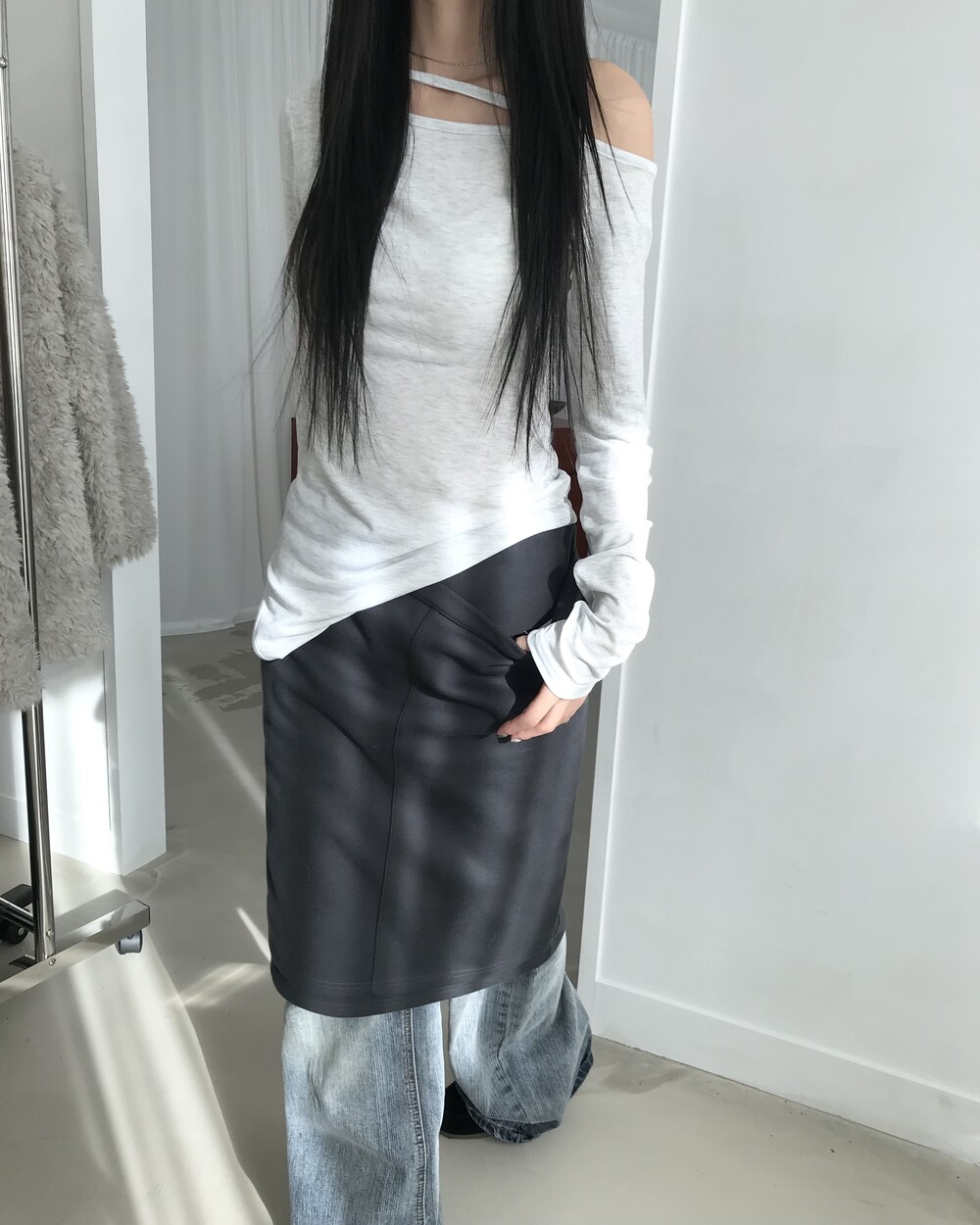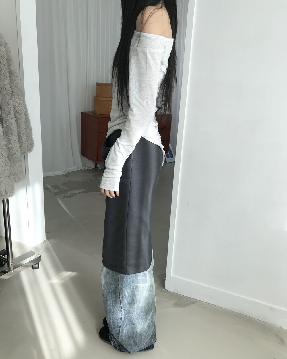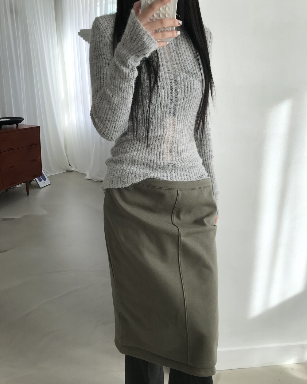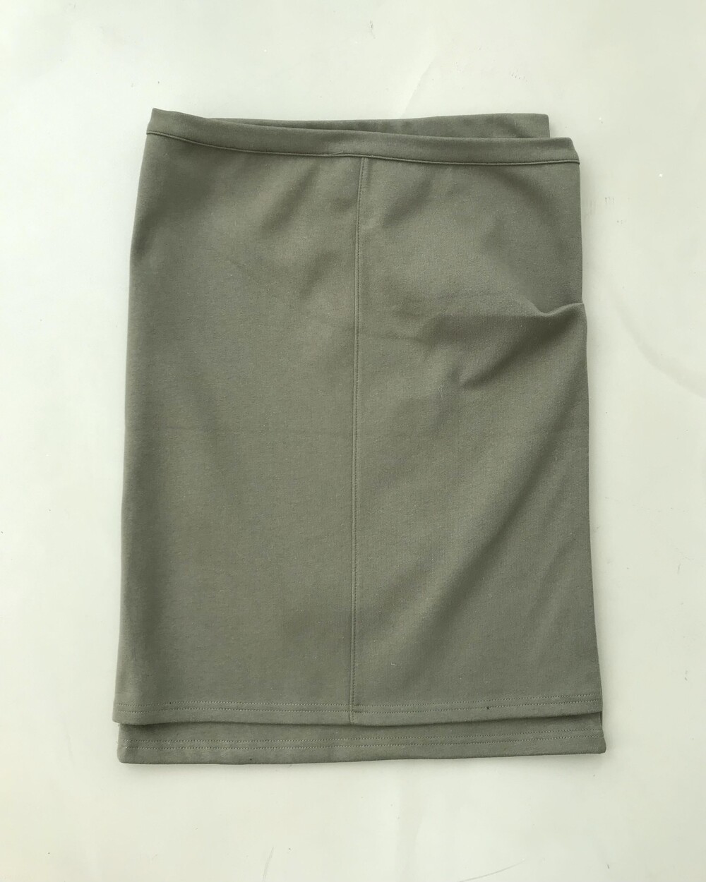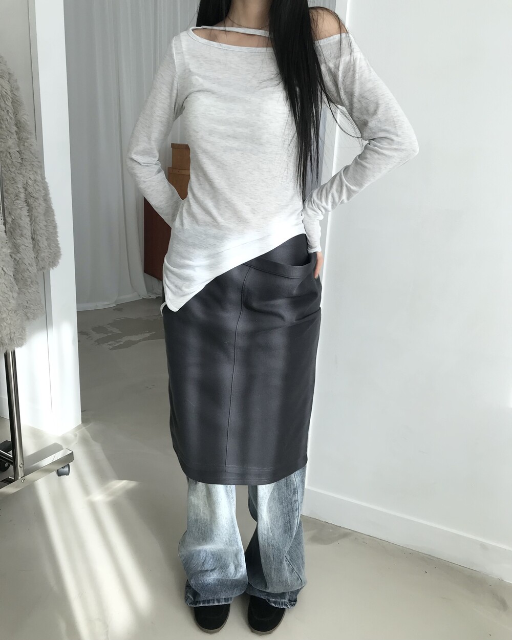 -프론트 입체적인 레이어드 디테일의 미디 스커트