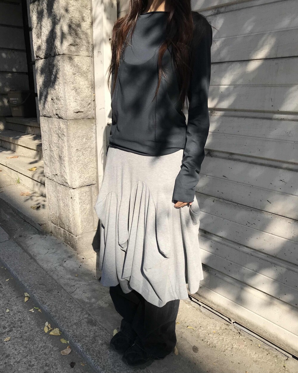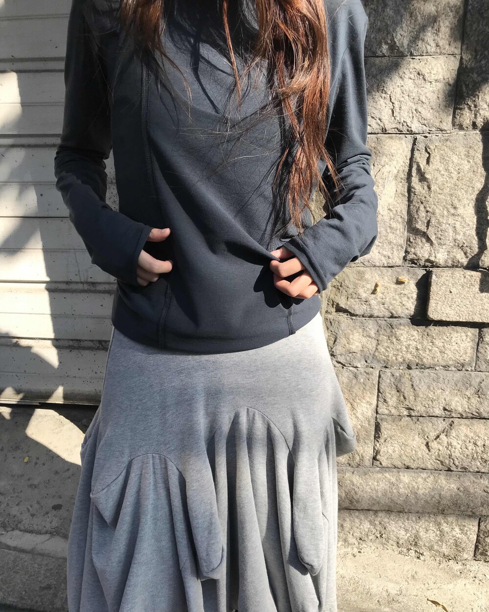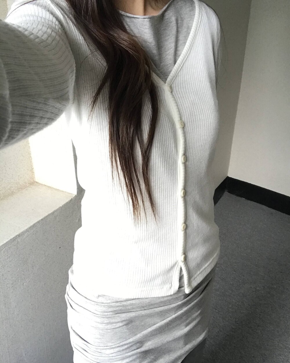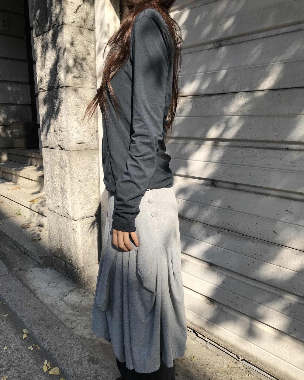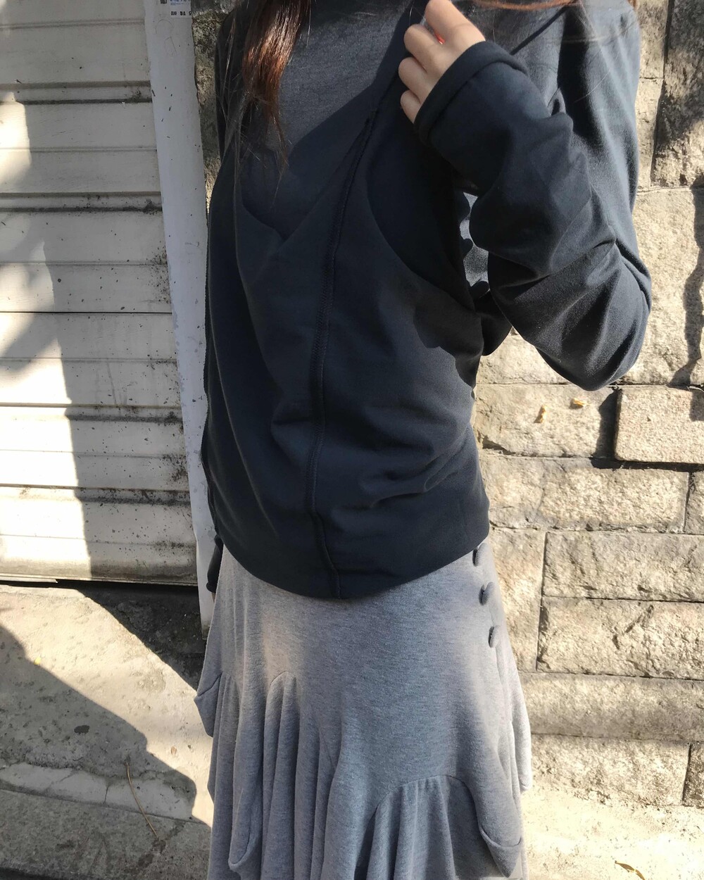 -소재는 얇은 편으로 가벼운 착용감을 주며, 내추럴한 커팅 마감이 더해진 디자인
