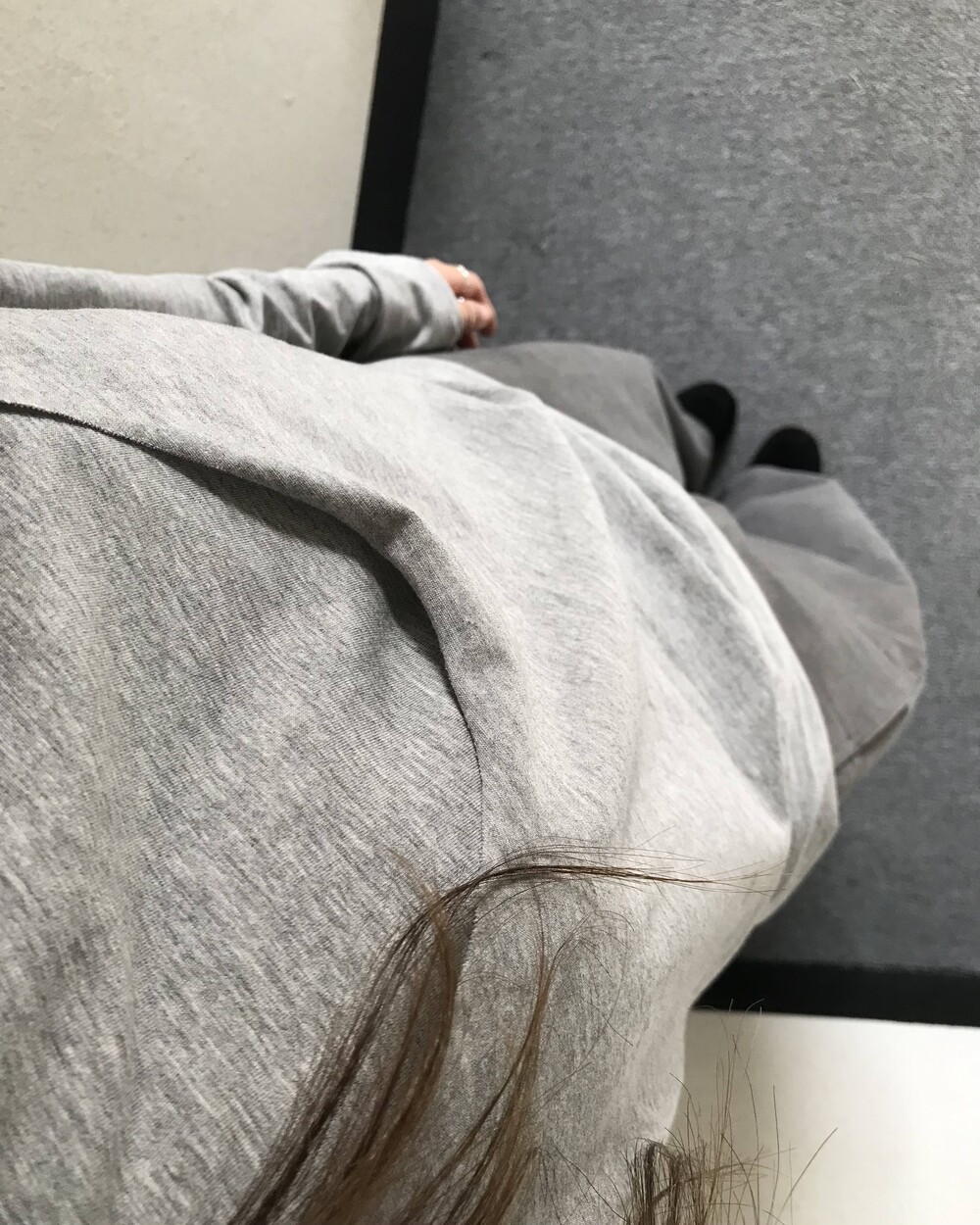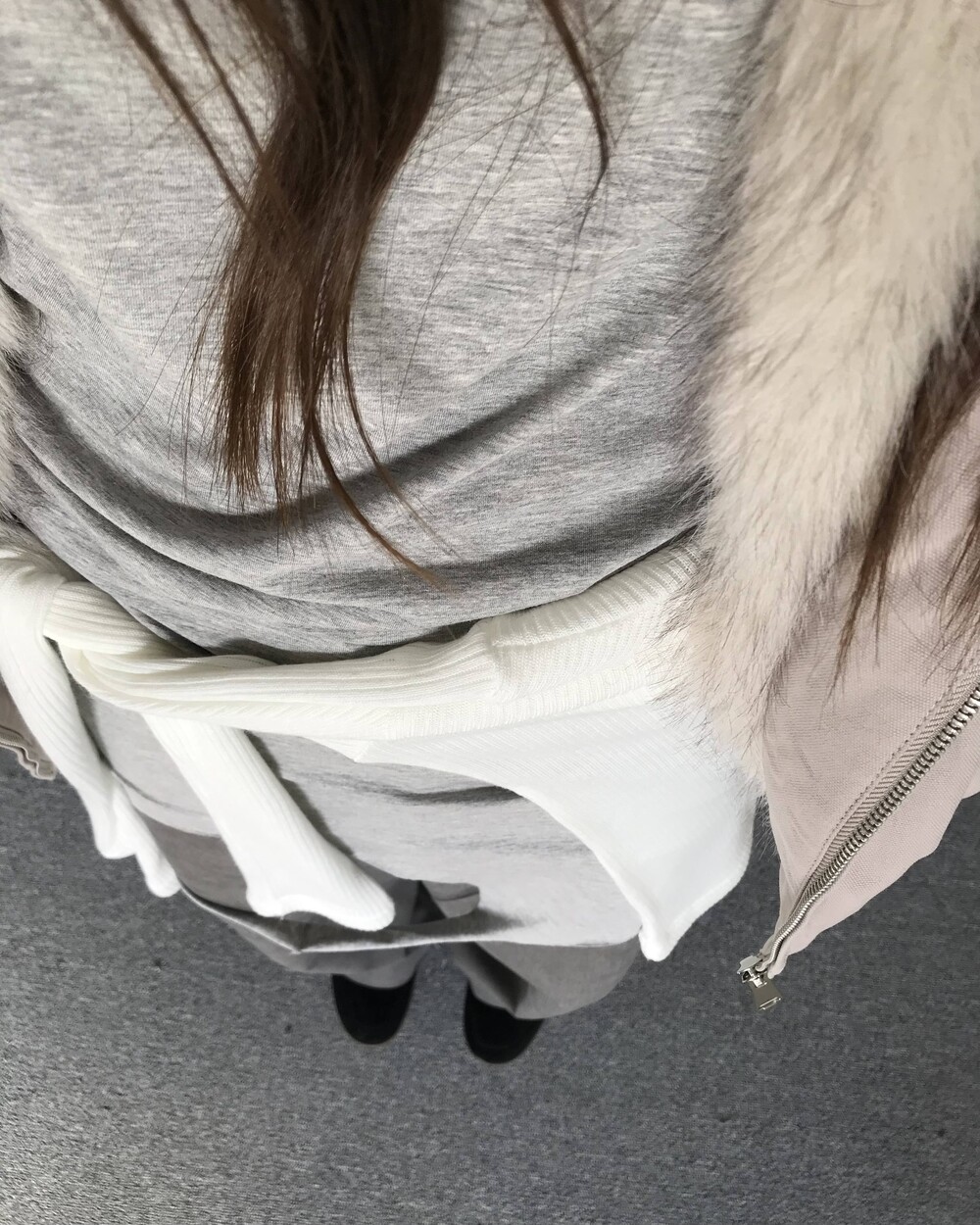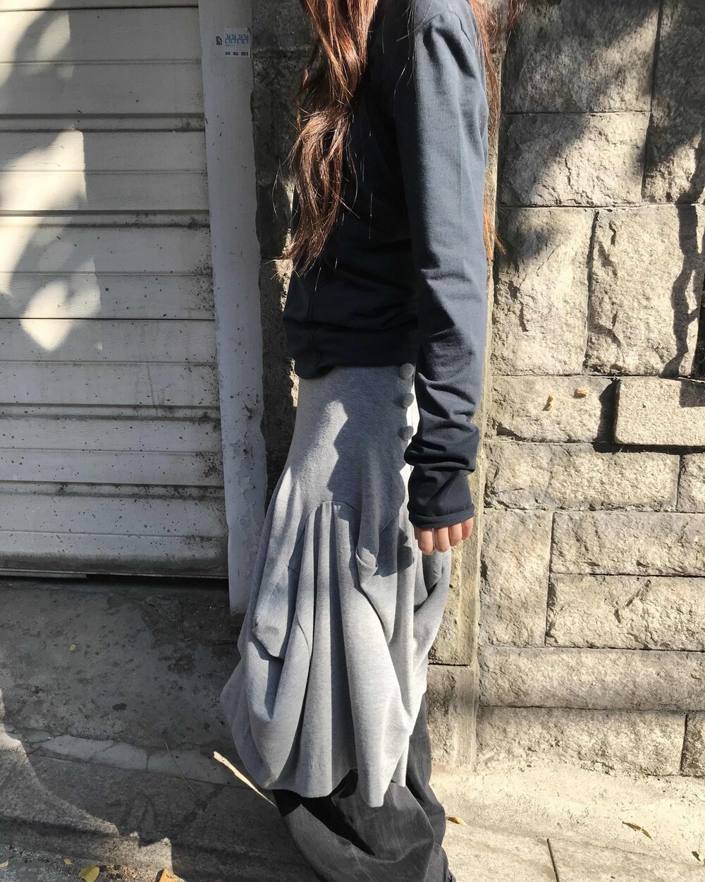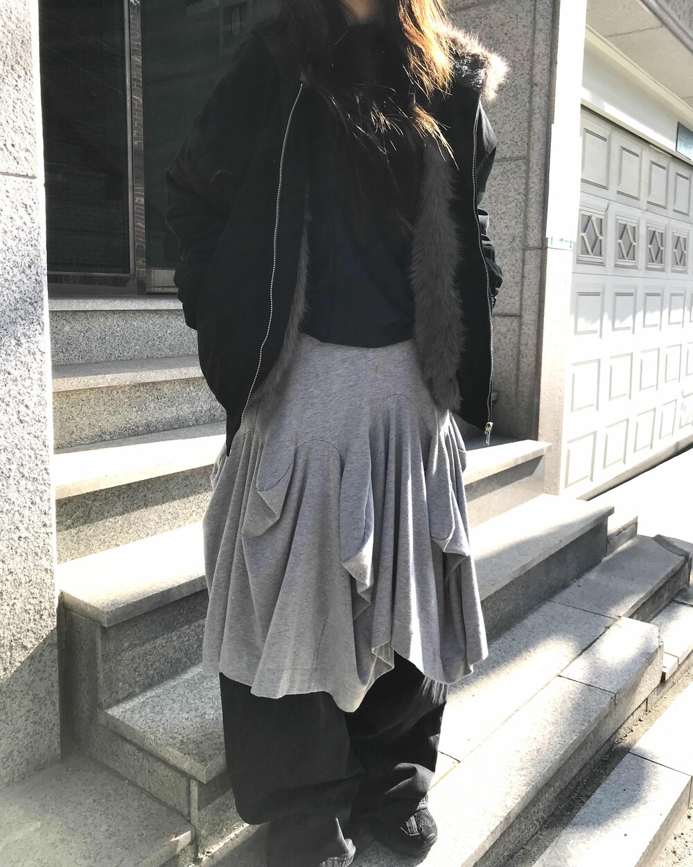 -소재는 얇은 편으로 가벼운 착용감을 주며, 내추럴한 커팅 마감이 더해진 디자인
