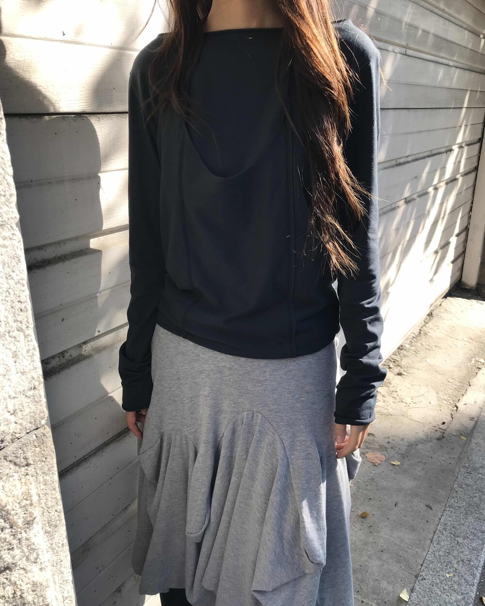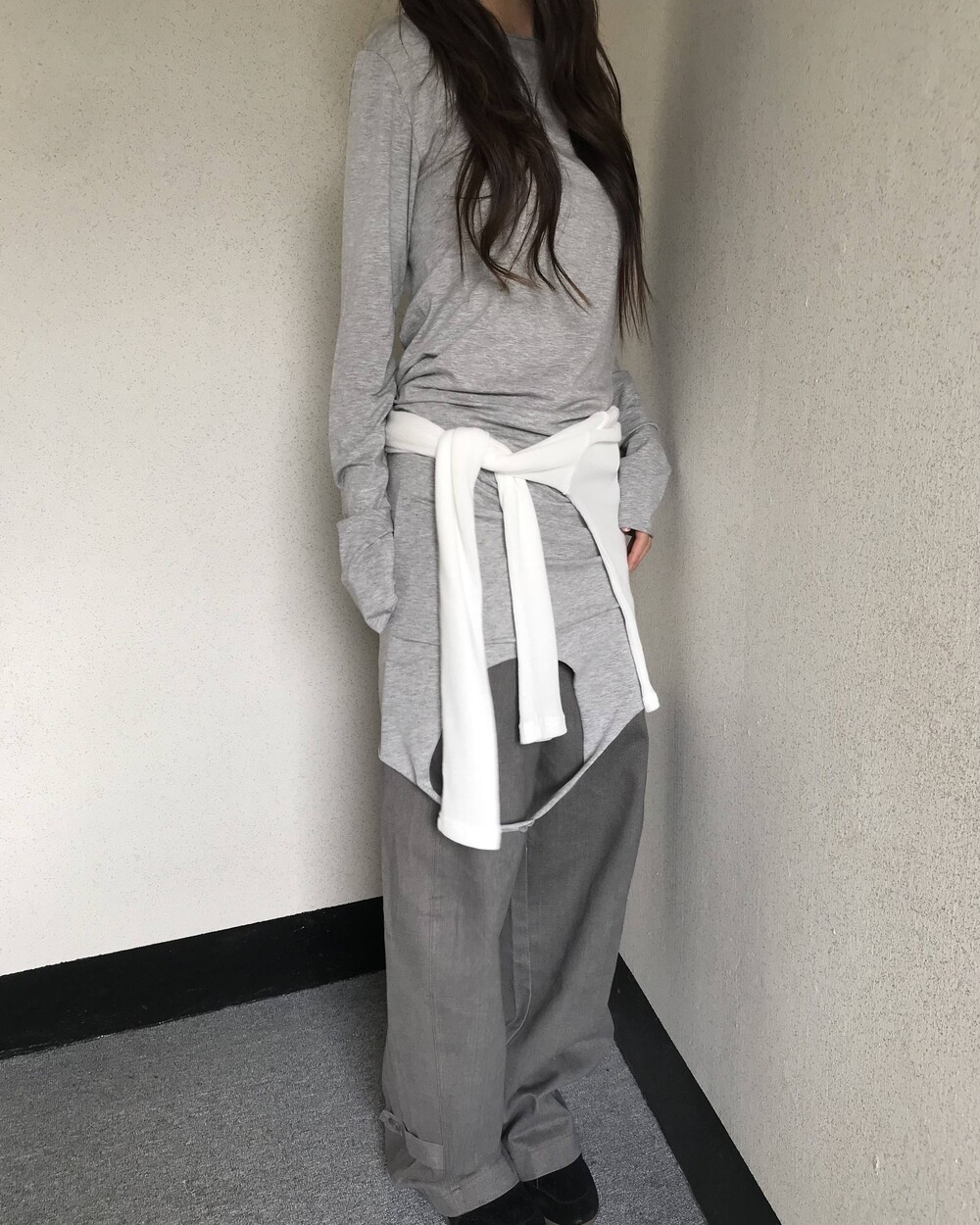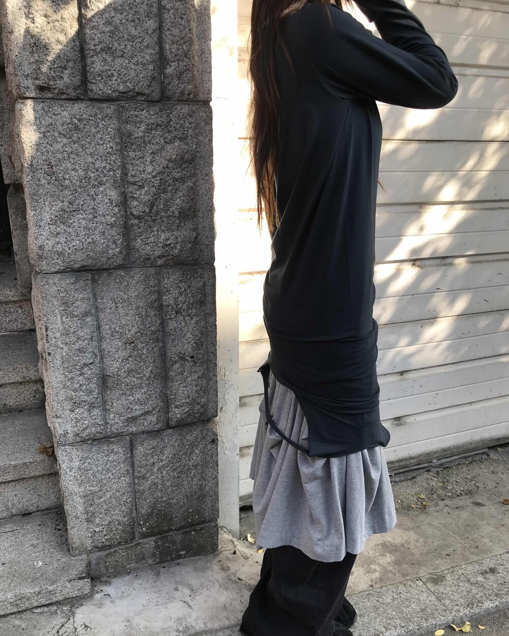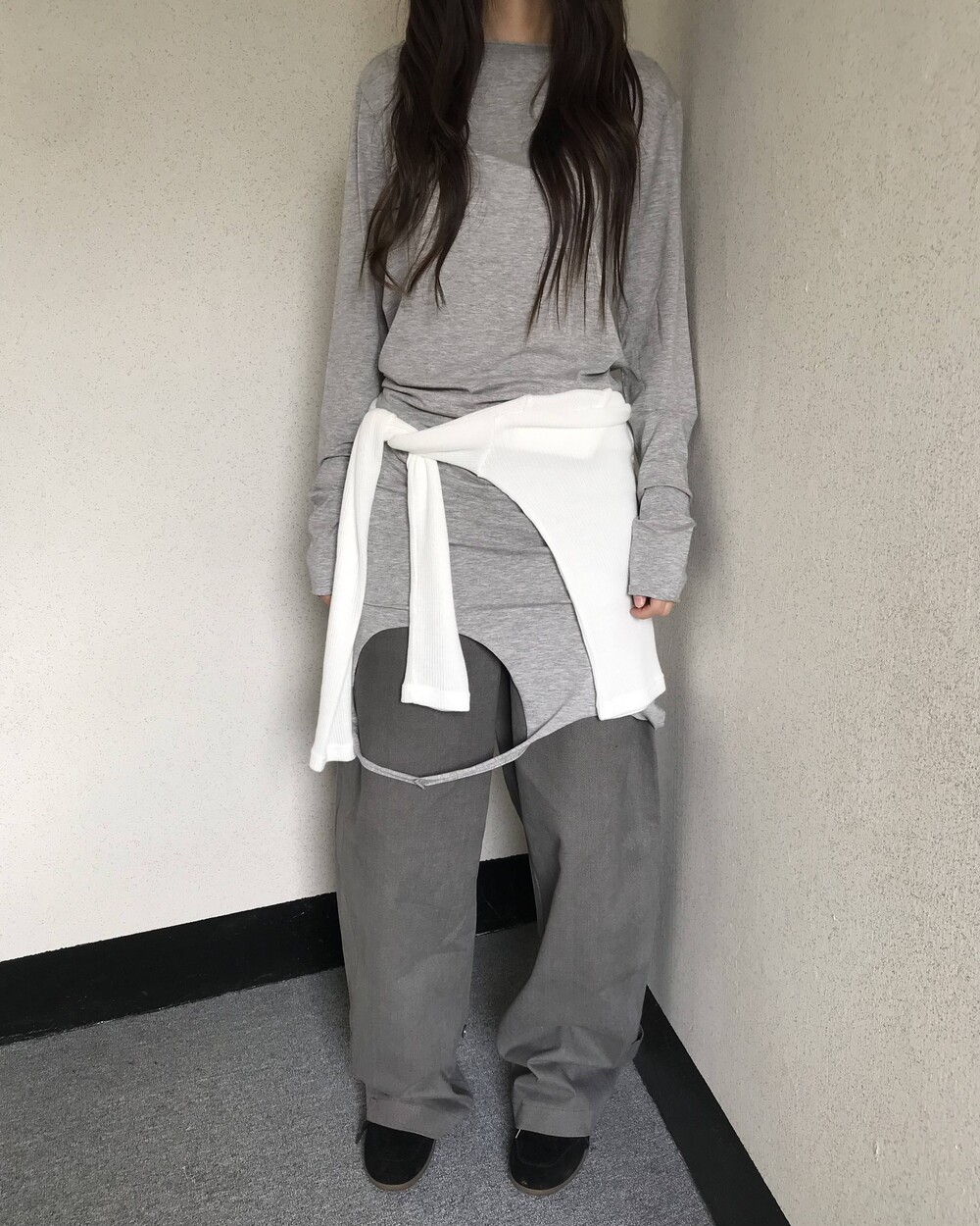 -길게 착용 시 밑단 넥 스트랩 디테일이 드러나 포인트가 되며, 목에 넣어 착용하면 레이어드 티처럼 연출 가능한 투웨이 스타일