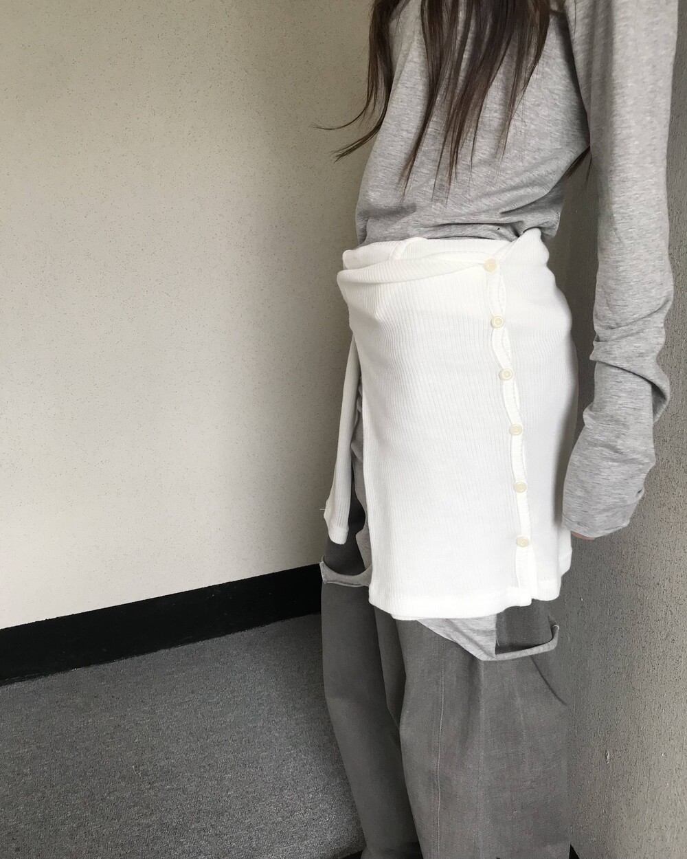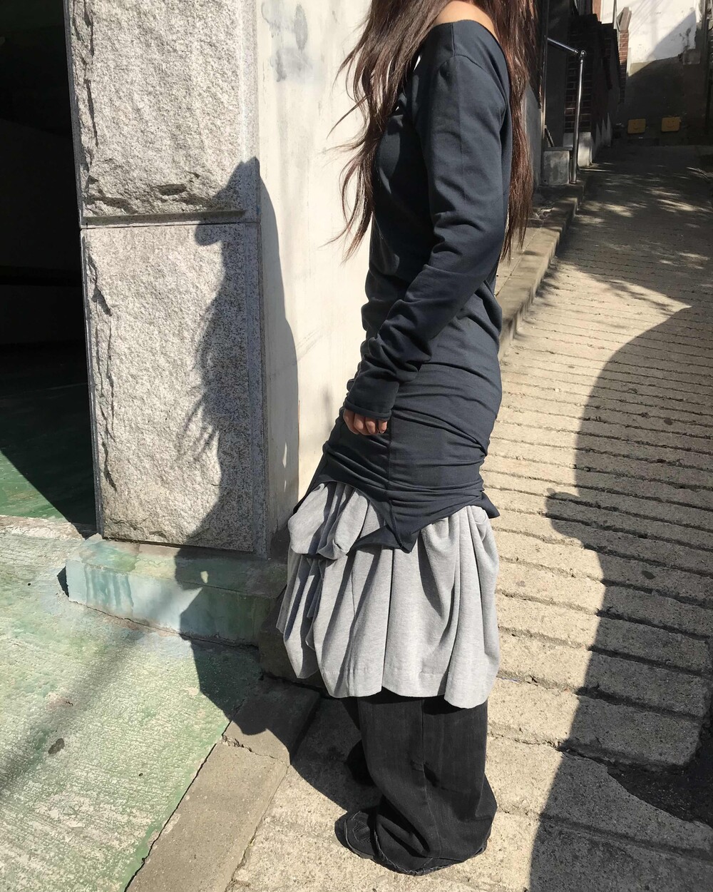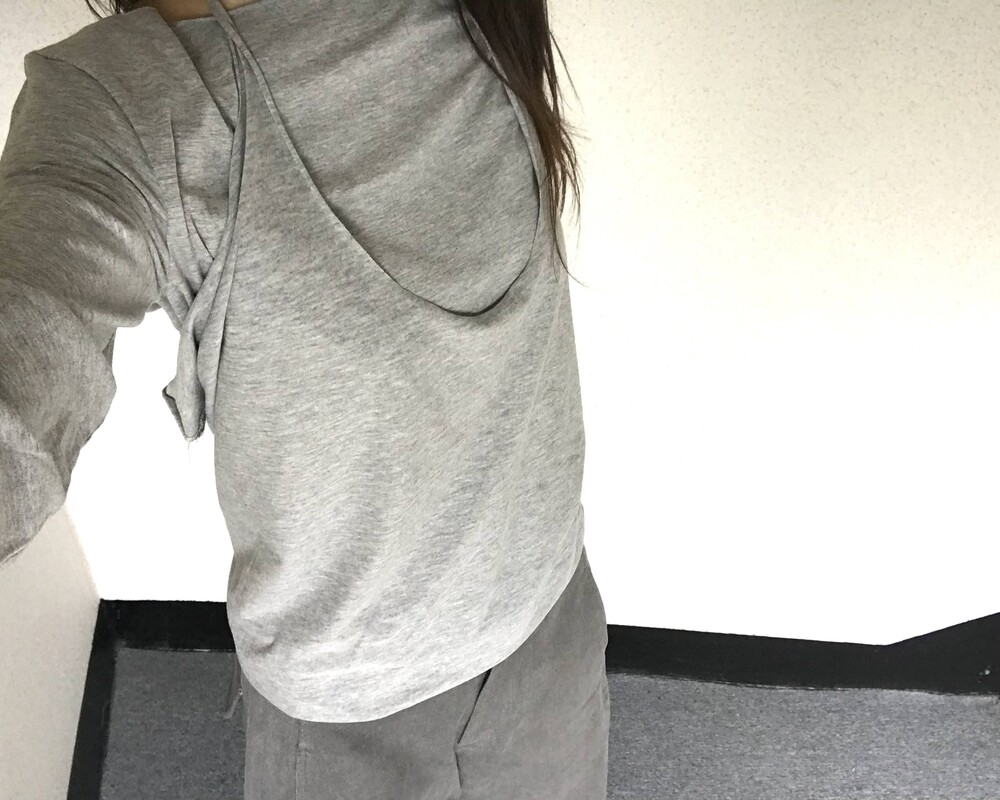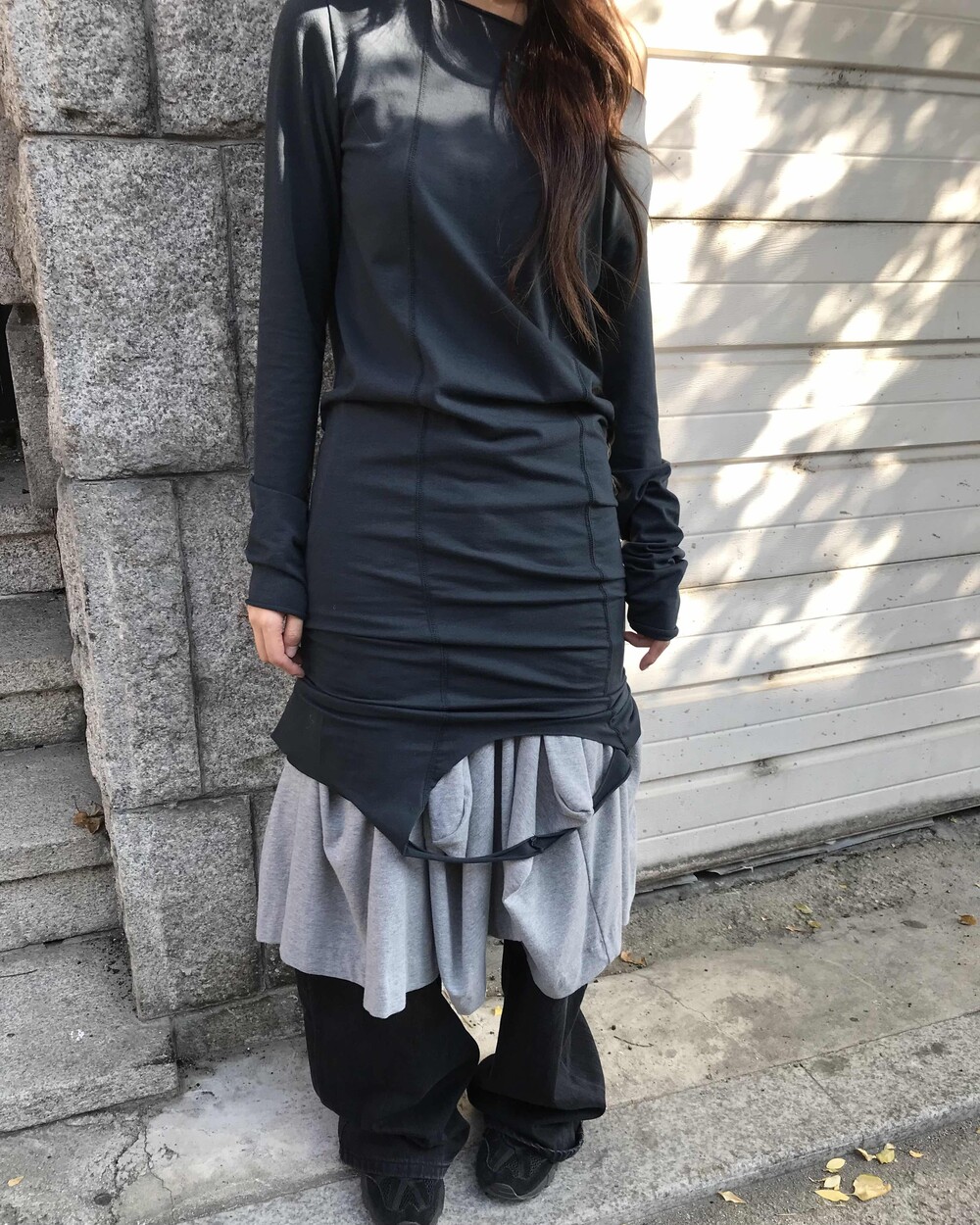-길게 착용 시 밑단 넥 스트랩 디테일이 드러나 포인트가 되며, 목에 넣어 착용하면 레이어드 티처럼 연출 가능한 투웨이 스타일