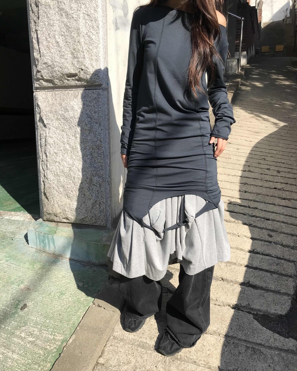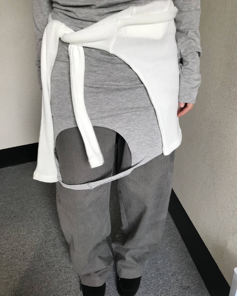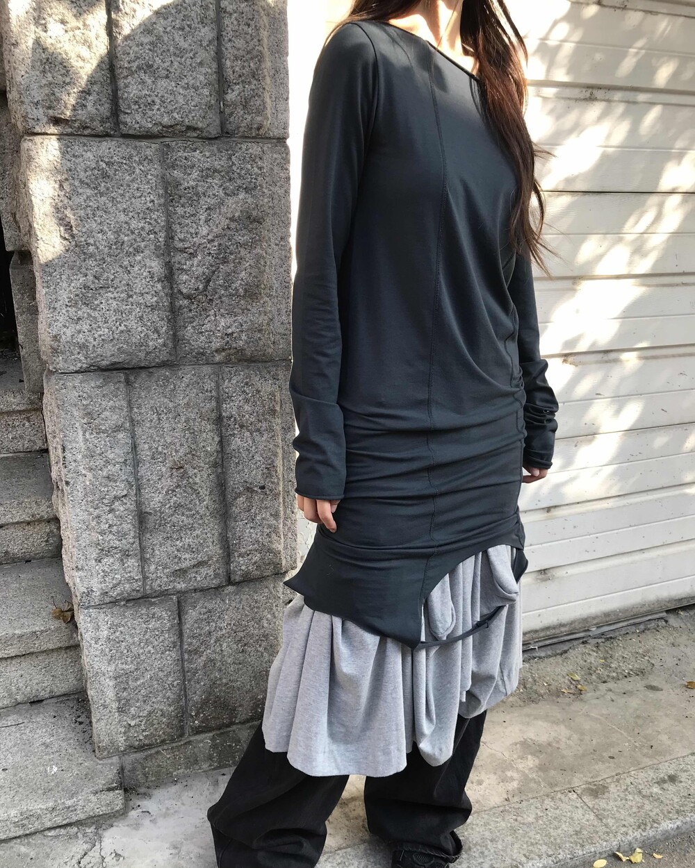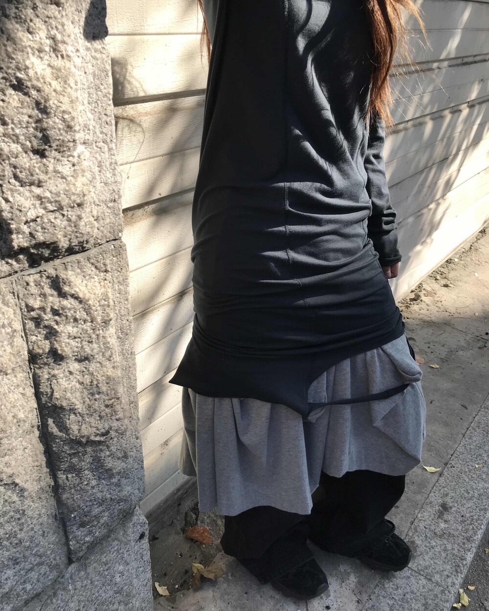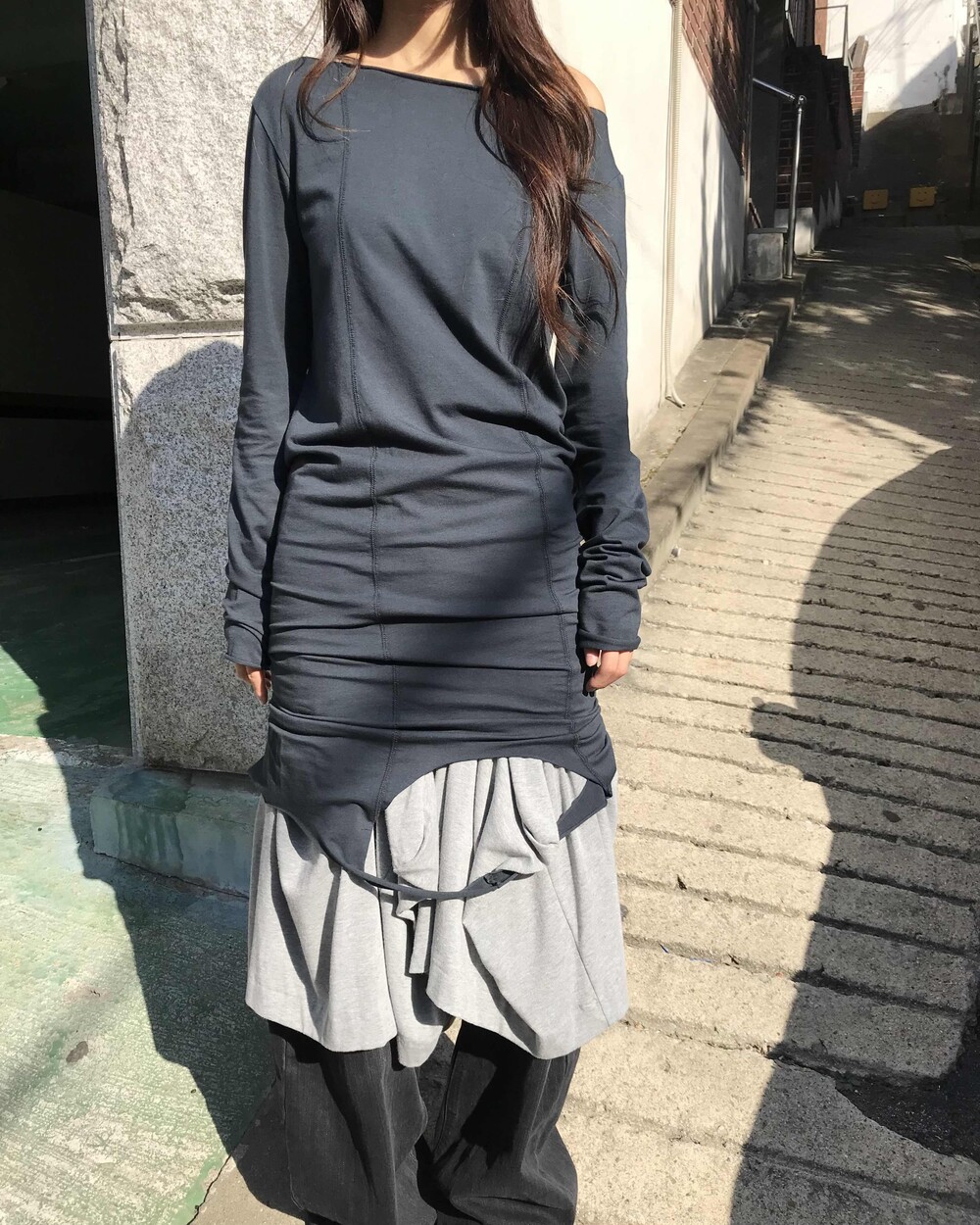 -길게 착용 시 밑단 넥 스트랩 디테일이 드러나 포인트가 되며, 목에 넣어 착용하면 레이어드 티처럼 연출 가능한 투웨이 스타일