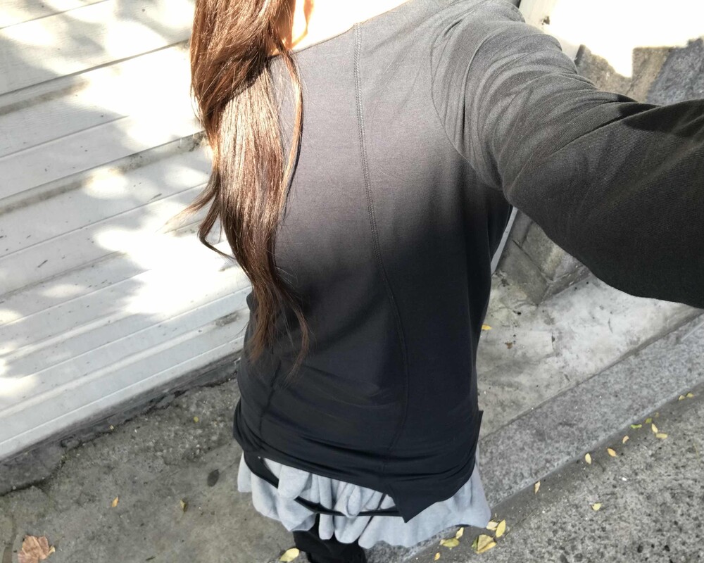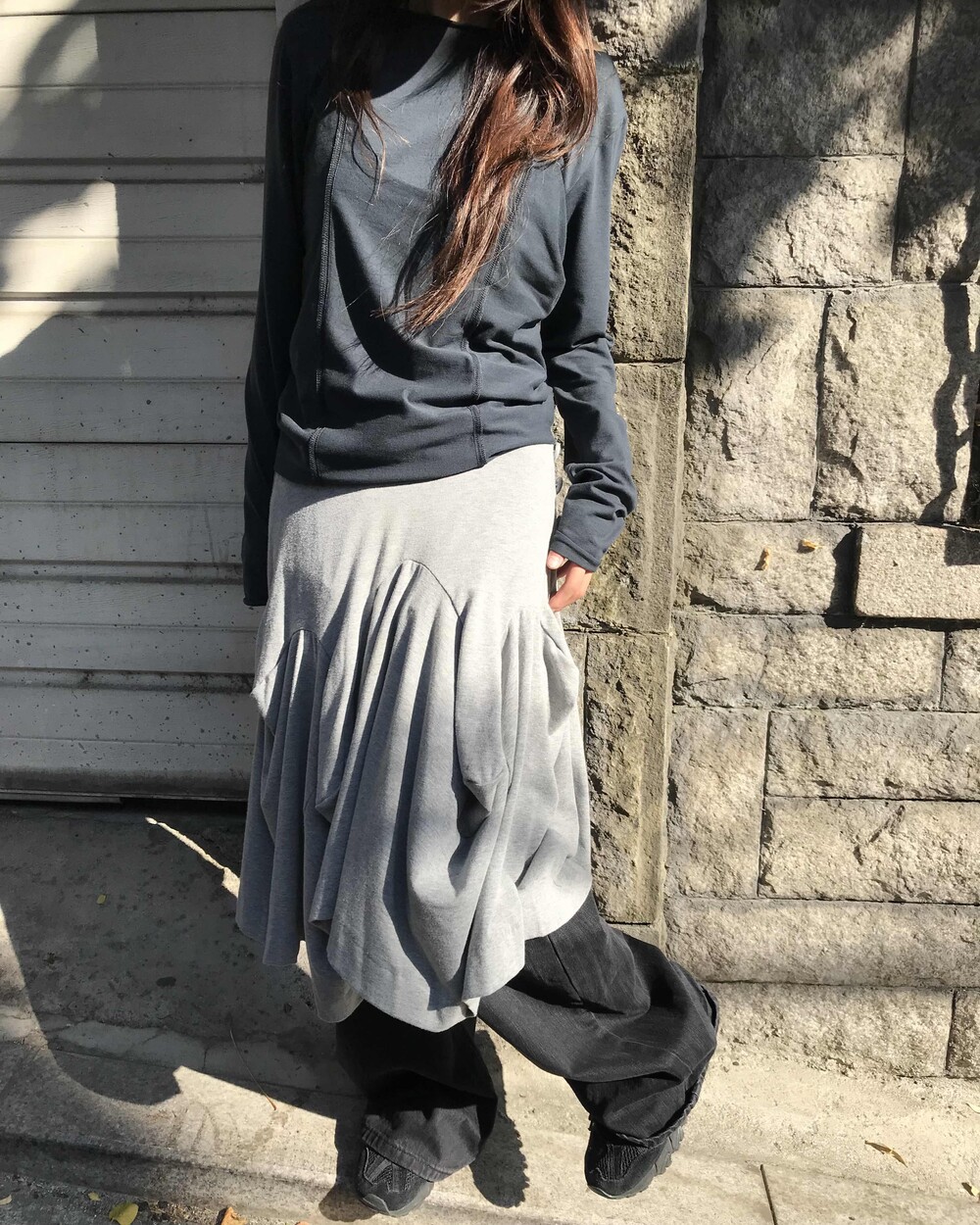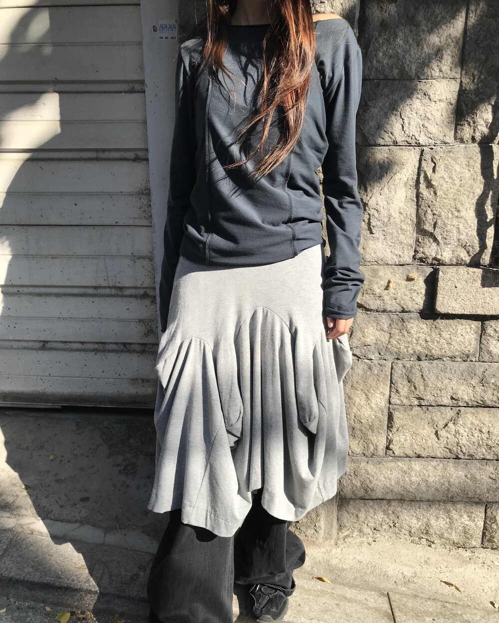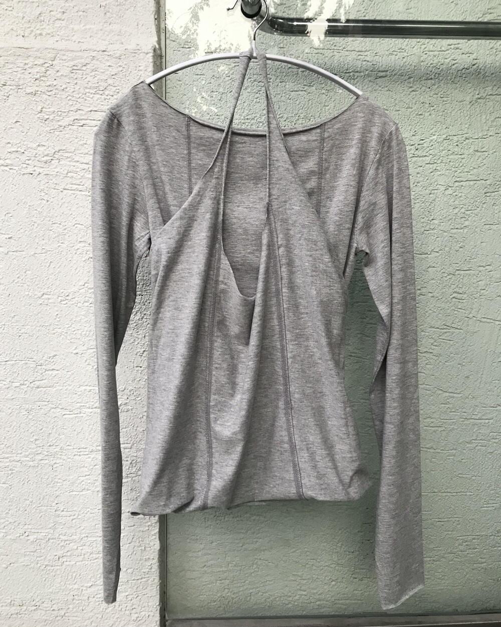 -길게 착용 시 밑단 넥 스트랩 디테일이 드러나 포인트가 되며, 목에 넣어 착용하면 레이어드 티처럼 연출 가능한 투웨이 스타일