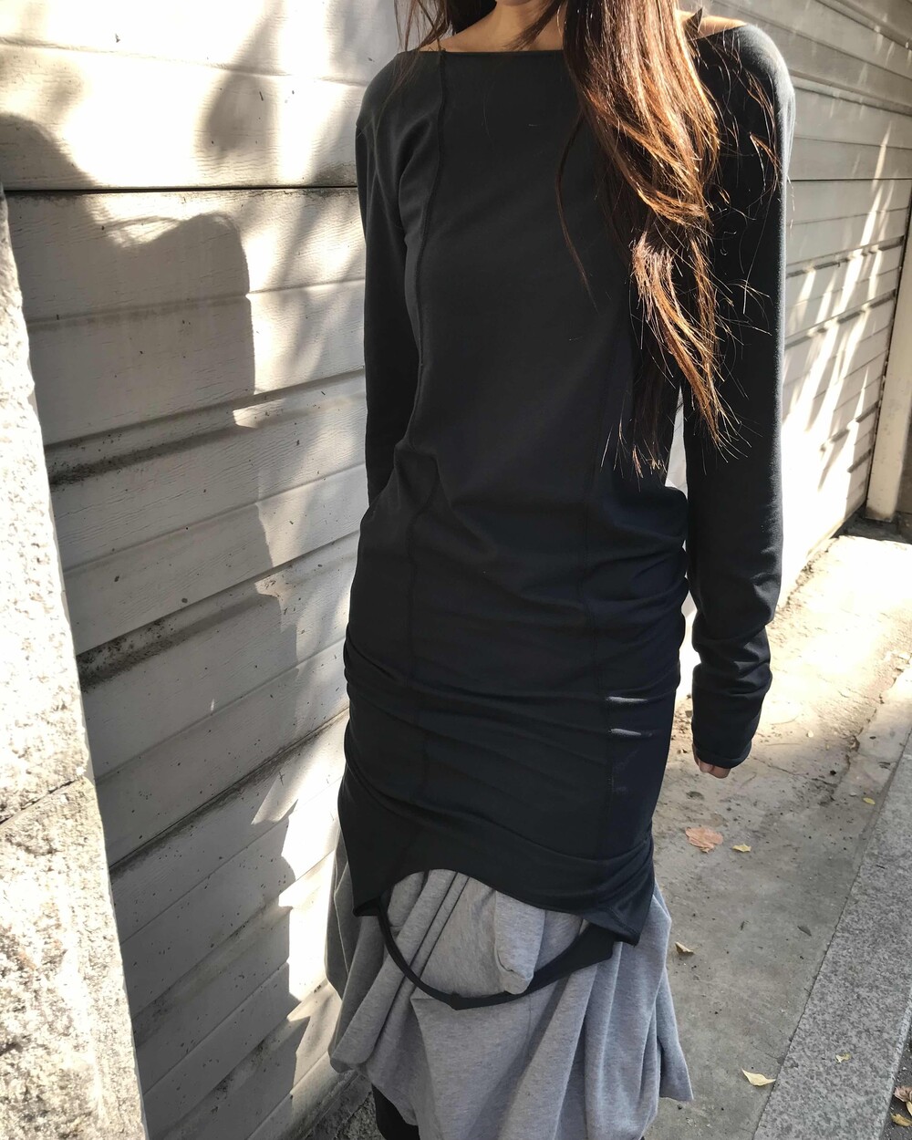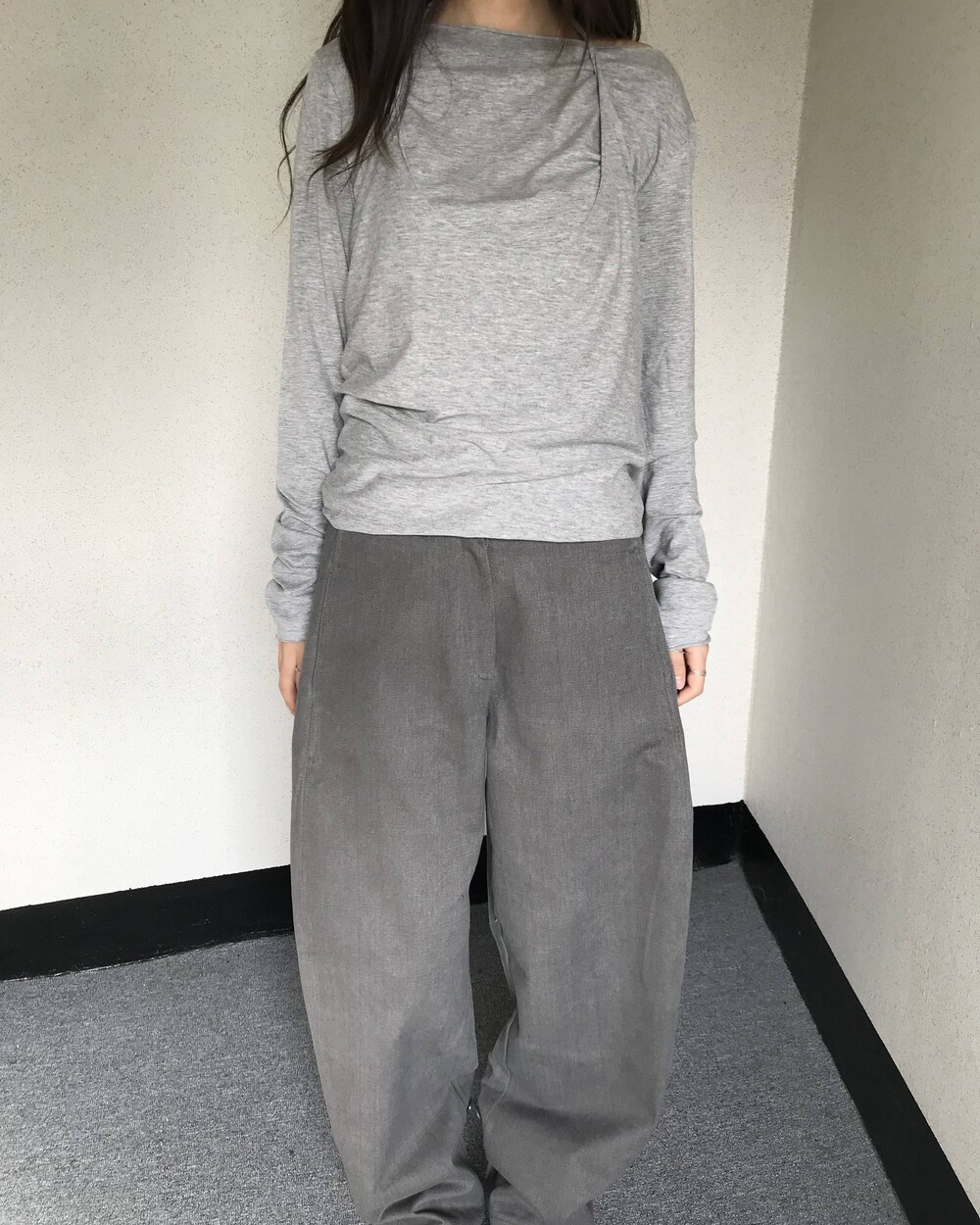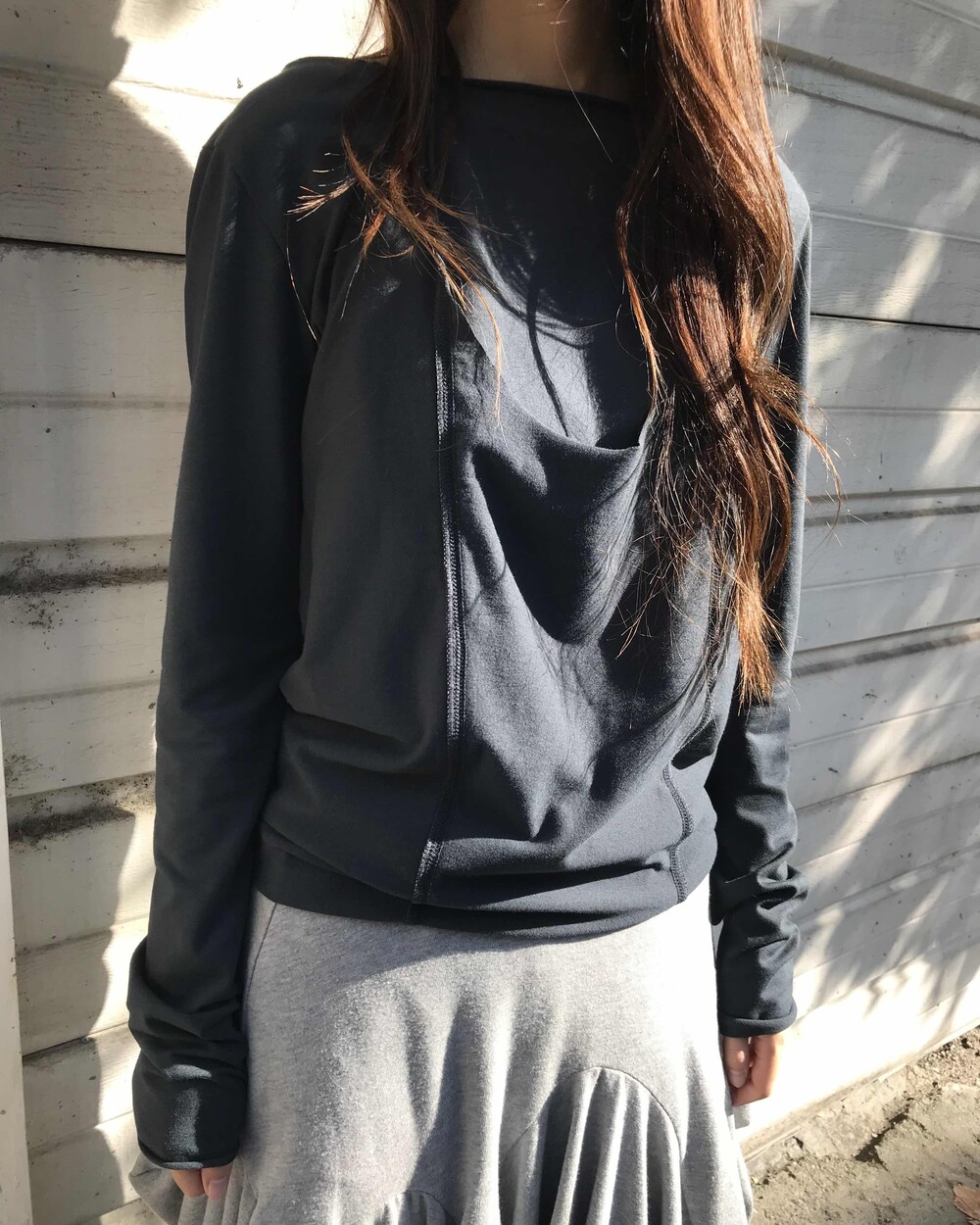 -보트넥라인으로 목선이 자연스럽게 드러나는 롱 슬리브티