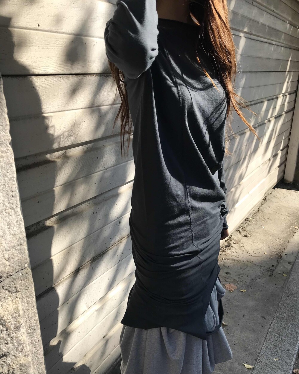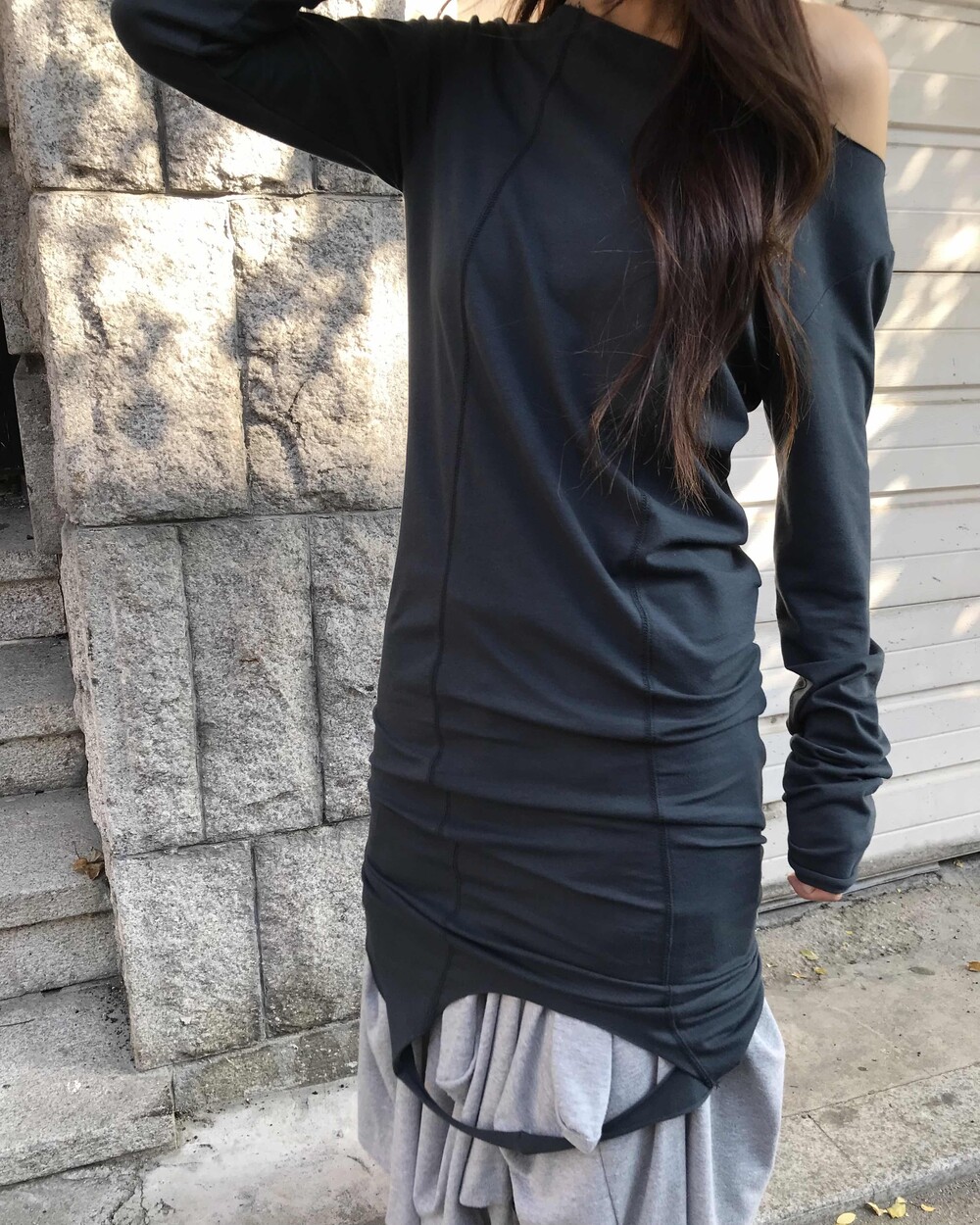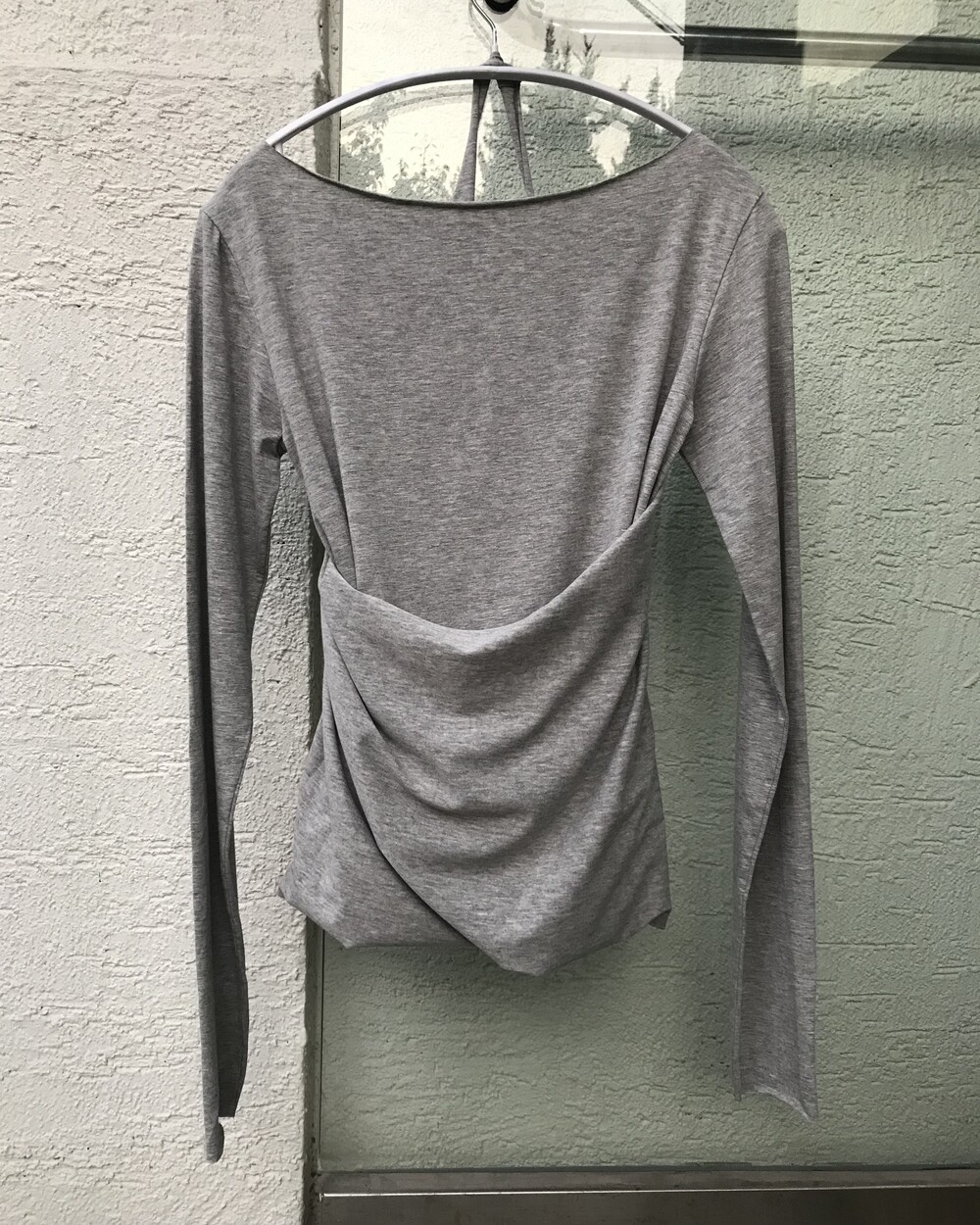 -보트넥라인으로 목선이 자연스럽게 드러나는 롱 슬리브티