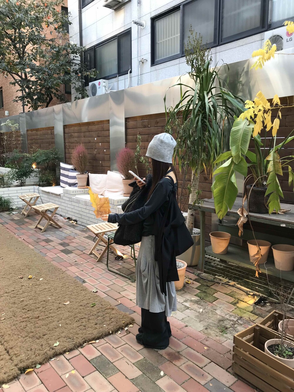 어깨40 가슴42 소매기장66.5 소매단9.5 암홀19.5 밑단42.5 총장102.5(밑단 스트랩제외) (단면 cm)