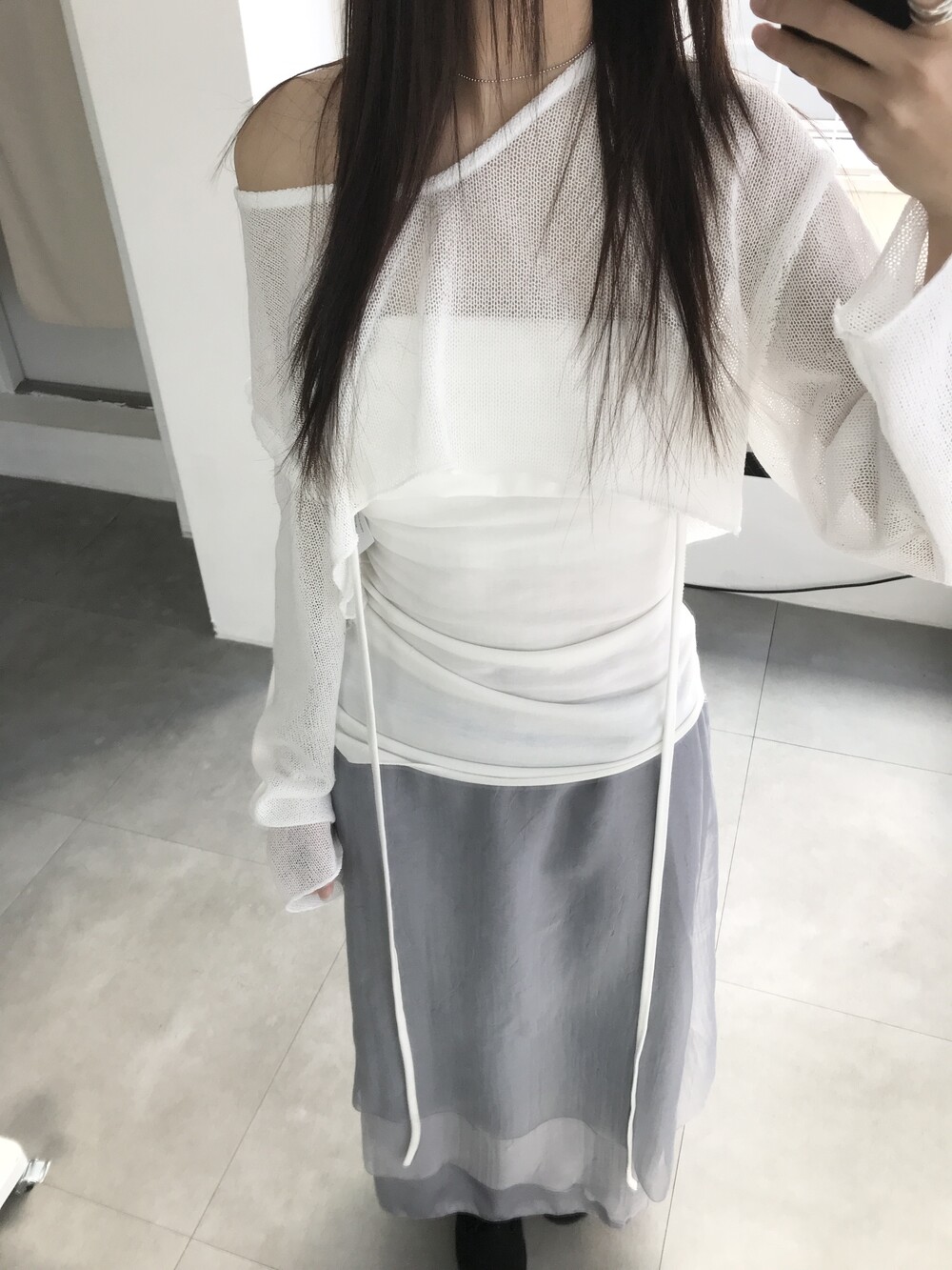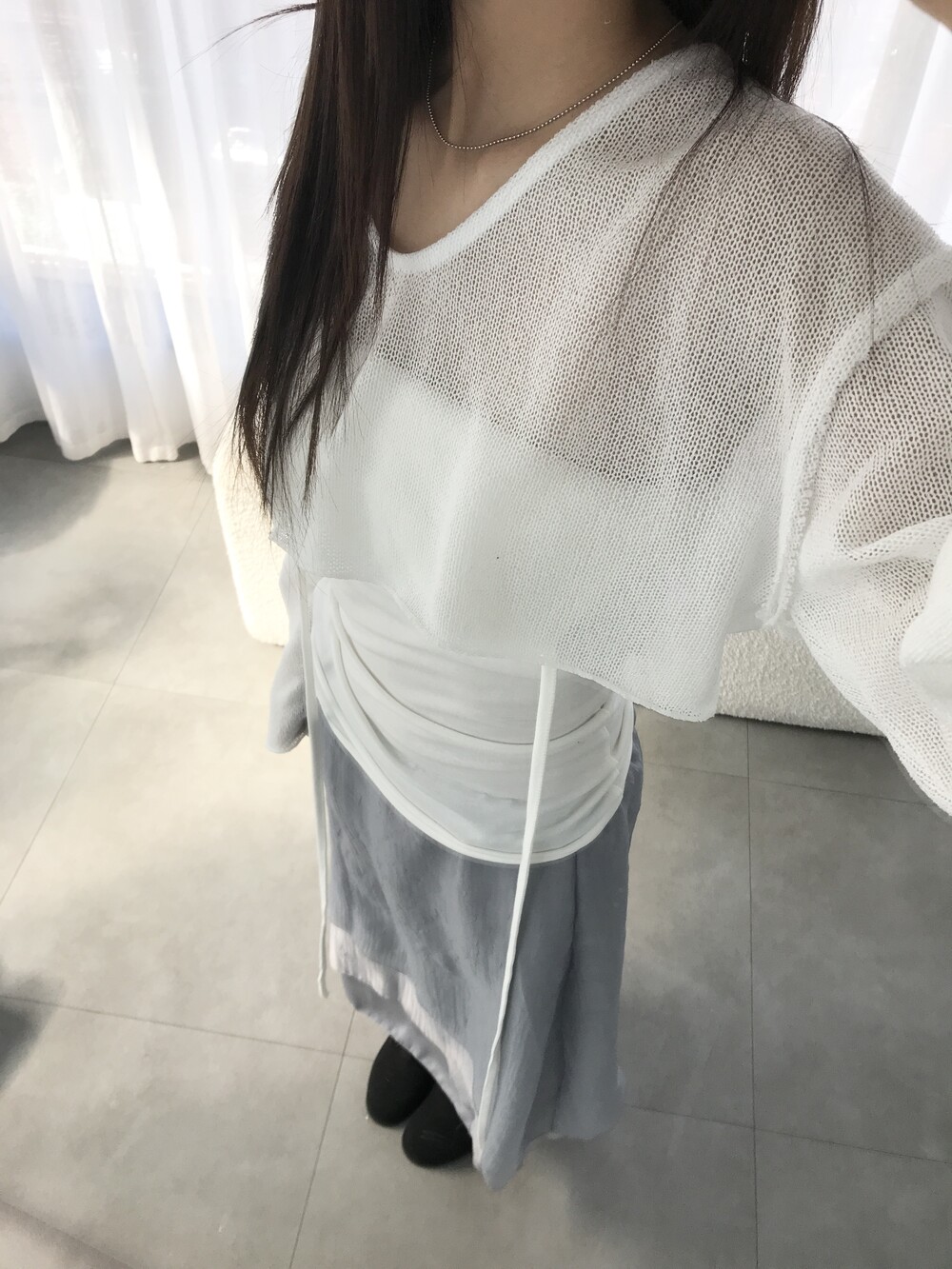 가슴34 밑단38 총장(앞)67/55 총장(뒤)54/43.5 (단면 cm)