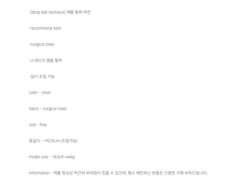 *악세사리 제품은 워터나 공기 중에 장시간 노출 시 변색이 진행될 수 있습니다.