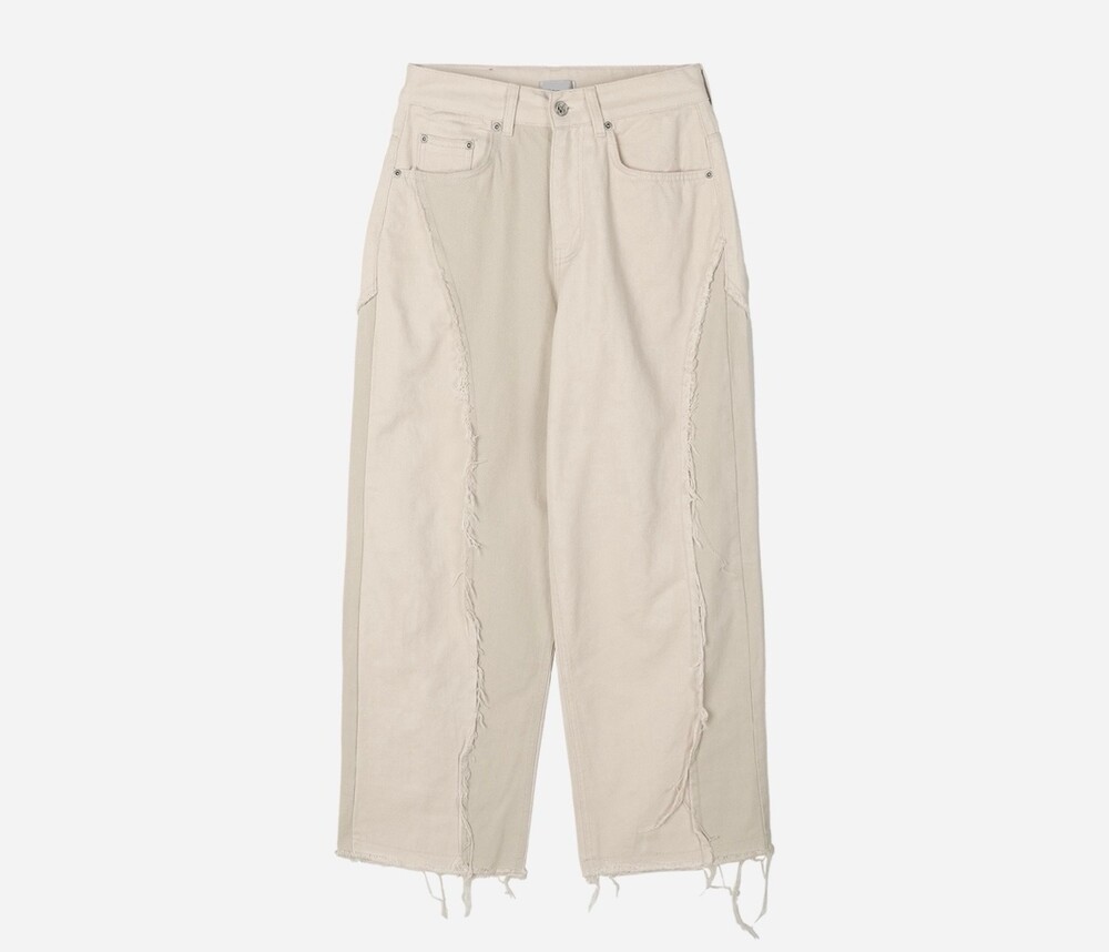 -2컬러로 언발란스하게 제작된 디자인의 와이드 팬츠