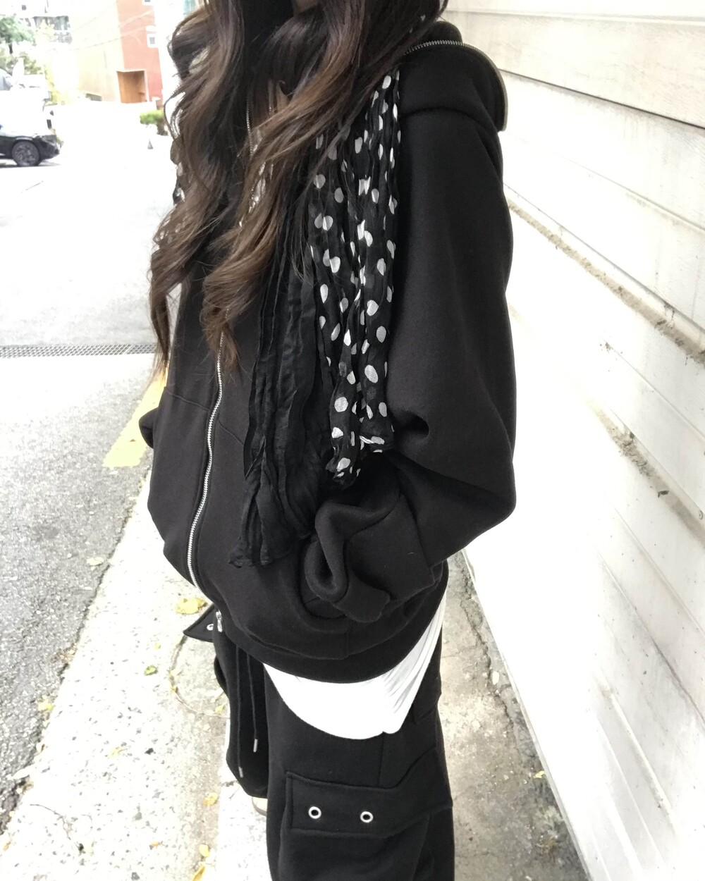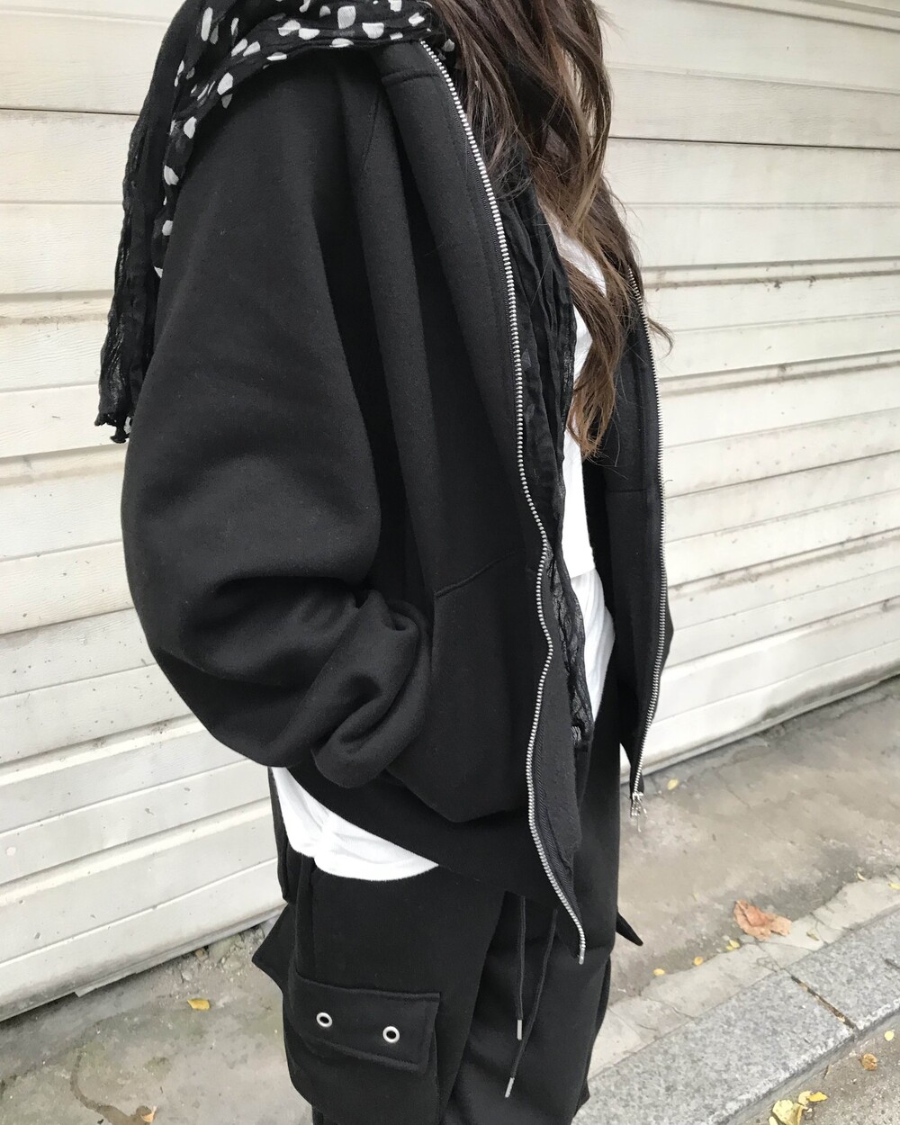 안쪽에 부드러운 기모가 더해진 오버핏의 후드집업 세트입니다.