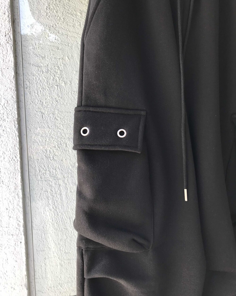 포켓 위에는 후드집업과 동일한 아일렛 디테일이 더해져