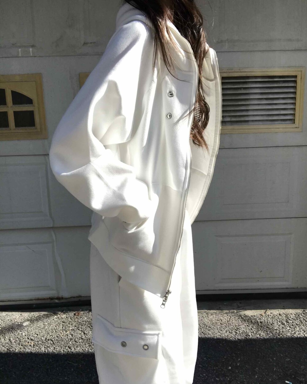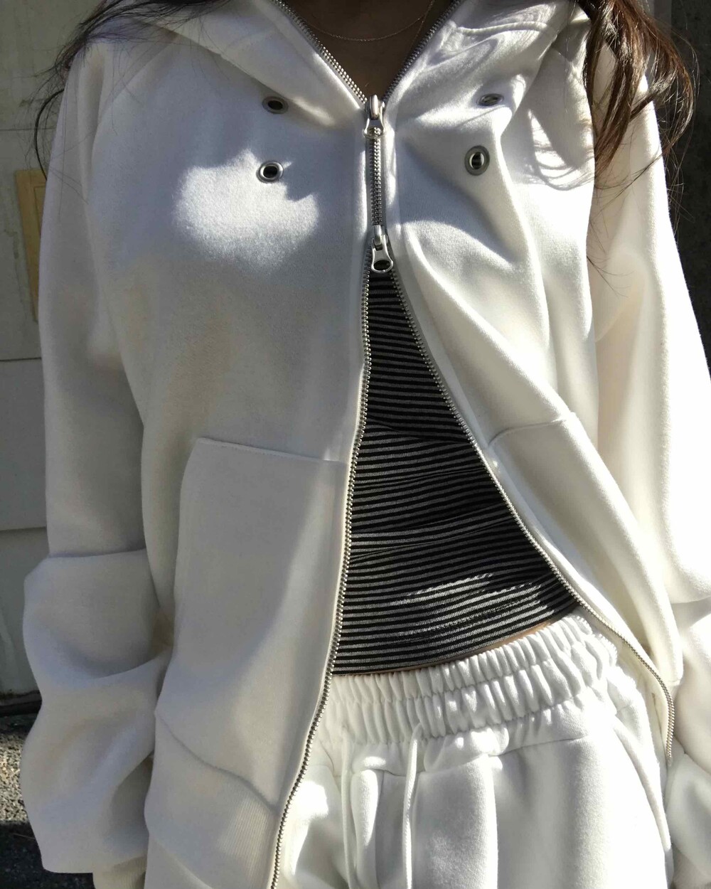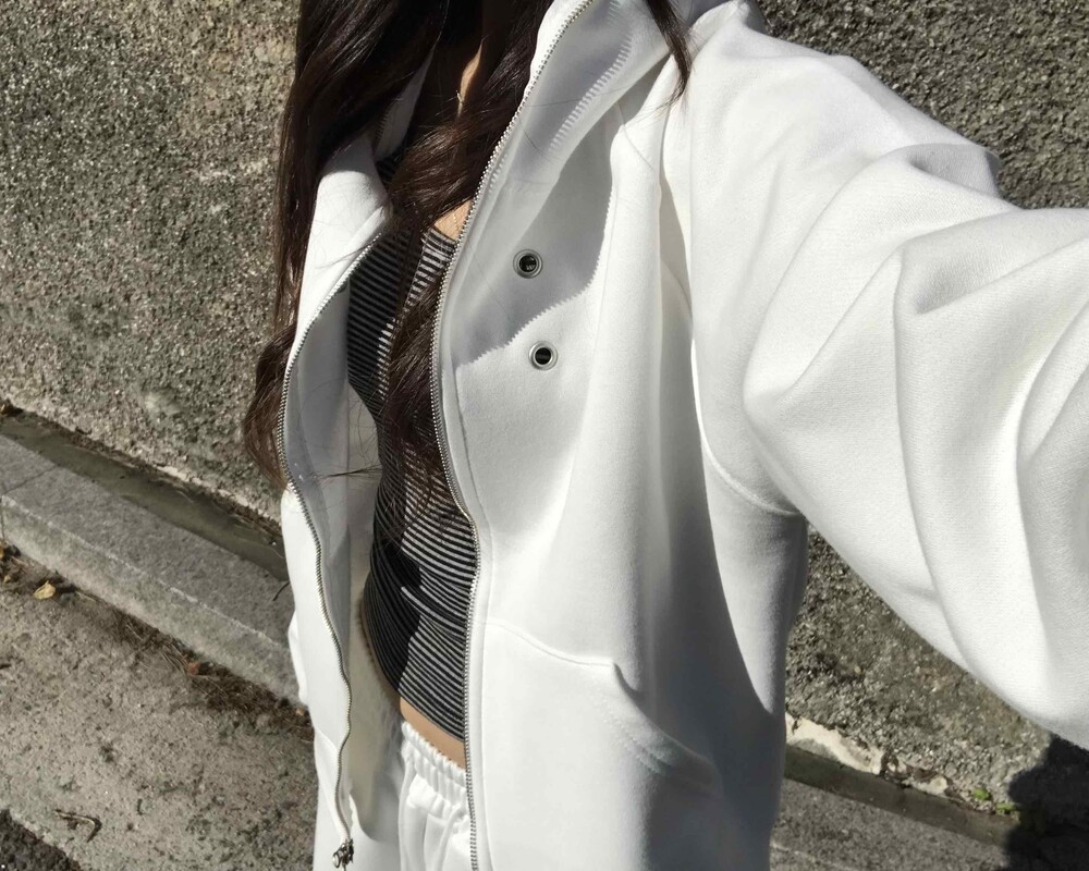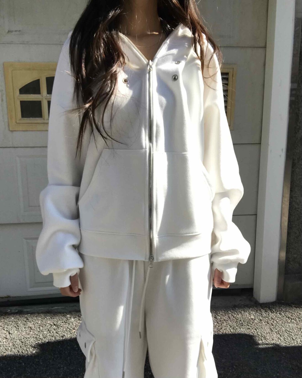 안쪽에 부드러운 기모가 더해진 오버핏의 후드집업 세트입니다.