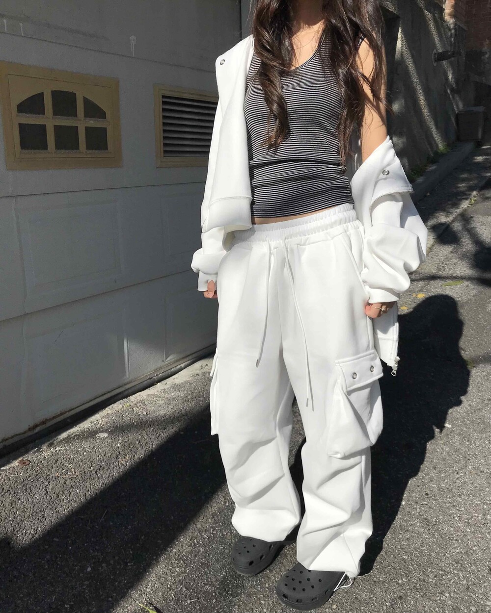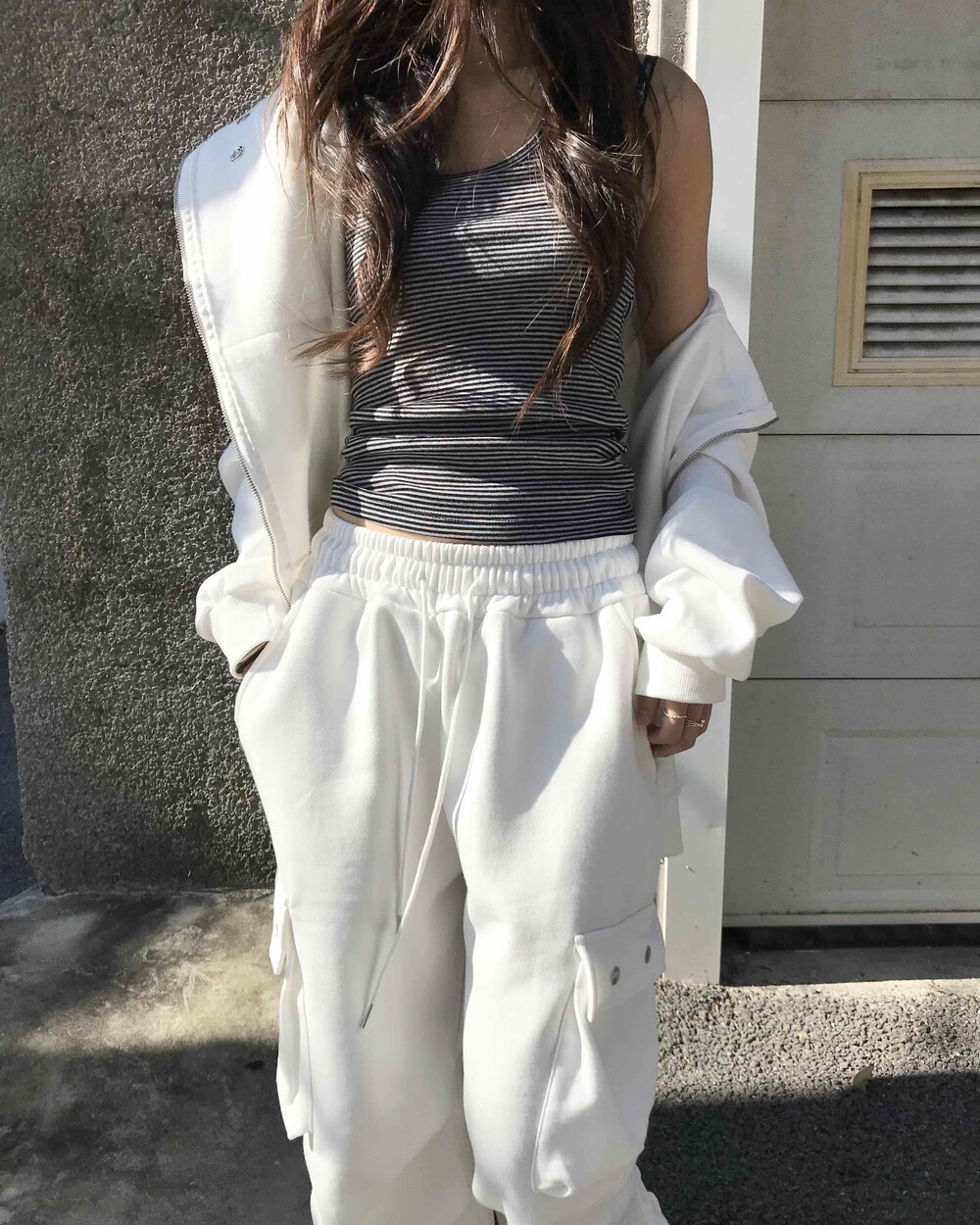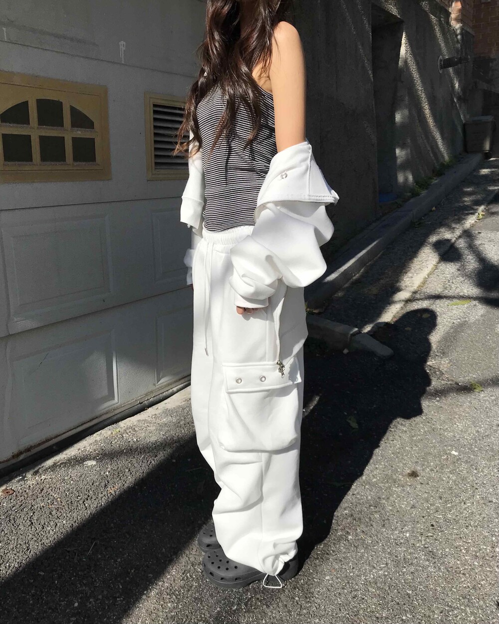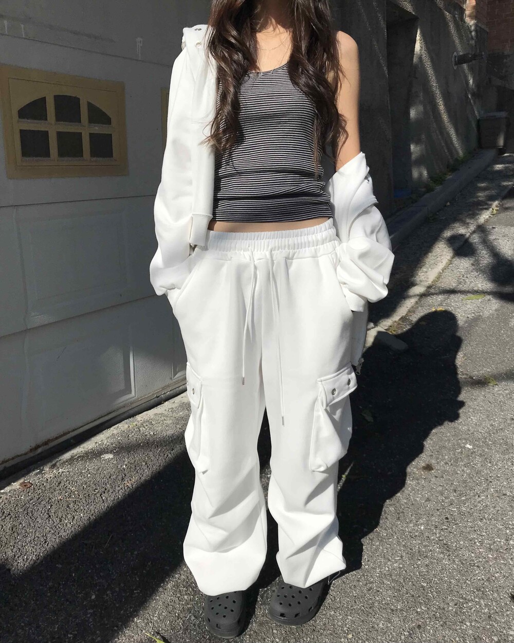 후드집업뿐 아니라 다양한 상의와도 두루 잘 어울리는 팬츠예요.