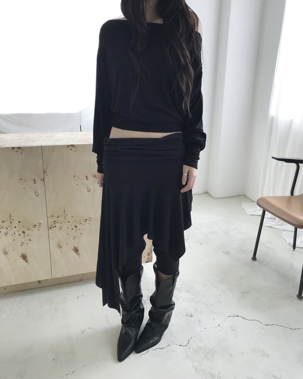 -바디는 가볍게 흐르고, 소매와 밑단은 잡아주는 구조로
