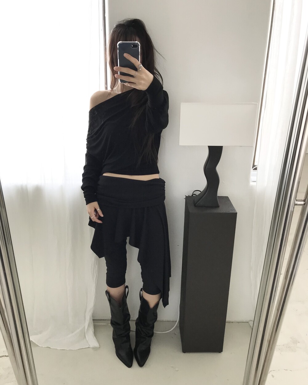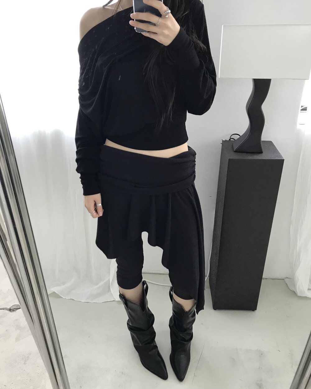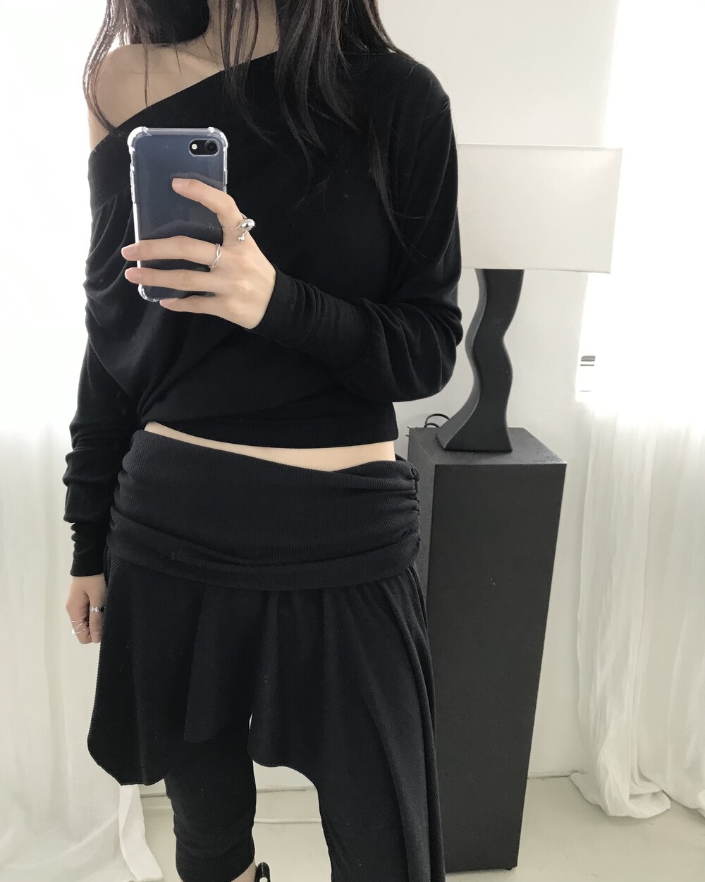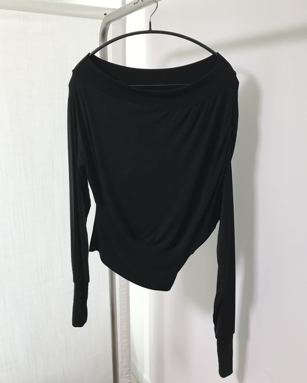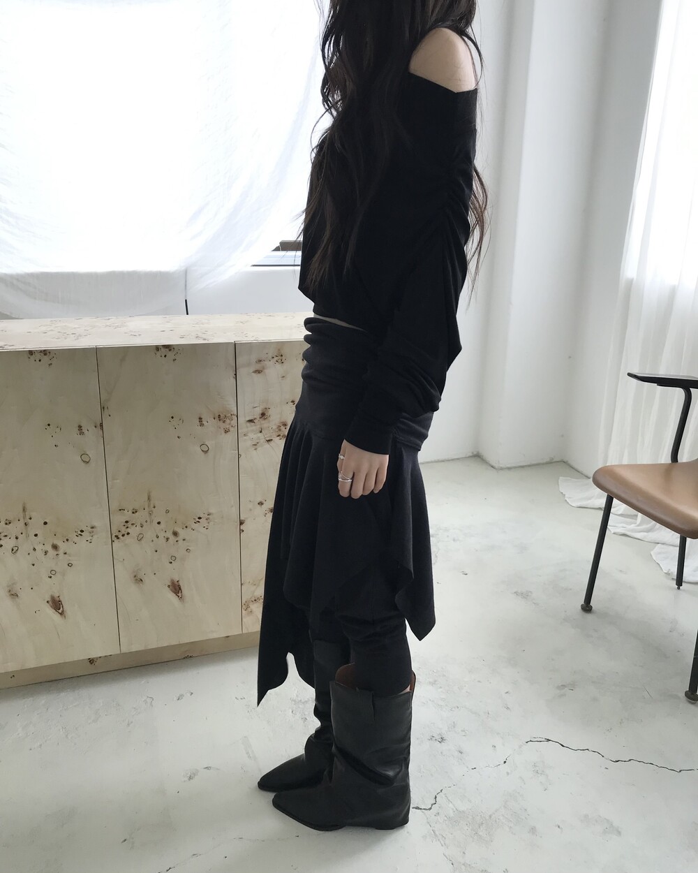-드레이프 라인이 자연스럽게 살아나는 오프숄더 탑