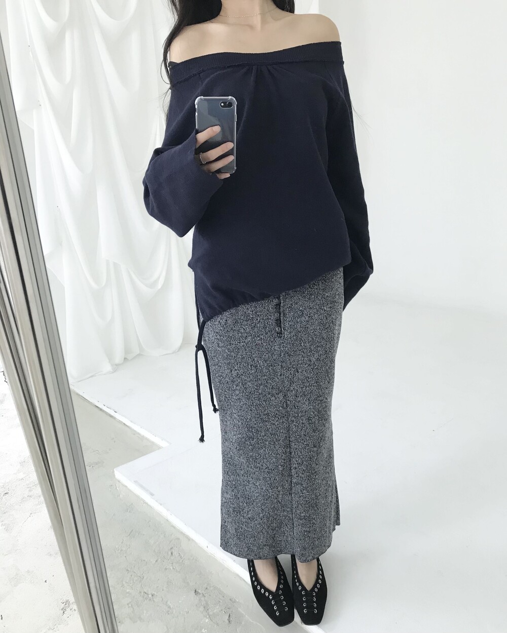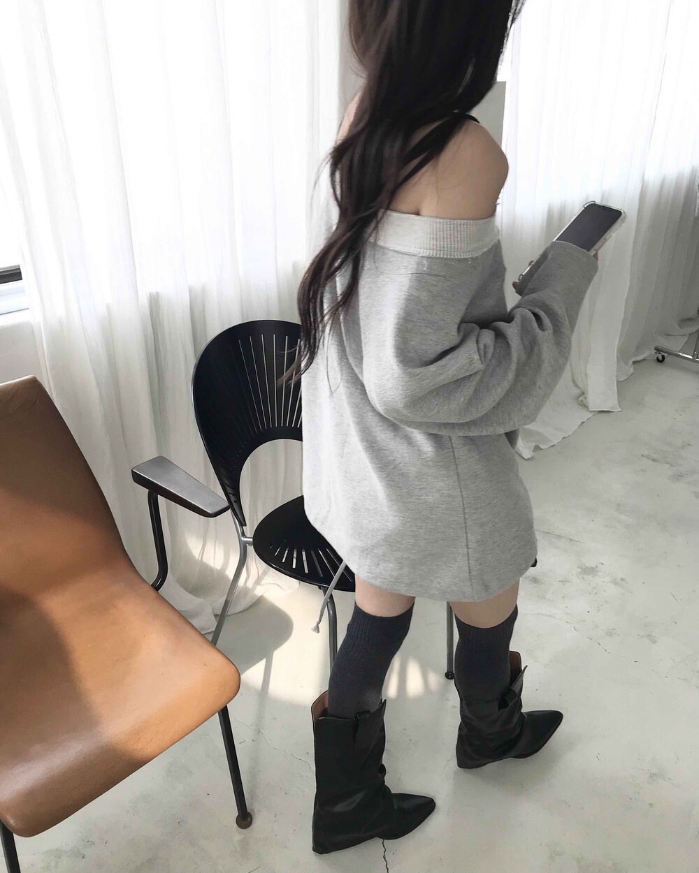 -롱한 기장감과 여유 있는 실루엣으로 편안한 무드