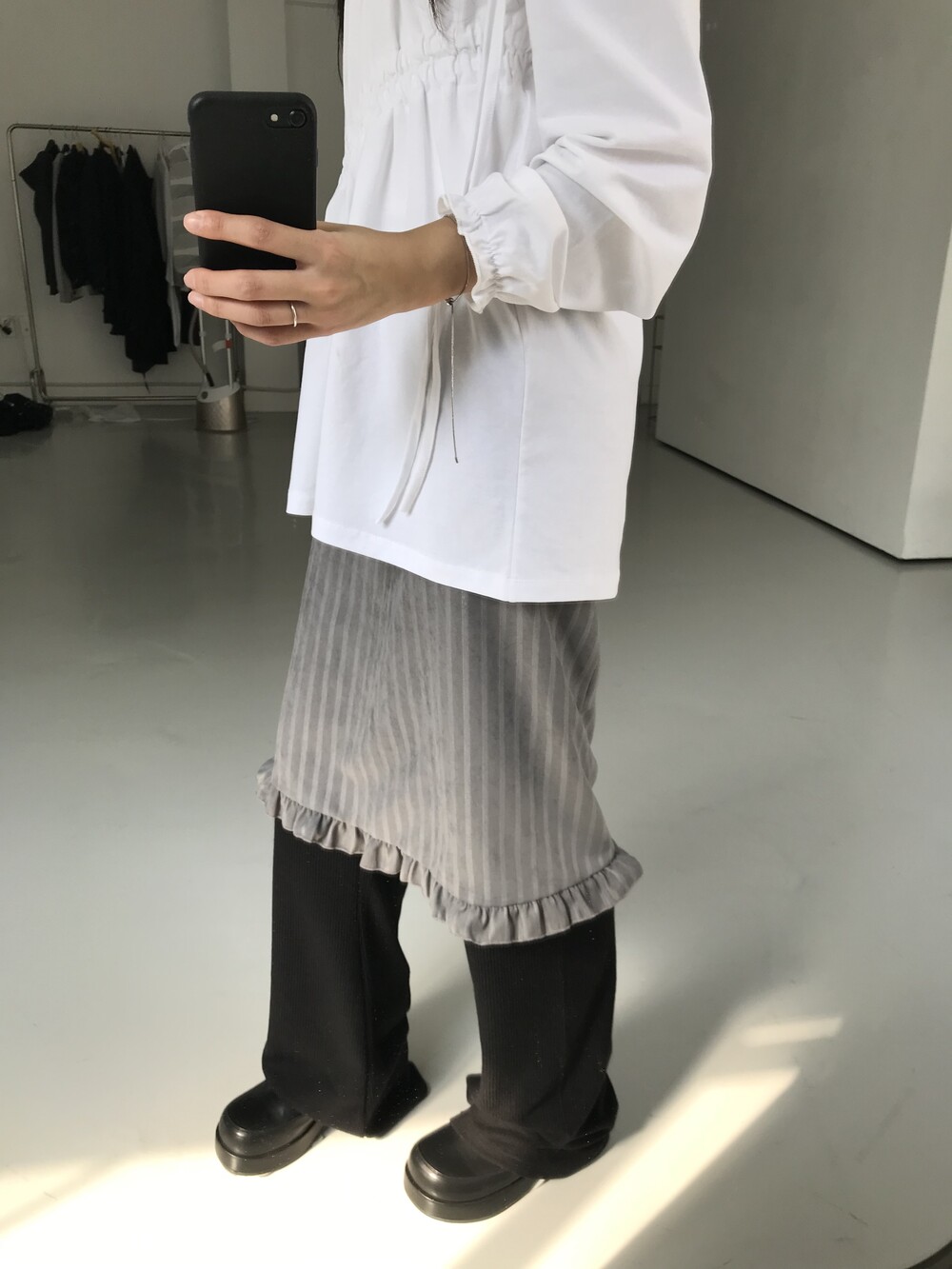 허리(밴딩)31~43 밑단54 힙45 총장59 뒤트임24 (단면 cm)