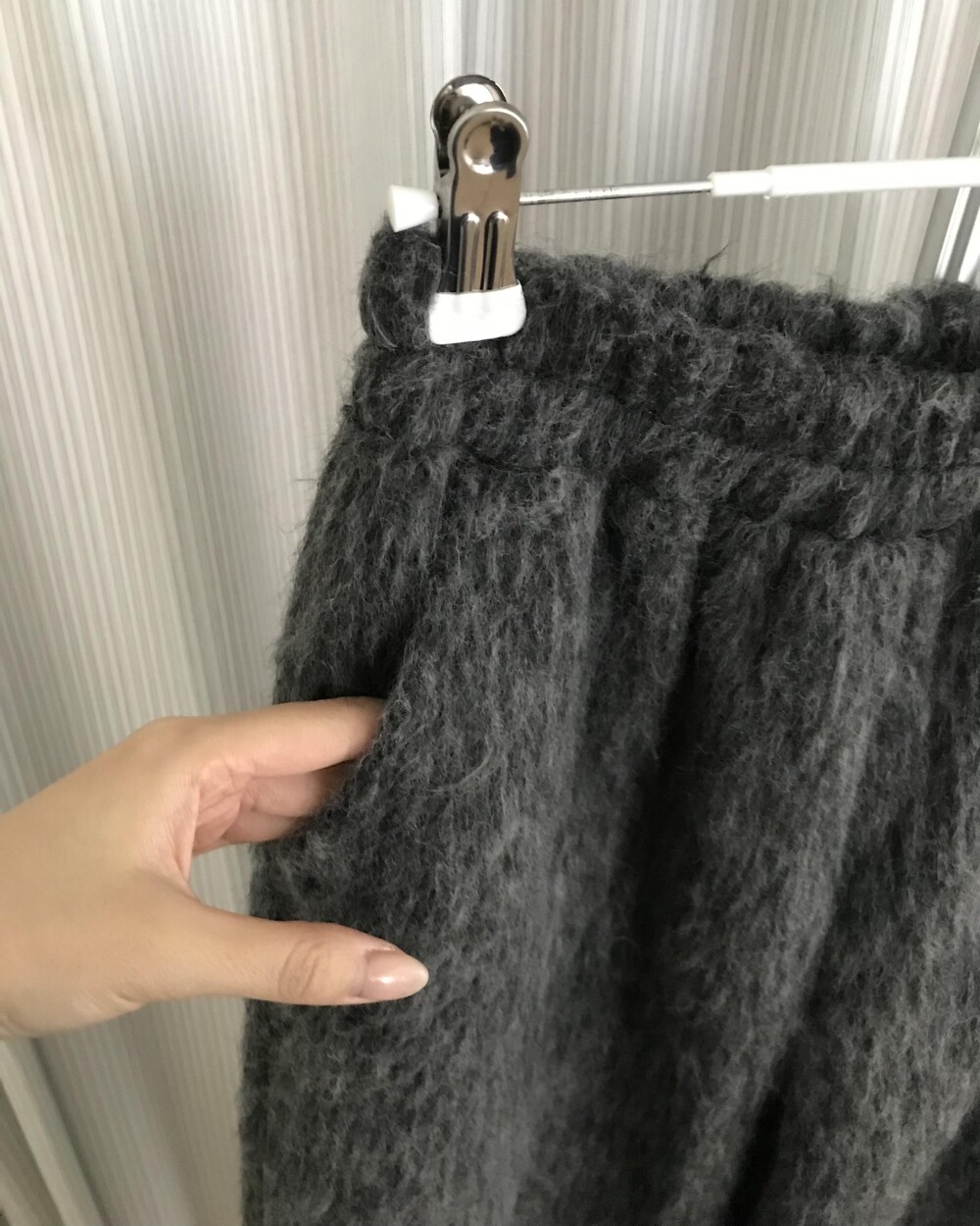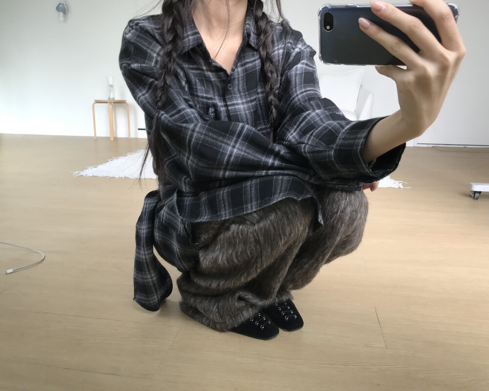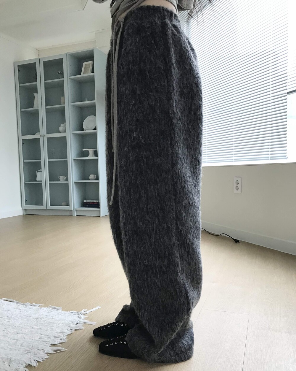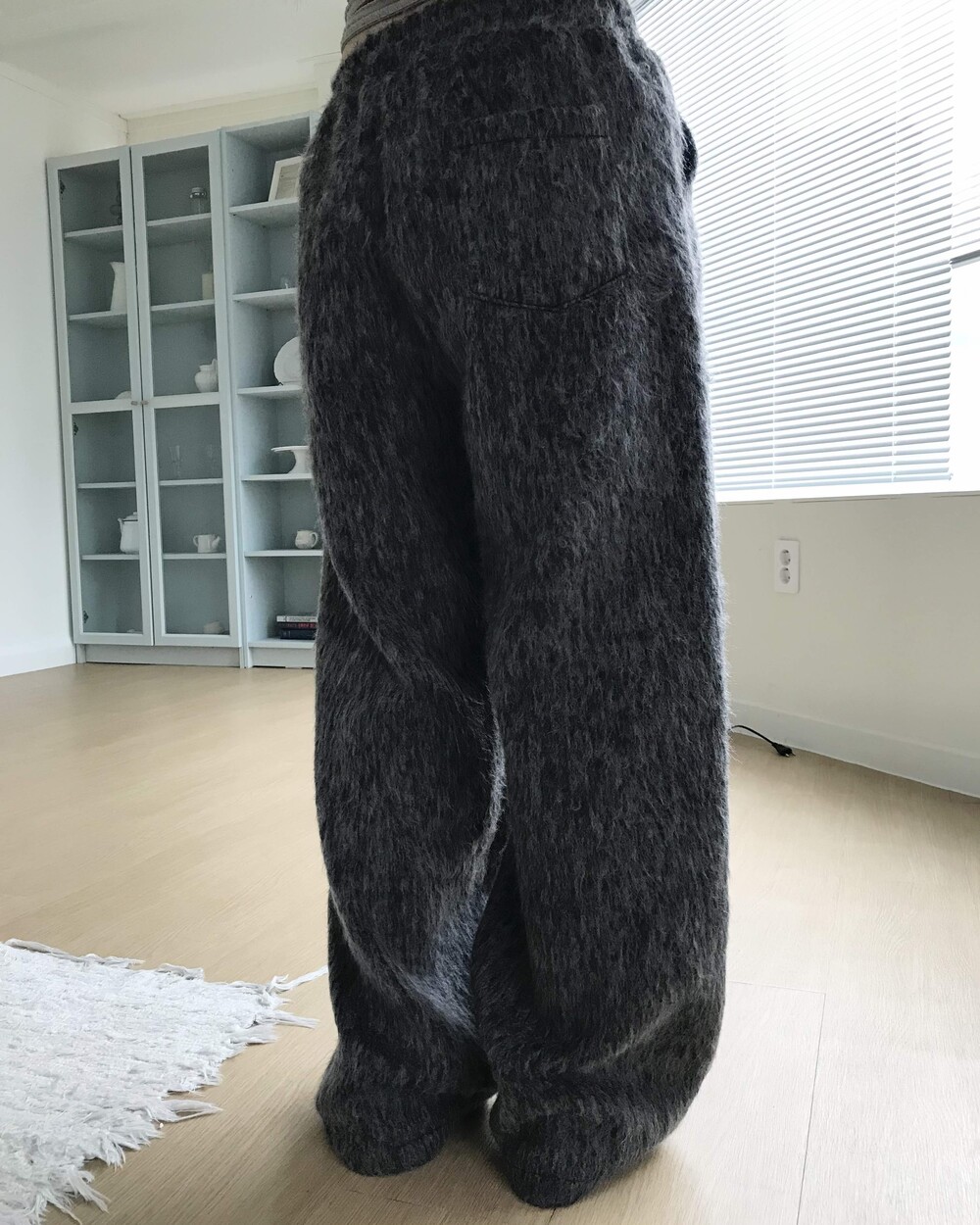 -헤어리한 소재의 와이드 팬츠