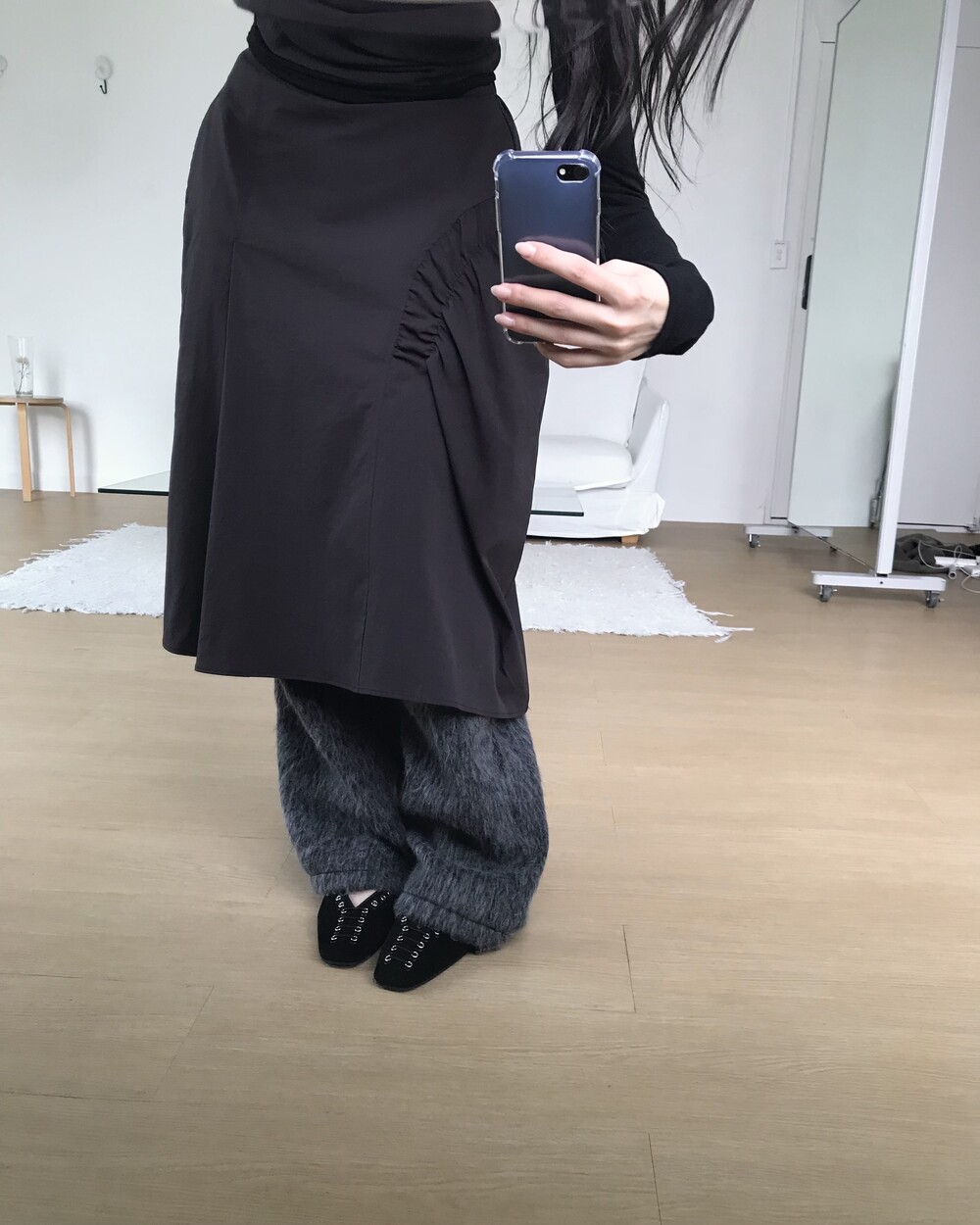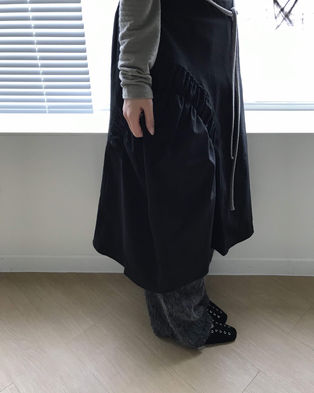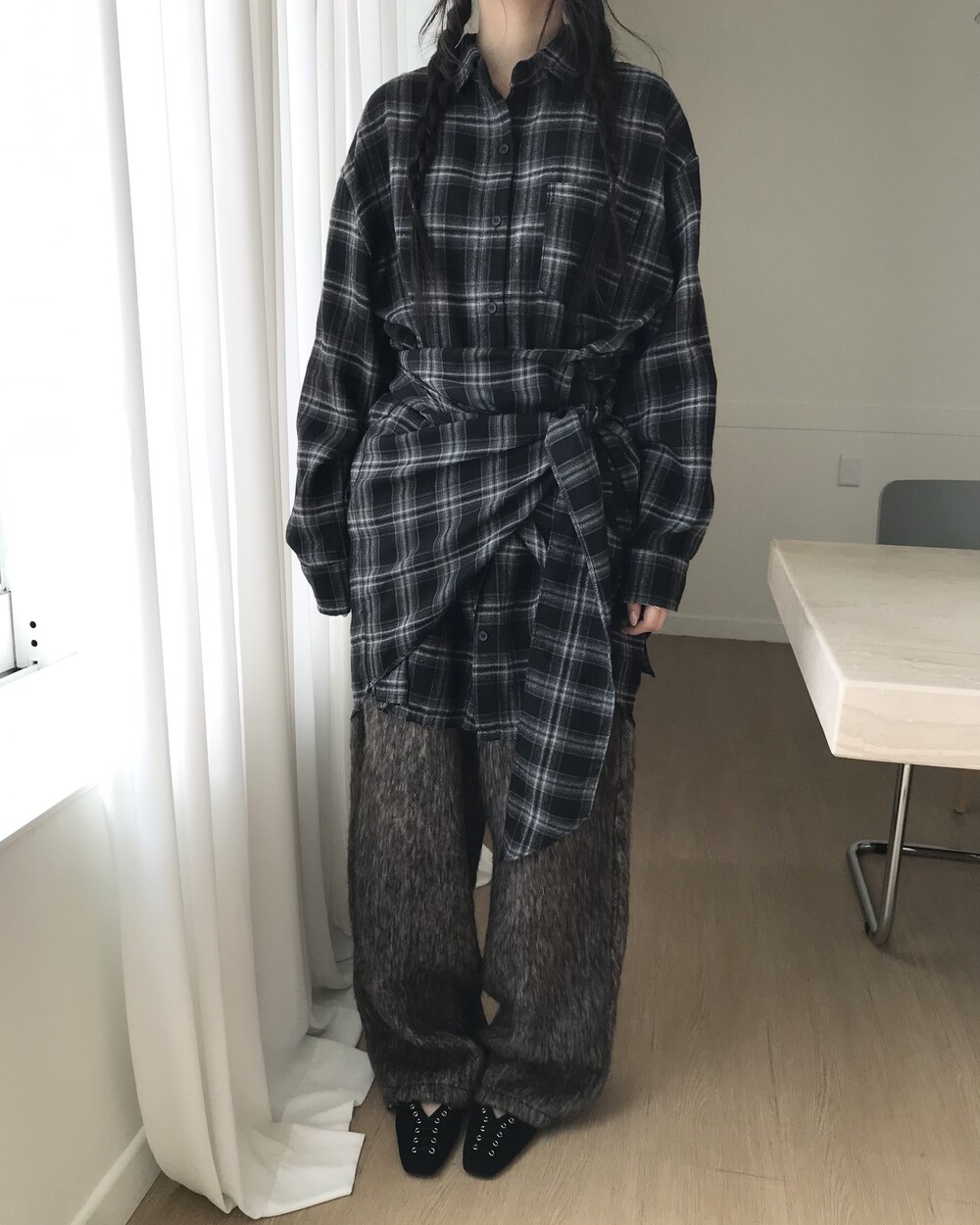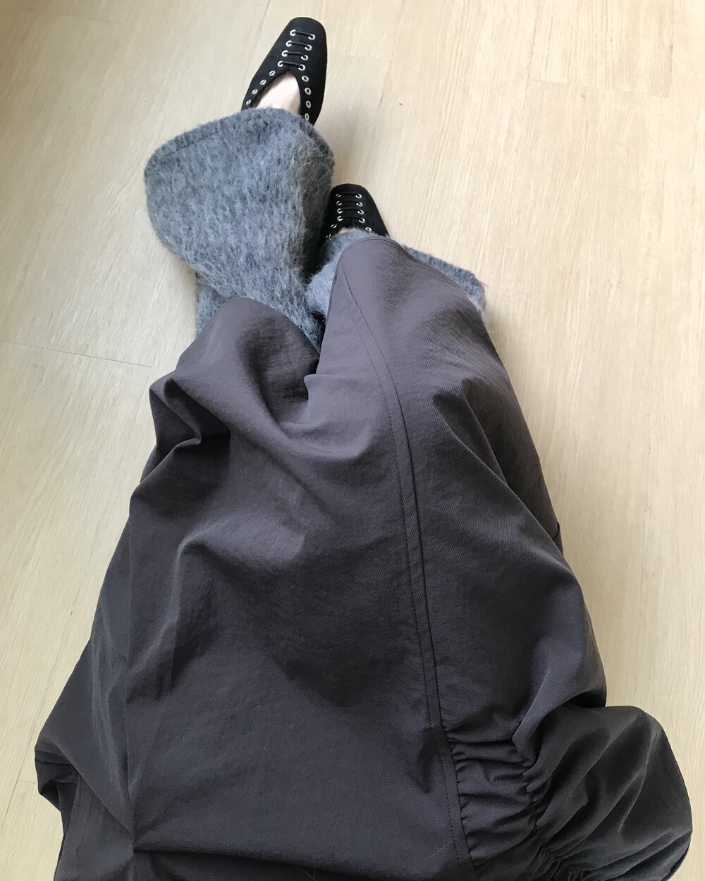-헤어리한 소재의 와이드 팬츠