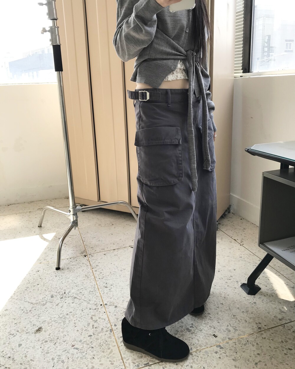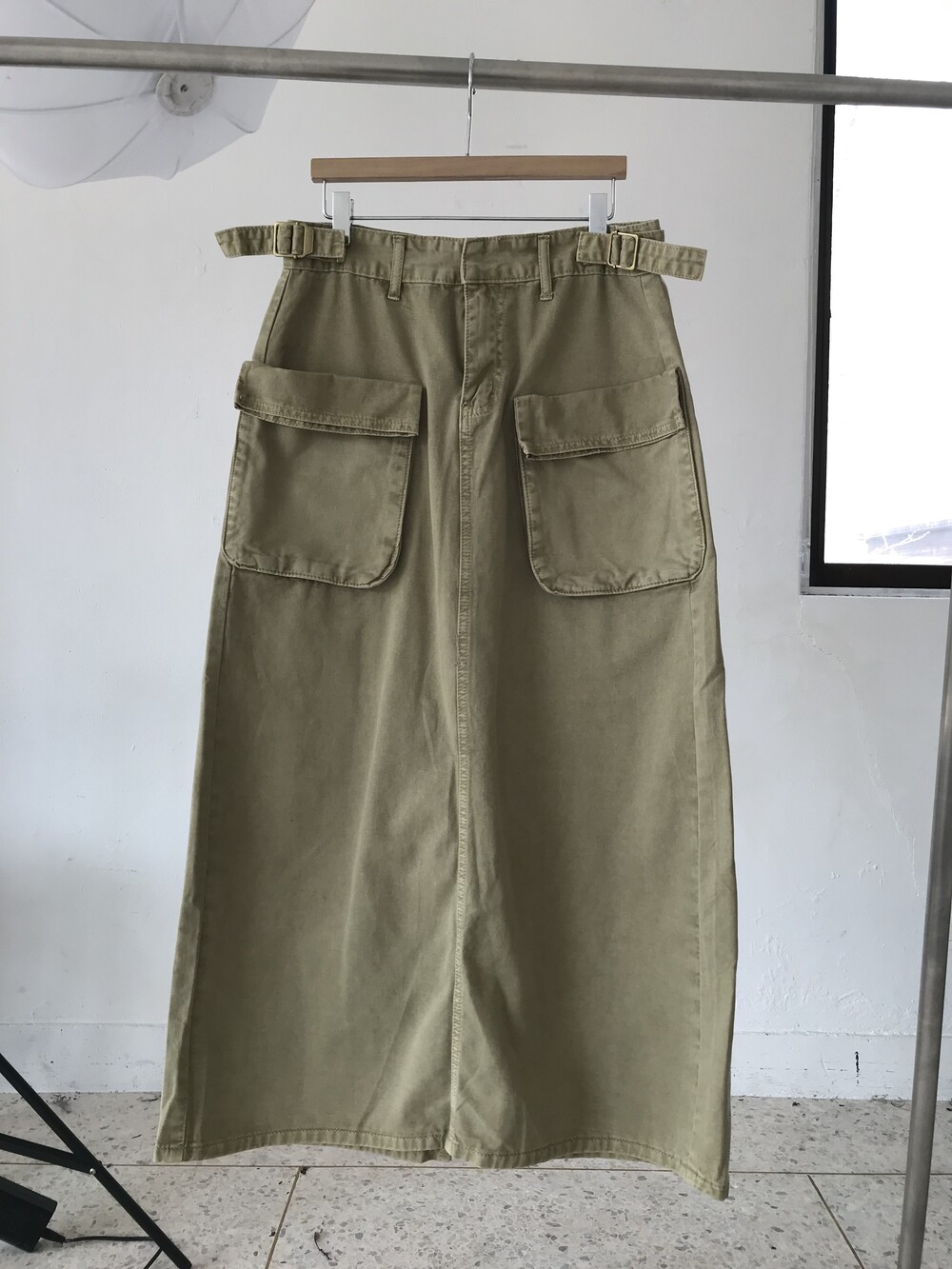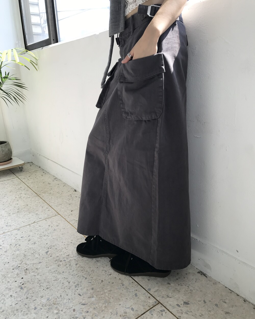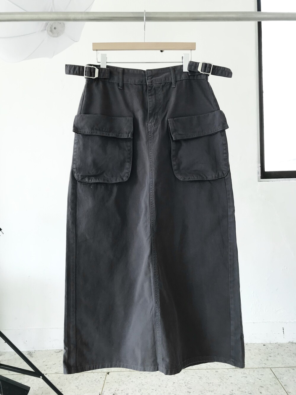 -입체적인 포켓과 비조 디테일이 더해진 롱 스커트