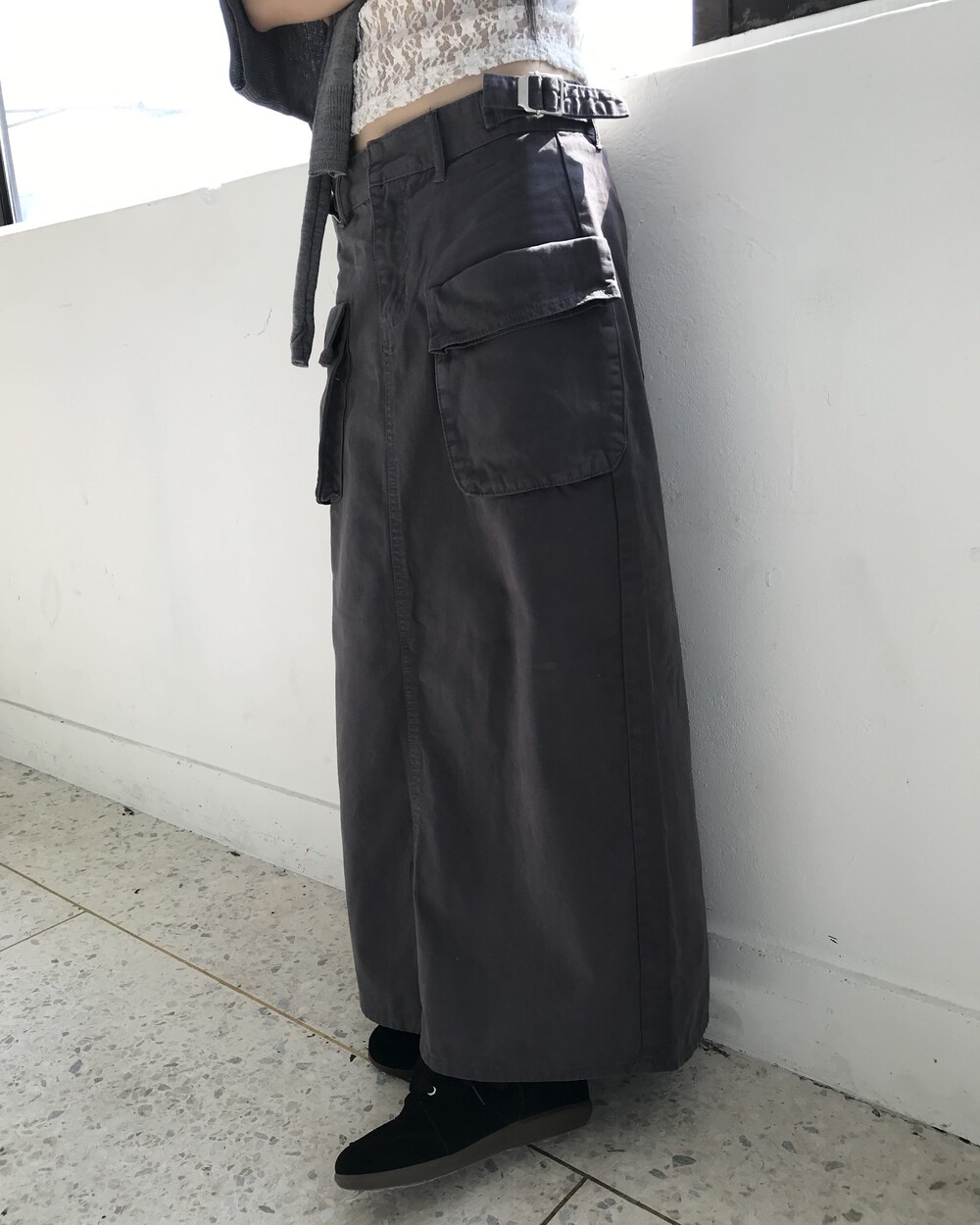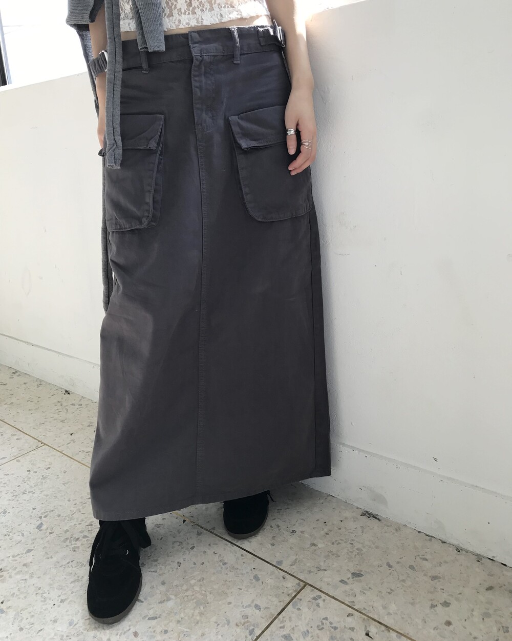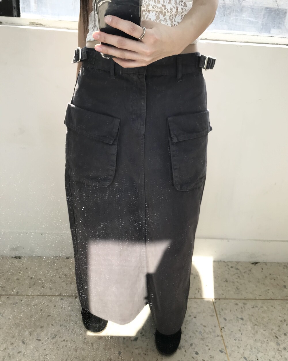 -입체적인 포켓과 비조 디테일이 더해진 롱 스커트