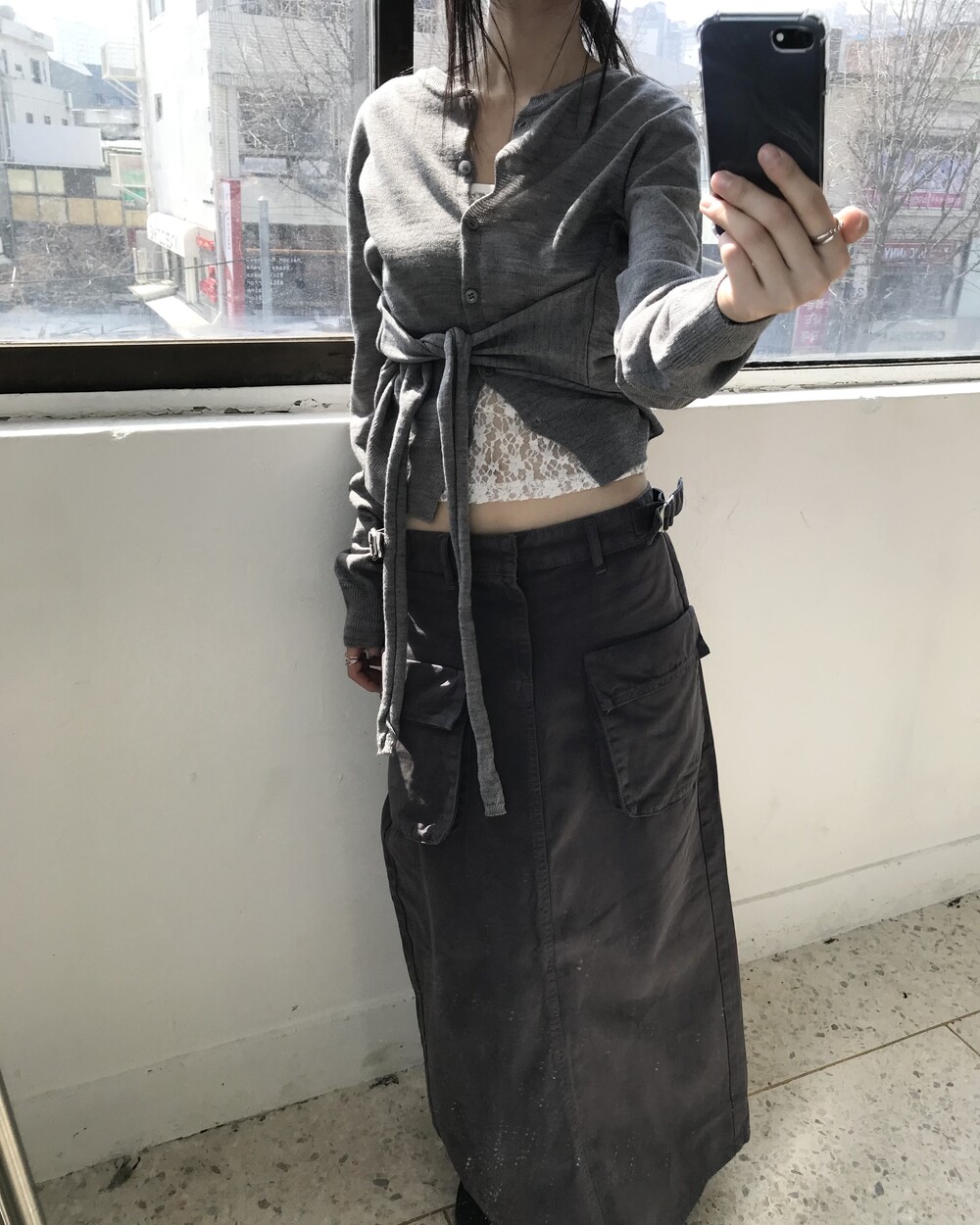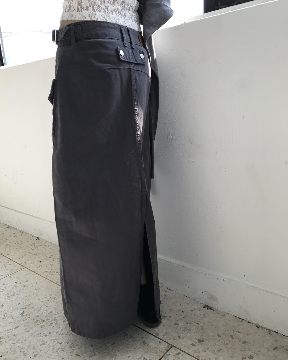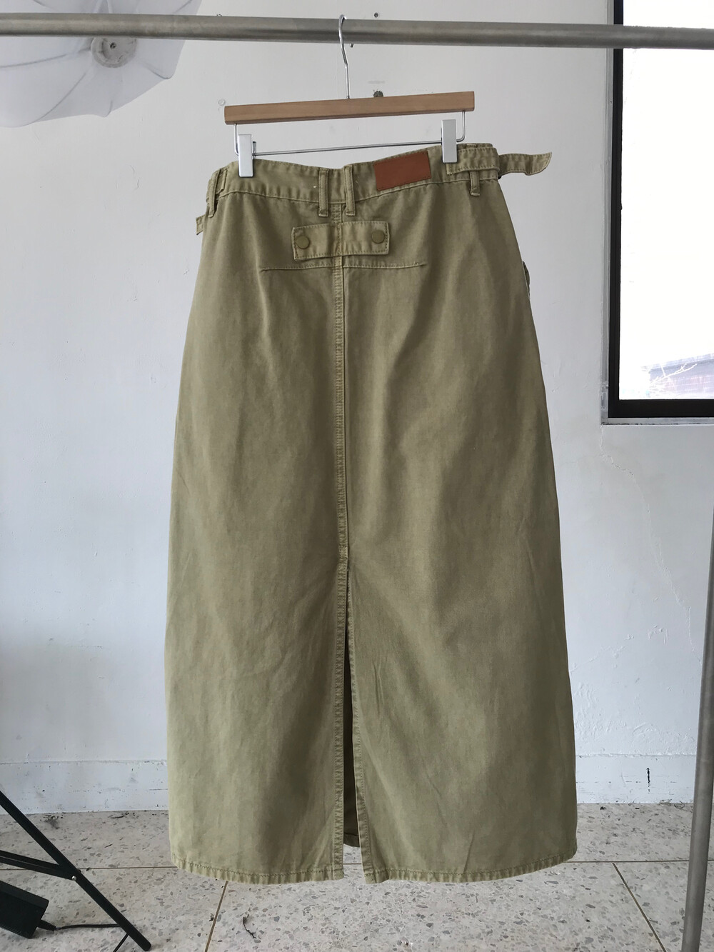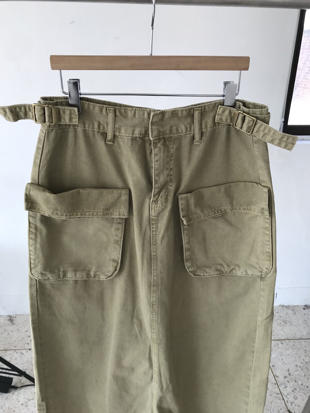 -입체적인 포켓과 비조 디테일이 더해진 롱 스커트