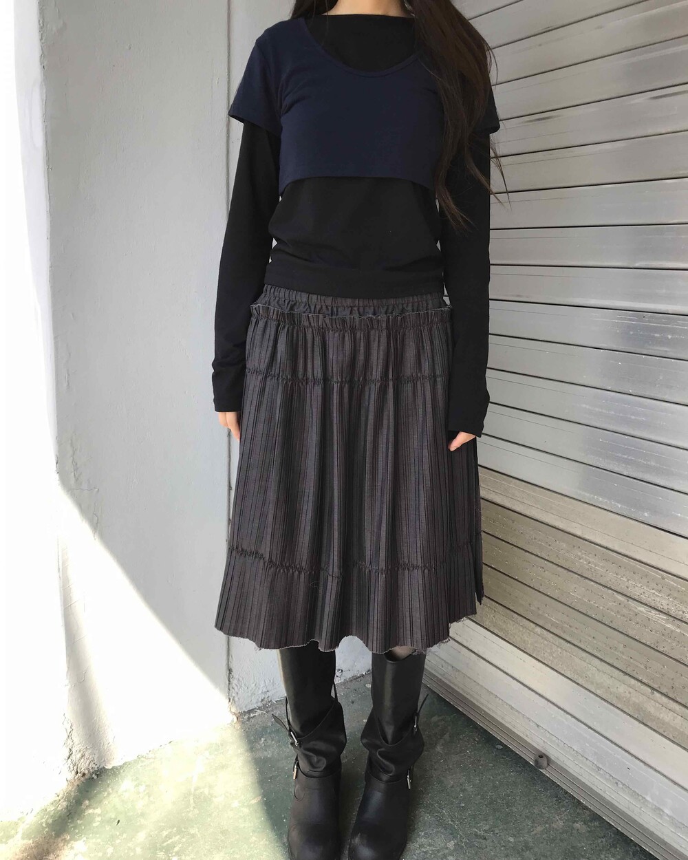 아래 두 컷은 166cm 53kg 모델 착용 이미지입니다.